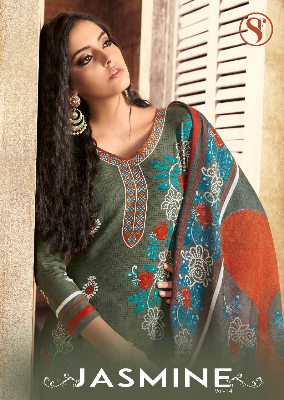 Buy Online Jasmine Vol 14 Soft Cotton Daily Wear Suits Wholesale Supplier And Dealer India 12 Pcs of Full Catalogue at Wholesale Price. Looking for Jasmine Vol 14 Soft Cotton Daily Wear Suits Wholesale Supplier And Dealer India Full Catalouge at Best Price? Buy Now Jasmine Vol 14 Soft Cotton Daily Wear Suits Wholesale Supplier And Dealer India at Wholesale Rate of Rs 3480 with Total 12 Pcs from authroized dealer and supplier of BRAND'S Brand. Cost of Each piece is just only Rs 290 which is very low and affordable price to resale the product in your retail store ,This is Surat based Wholesale Supplier & Dealer of BRAND'S Brand. Click on Brand name to Know more about BRAND'S Brand's products.Call or Whatsapp on 9898838984 for booking or enquiry