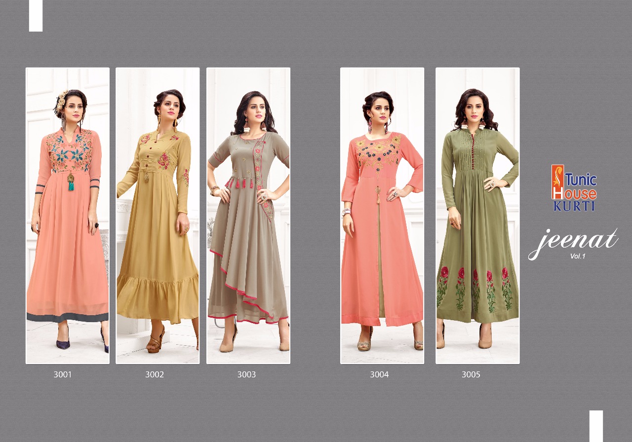 Jeenat Vol 1 By Tunic House 3001 Series Designer Gown Style Kurti Catlog Wholesale Dealer Surat