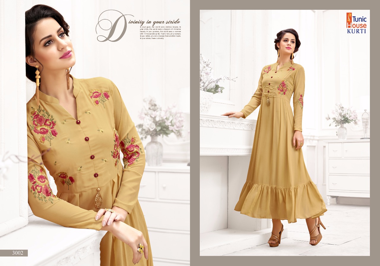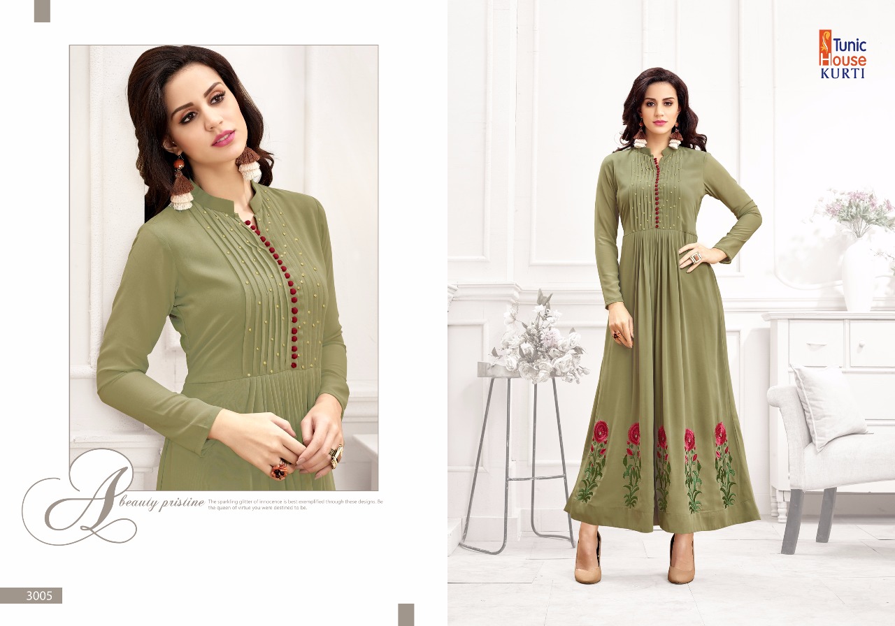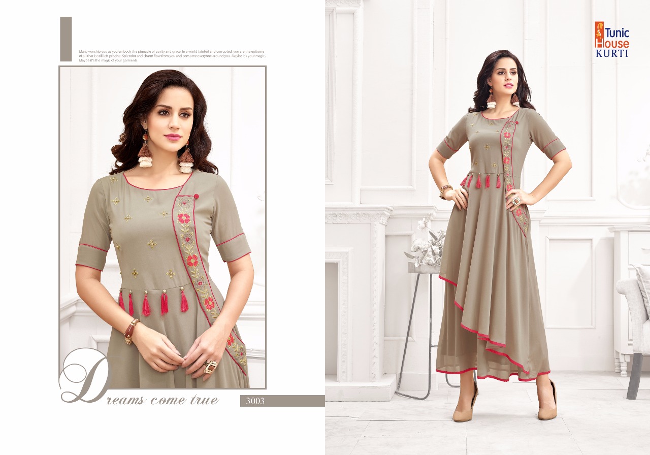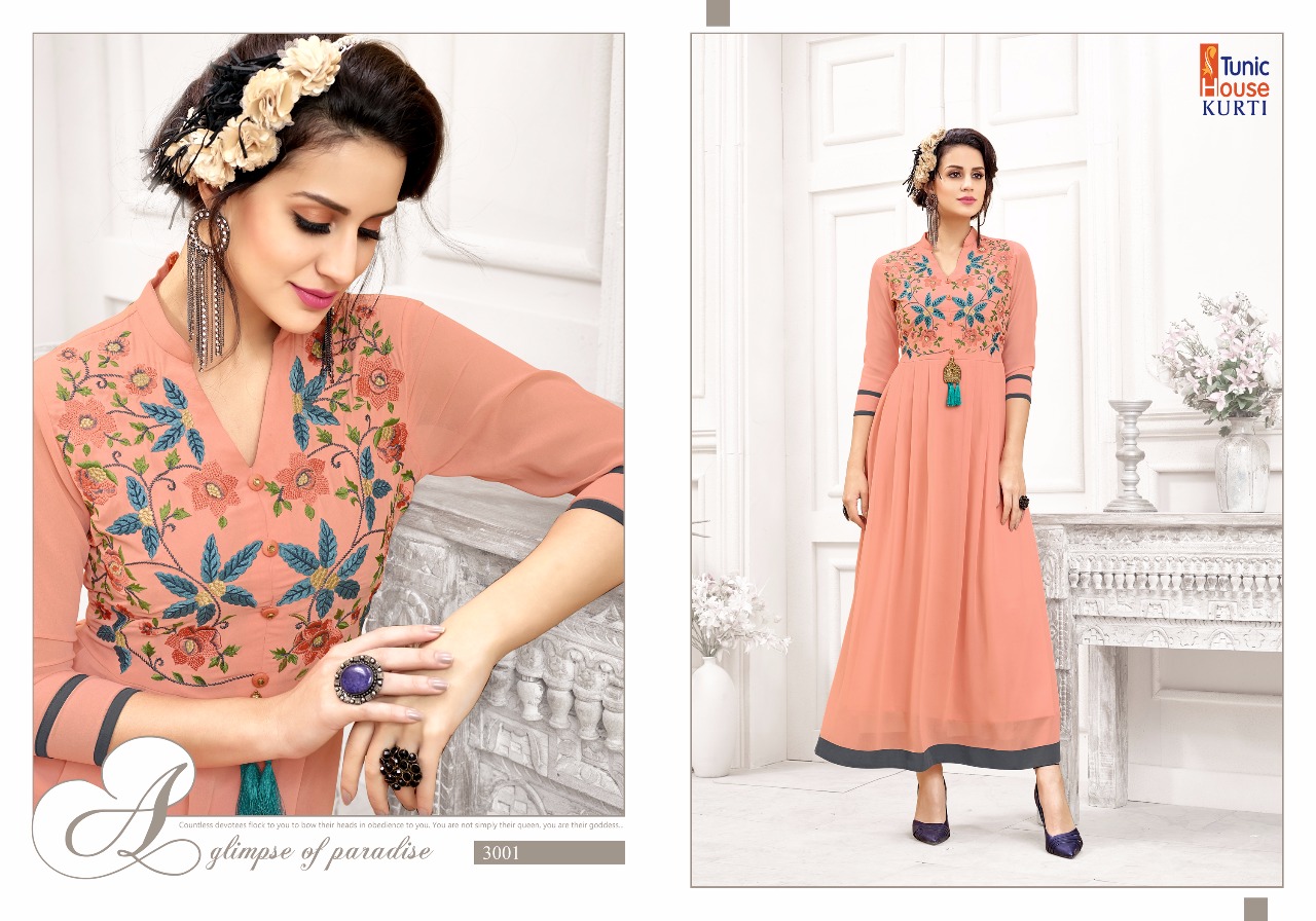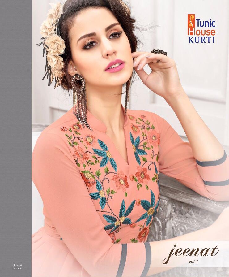 Buy Online Jeenat Vol 1 By Tunic House 3001 Series Designer Gown Style Kurti Catlog Wholesale Dealer Surat 5 Pcs of Full Catalogue at Wholesale Price. Looking for Jeenat Vol 1 By Tunic House 3001 Series Designer Gown Style Kurti Catlog Wholesale Dealer Surat Full Catalouge at Best Price? Buy Now Jeenat Vol 1 By Tunic House 3001 Series Designer Gown Style Kurti Catlog Wholesale Dealer Surat at Wholesale Rate of Rs 3995 with Total 5 Pcs from authroized dealer and supplier of TUNIC HOUSE Brand. Cost of Each piece is just only Rs 799 which is very low and affordable price to resale the product in your retail store ,This is Surat based Wholesale Supplier & Dealer of TUNIC HOUSE Brand. Click on Brand name to Know more about TUNIC HOUSE Brand's products.Call or Whatsapp on 9898838984 for booking or enquiry