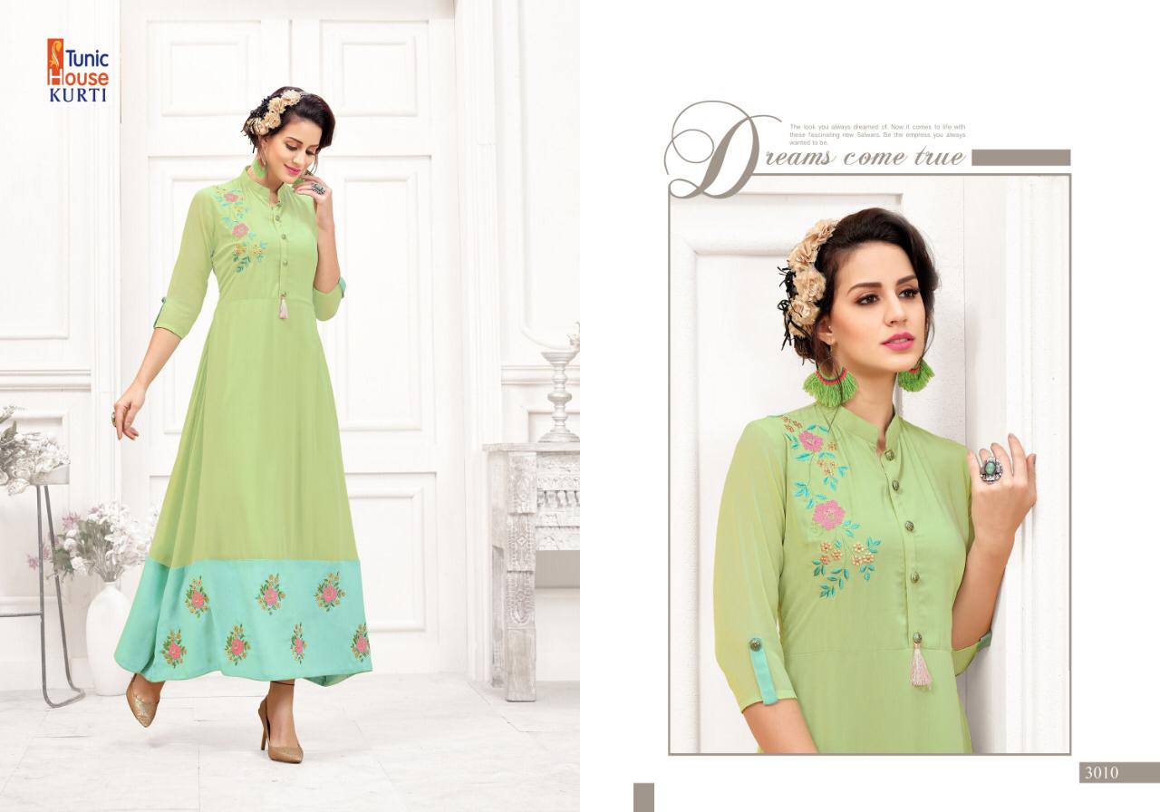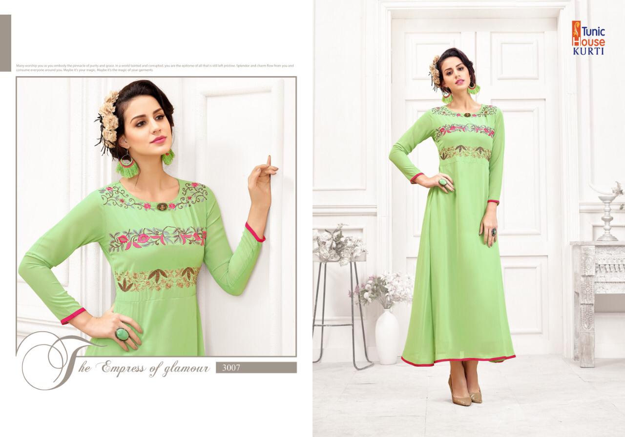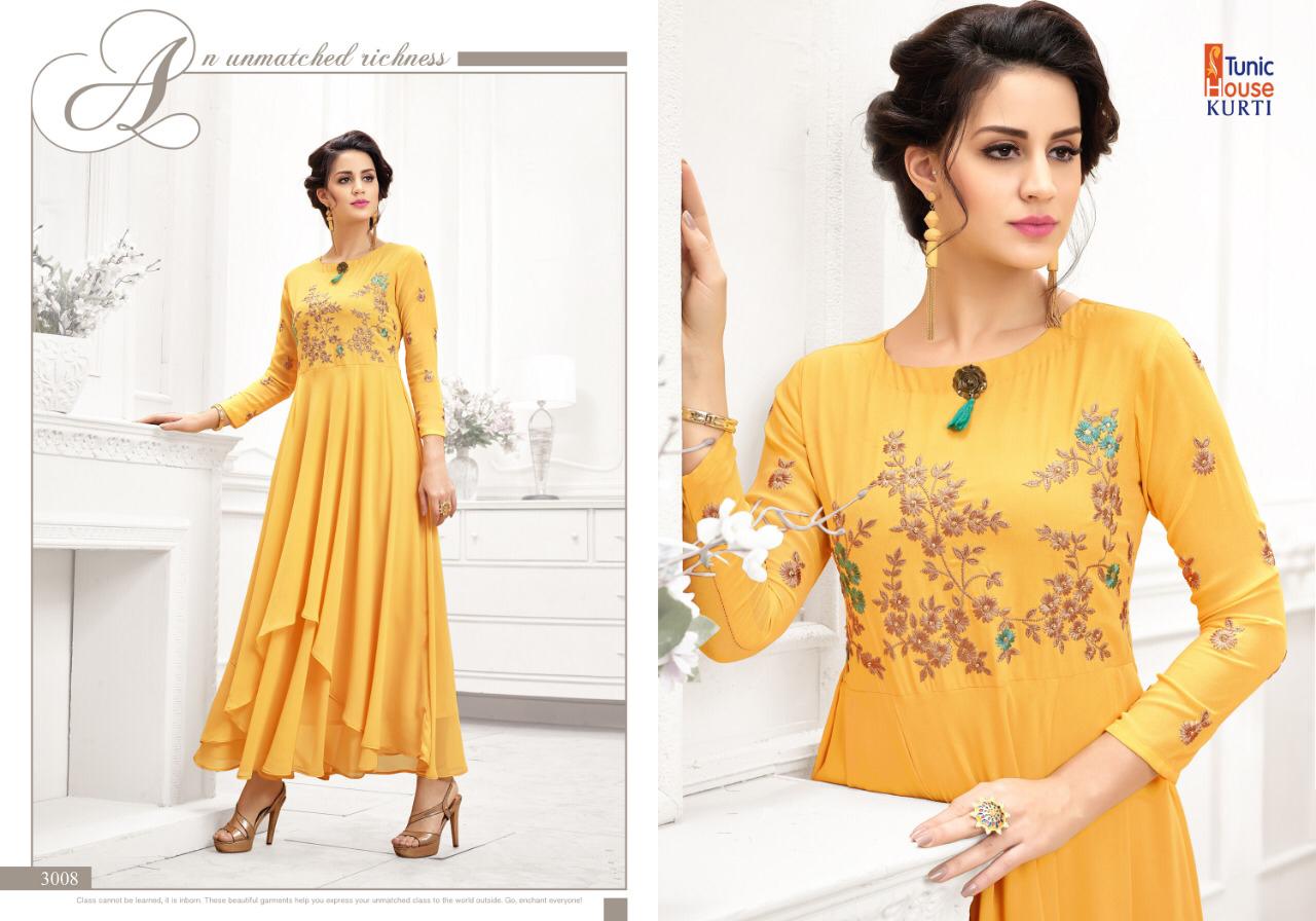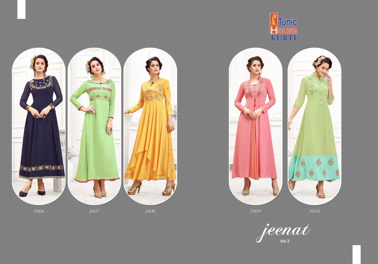 Buy Online Jeenat Vol 2 By Tunic House 3006 Series Fancy Georgette Party Wear Gown Style Kurti Collection Wholesaler Surat 5 Pcs of Full Catalogue at Wholesale Price. Looking for Jeenat Vol 2 By Tunic House 3006 Series Fancy Georgette Party Wear Gown Style Kurti Collection Wholesaler Surat Full Catalouge at Best Price? Buy Now Jeenat Vol 2 By Tunic House 3006 Series Fancy Georgette Party Wear Gown Style Kurti Collection Wholesaler Surat at Wholesale Rate of Rs 3995 with Total 5 Pcs from authroized dealer and supplier of TUNIC HOUSE Brand. Cost of Each piece is just only Rs 799 which is very low and affordable price to resale the product in your retail store ,This is Surat based Wholesale Supplier & Dealer of TUNIC HOUSE Brand. Click on Brand name to Know more about TUNIC HOUSE Brand's products.Call or Whatsapp on 9898838984 for booking or enquiry