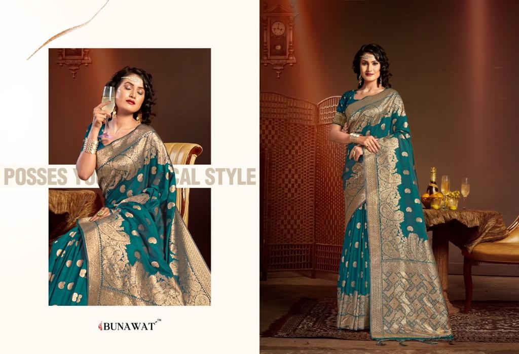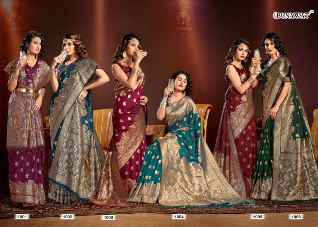 Buy Online Jimmy Silk By Bunawat Banarasi Silk Saree Collection Manufacturer Surat 6 Pcs of Full Catalogue at Wholesale Price. Looking for Jimmy Silk By Bunawat Banarasi Silk Saree Collection Manufacturer Surat Full Catalouge at Best Price? Buy Now Jimmy Silk By Bunawat Banarasi Silk Saree Collection Manufacturer Surat at Wholesale Rate of Rs 9690 with Total 6 Pcs from authroized dealer and supplier of BUNAWAT Brand. Cost of Each piece is just only Rs 1615 which is very low and affordable price to resale the product in your retail store ,This is Surat based Wholesale Supplier & Dealer of BUNAWAT Brand. Click on Brand name to Know more about BUNAWAT Brand's products.Call or Whatsapp on 9898838984 for booking or enquiry
