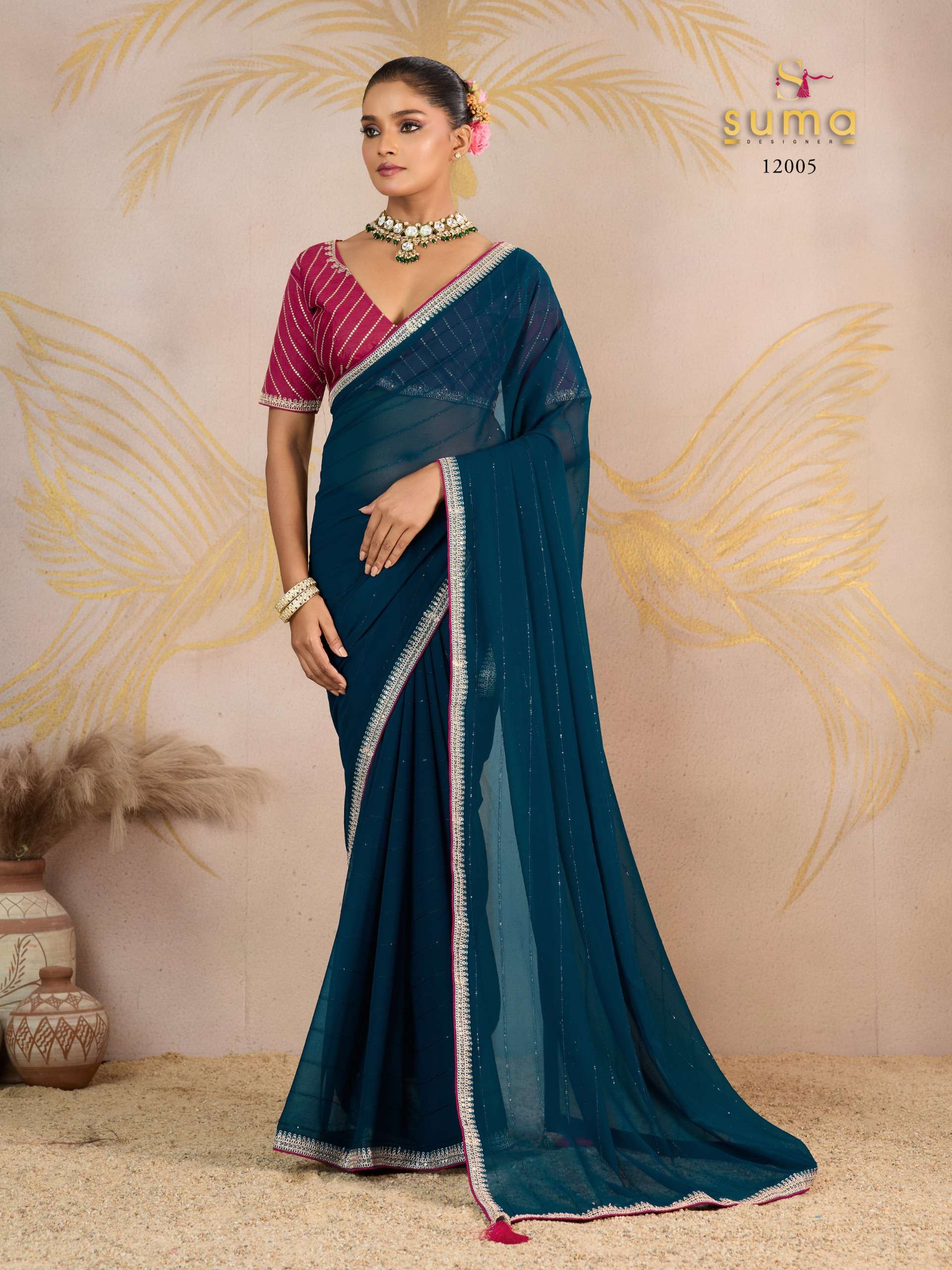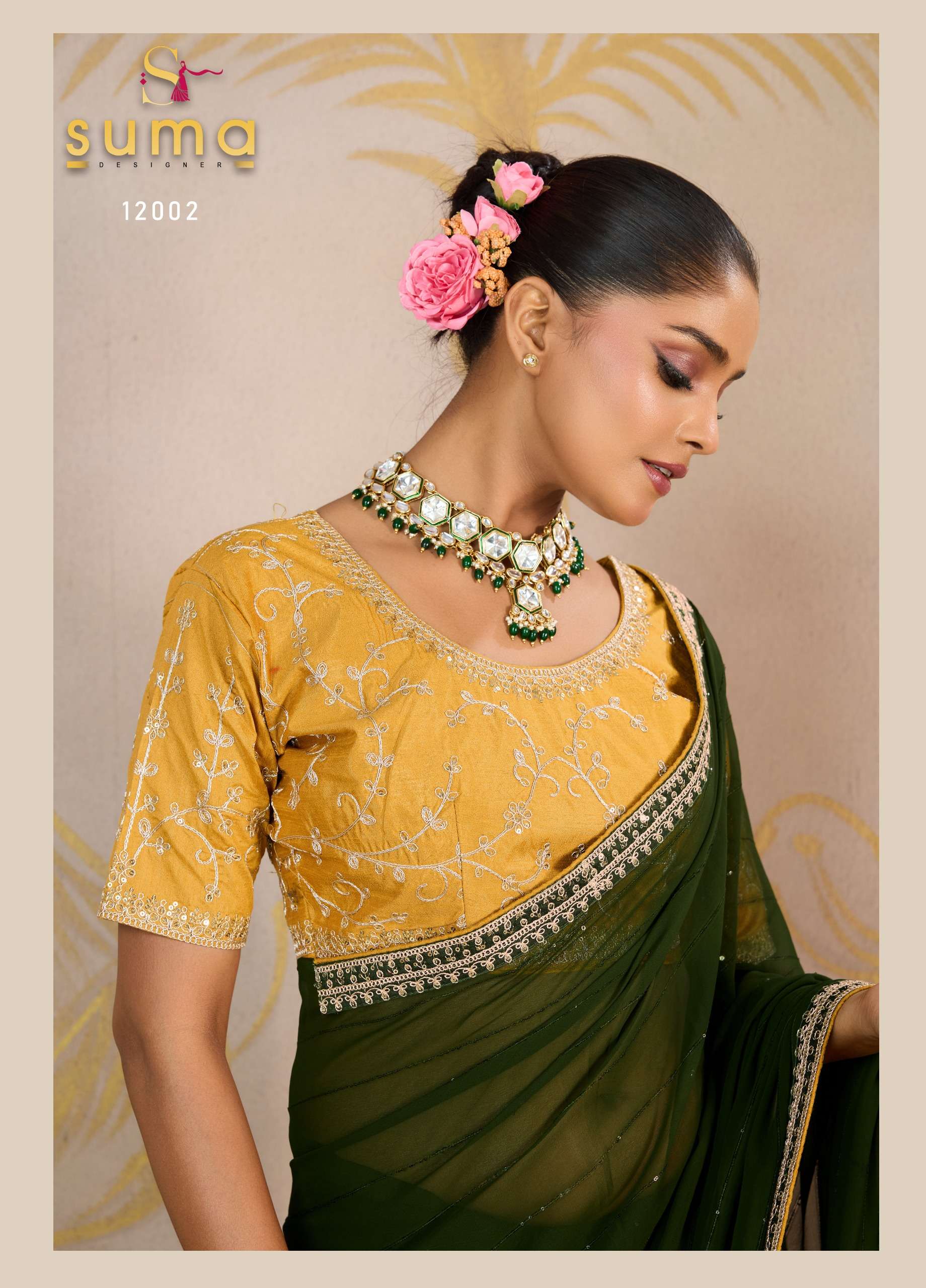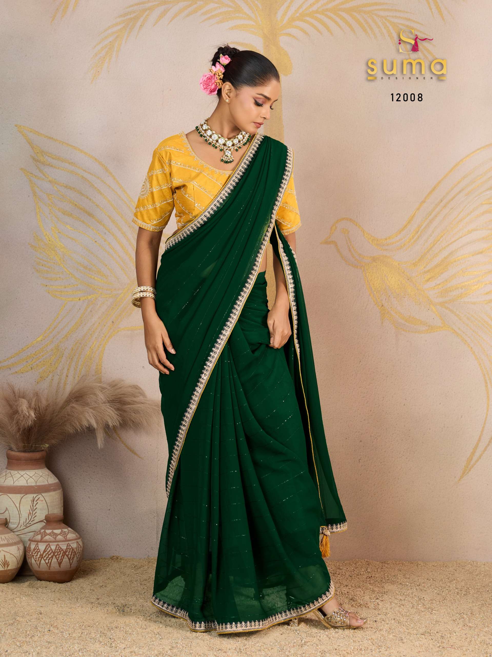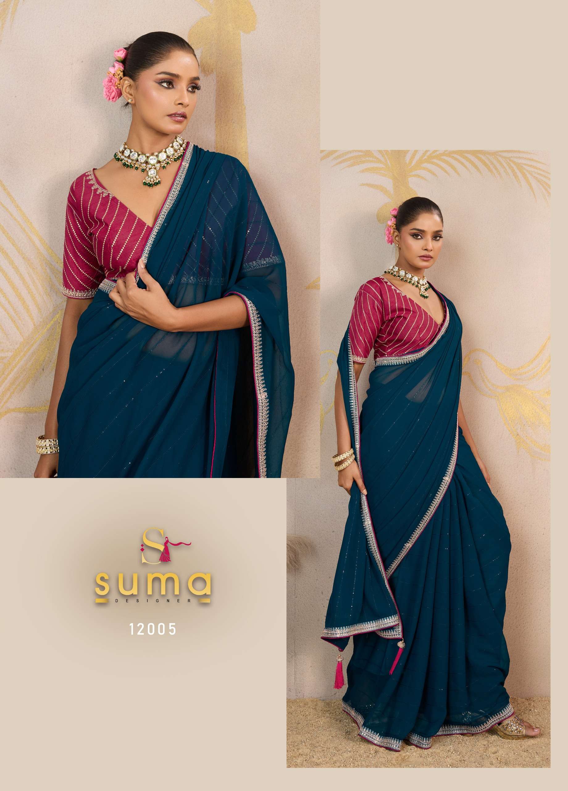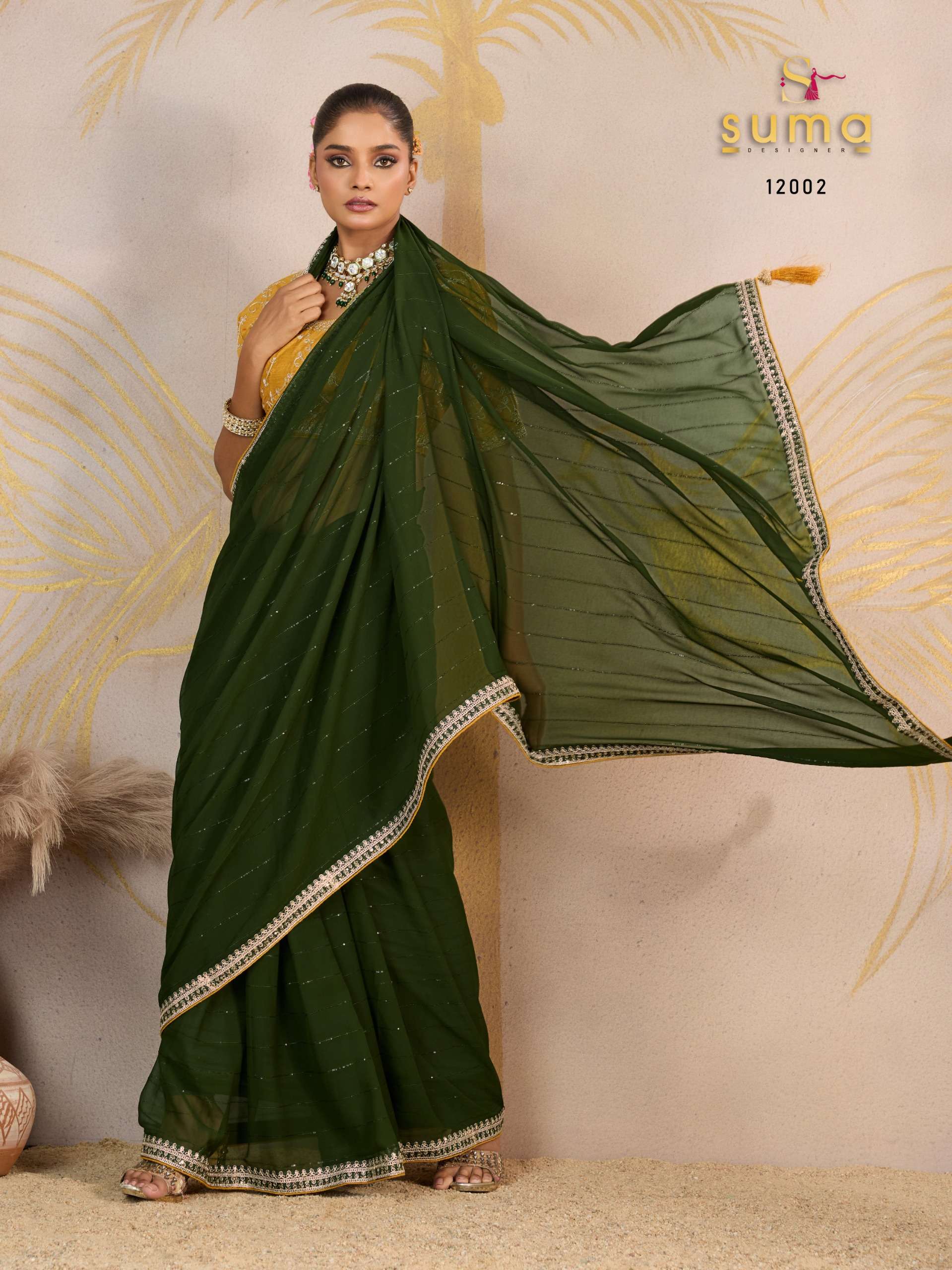 Buy Online Jiya Series 12001 To 12008 By Suma saree Collection manufacturer surat 8 Pcs of Full Catalogue at Wholesale Price. Looking for Jiya Series 12001 To 12008 By Suma saree Collection manufacturer surat Full Catalouge at Best Price? Buy Now Jiya Series 12001 To 12008 By Suma saree Collection manufacturer surat at Wholesale Rate of Rs 7560 with Total 8 Pcs from authroized dealer and supplier of SUMA DESIGNER Brand. Cost of Each piece is just only Rs 945 which is very low and affordable price to resale the product in your retail store ,This is Surat based Wholesale Supplier & Dealer of SUMA DESIGNER Brand. Click on Brand name to Know more about SUMA DESIGNER Brand's products.Call or Whatsapp on 9898838984 for booking or enquiry