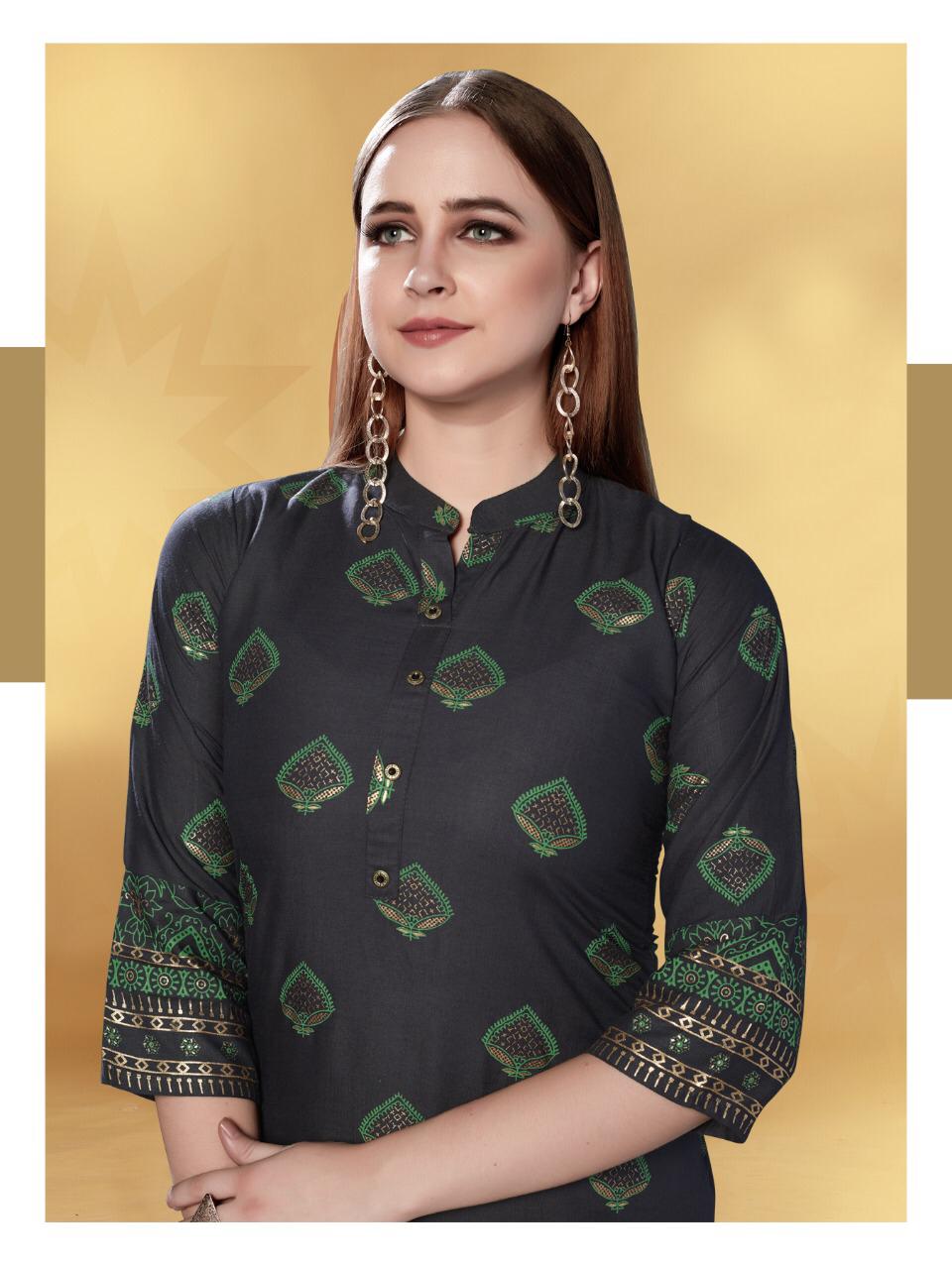 Brand name - Vee Fab India Catalogue name - jolie *Fabric*: 14 kg rayon FOIL Print. *Size:*M(38") L(40") XL(42") XXL(44") 3XL(46") Length: 46+ *Price: 391+GST* Set to set Dispatch tomorrow |
