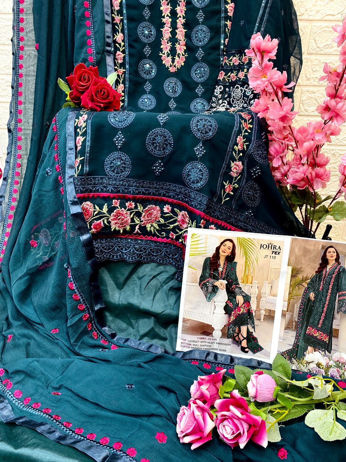 Buy Online Jt 110 By Johra Tex Georgette Suit 5 Pcs of Full Catalogue at Wholesale Price. Looking for Jt 110 By Johra Tex Georgette Suit Full Catalouge at Best Price? Buy Now Jt 110 By Johra Tex Georgette Suit at Wholesale Rate of Rs 5250 with Total 5 Pcs from authroized dealer and supplier of Brand. Cost of Each piece is just only Rs 1050 which is very low and affordable price to resale the product in your retail store ,This is Surat based Wholesale Supplier & Dealer of Brand. Click on Brand name to Know more about Brand's products.Call or Whatsapp on 9898838984 for booking or enquiry