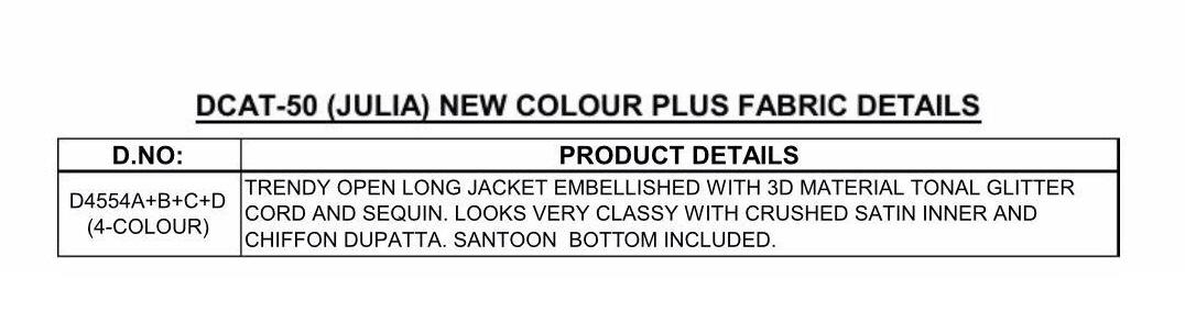 *LOOSE PCS AVAILABLE* *VIPUL* CATALOG NAME Â? *JULIA* *DN.NO. 4554A* *HIT DESIGNS* ( heavy gowns) super hit designs coming with fresh new colors... *SINGLE PCS AVAILABLE* *RATE LIST ATACHED* GST 12 Percent Extra. *READY TO SHIP* Single Extra 100 |