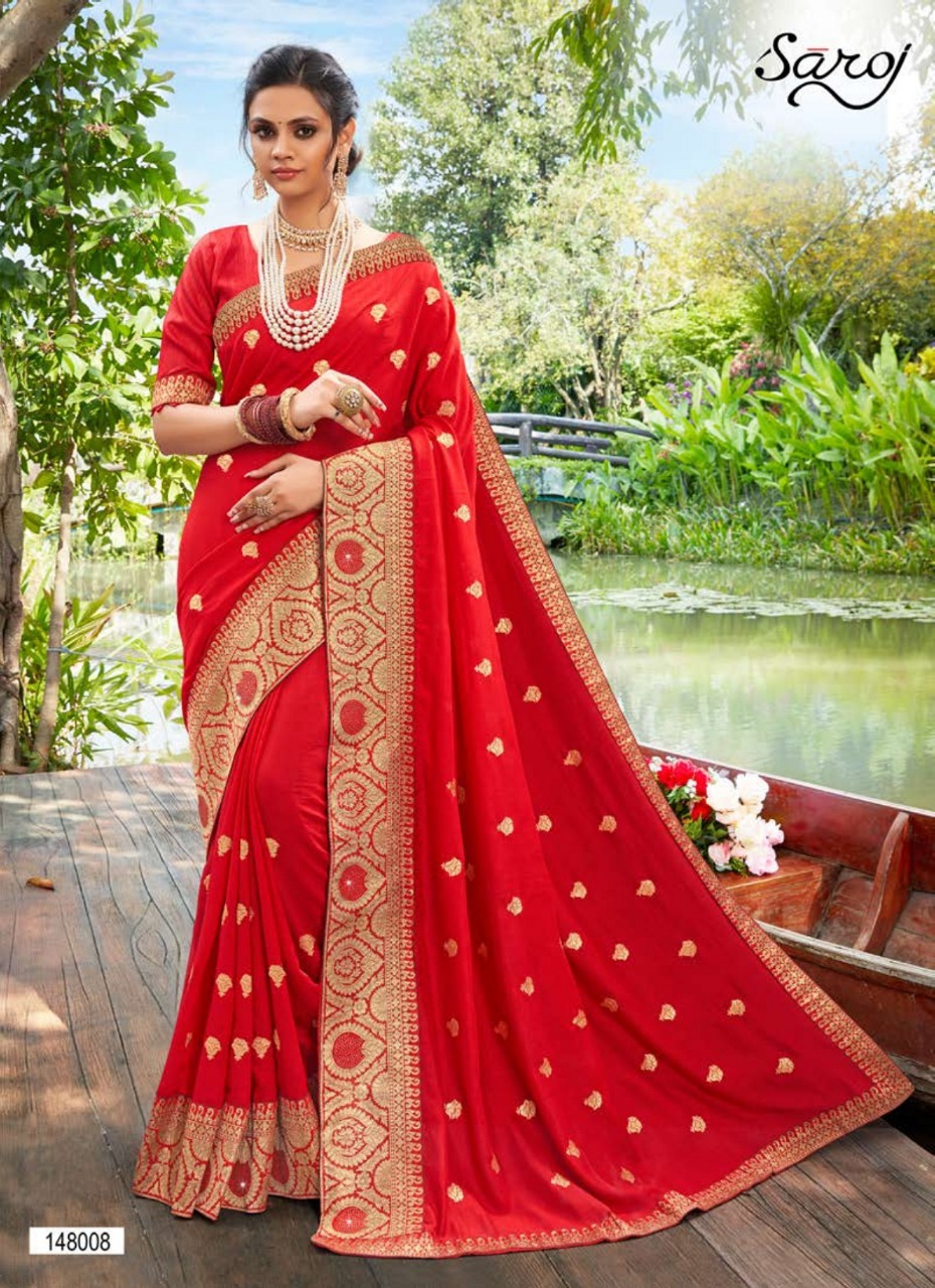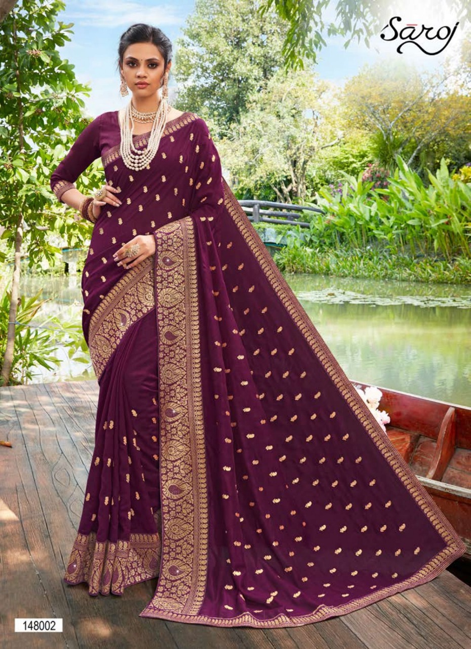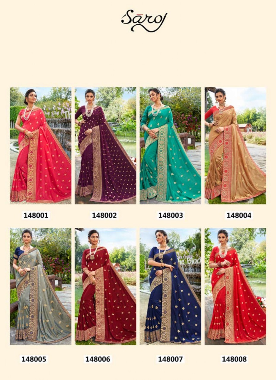 Buy Online Jyotika By Saroj Manufacturer Traders Surat Gujrat 8 Pcs of Full Catalogue at Wholesale Price. Looking for Jyotika By Saroj Manufacturer Traders Surat Gujrat Full Catalouge at Best Price? Buy Now Jyotika By Saroj Manufacturer Traders Surat Gujrat at Wholesale Rate of Rs 9240 with Total 8 Pcs from authroized dealer and supplier of SAROJ SAREE Brand. Cost of Each piece is just only Rs 1155 which is very low and affordable price to resale the product in your retail store ,This is Surat based Wholesale Supplier & Dealer of SAROJ SAREE Brand. Click on Brand name to Know more about SAROJ SAREE Brand's products.Call or Whatsapp on 9898838984 for booking or enquiry