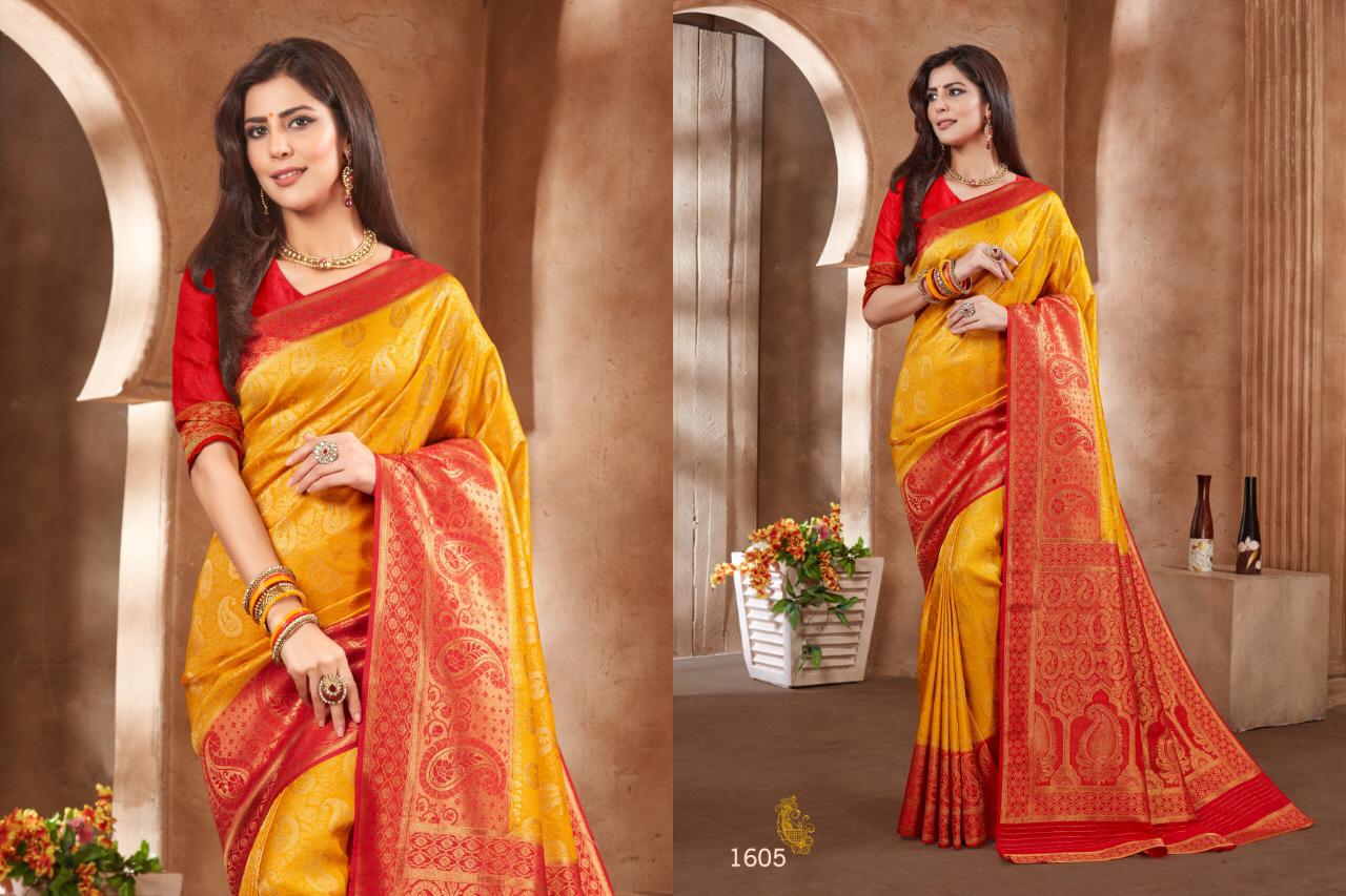 Buy Online Jyotsana Kanjivaram 3 Series 1601 Silk Sarees Set And Single Wholesale Supplier And Dealer India 8 Pcs of Full Catalogue at Wholesale Price. Looking for Jyotsana Kanjivaram 3 Series 1601 Silk Sarees Set And Single Wholesale Supplier And Dealer India Full Catalouge at Best Price? Buy Now Jyotsana Kanjivaram 3 Series 1601 Silk Sarees Set And Single Wholesale Supplier And Dealer India at Wholesale Rate of Rs 16400 with Total 8 Pcs from authroized dealer and supplier of BRAND'S Brand. Cost of Each piece is just only Rs 2050 which is very low and affordable price to resale the product in your retail store ,This is Surat based Wholesale Supplier & Dealer of BRAND'S Brand. Click on Brand name to Know more about BRAND'S Brand's products.Call or Whatsapp on 9898838984 for booking or enquiry