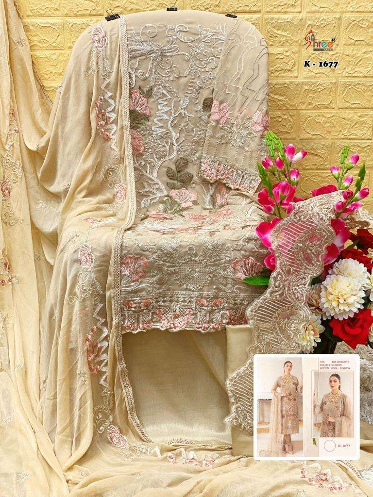BRAND NAME SHREE FAB SURAT DNOÂ? K-1677 TOP-FOX-GEORGETTE-with embroidery work DUPATTA -NAZMEEN- WITH-EMREODERY BOTTOM -SANTOON INNER SANTOON RATE = 1300/- DELLIVARYÂ -READY 100+ SINGLE |