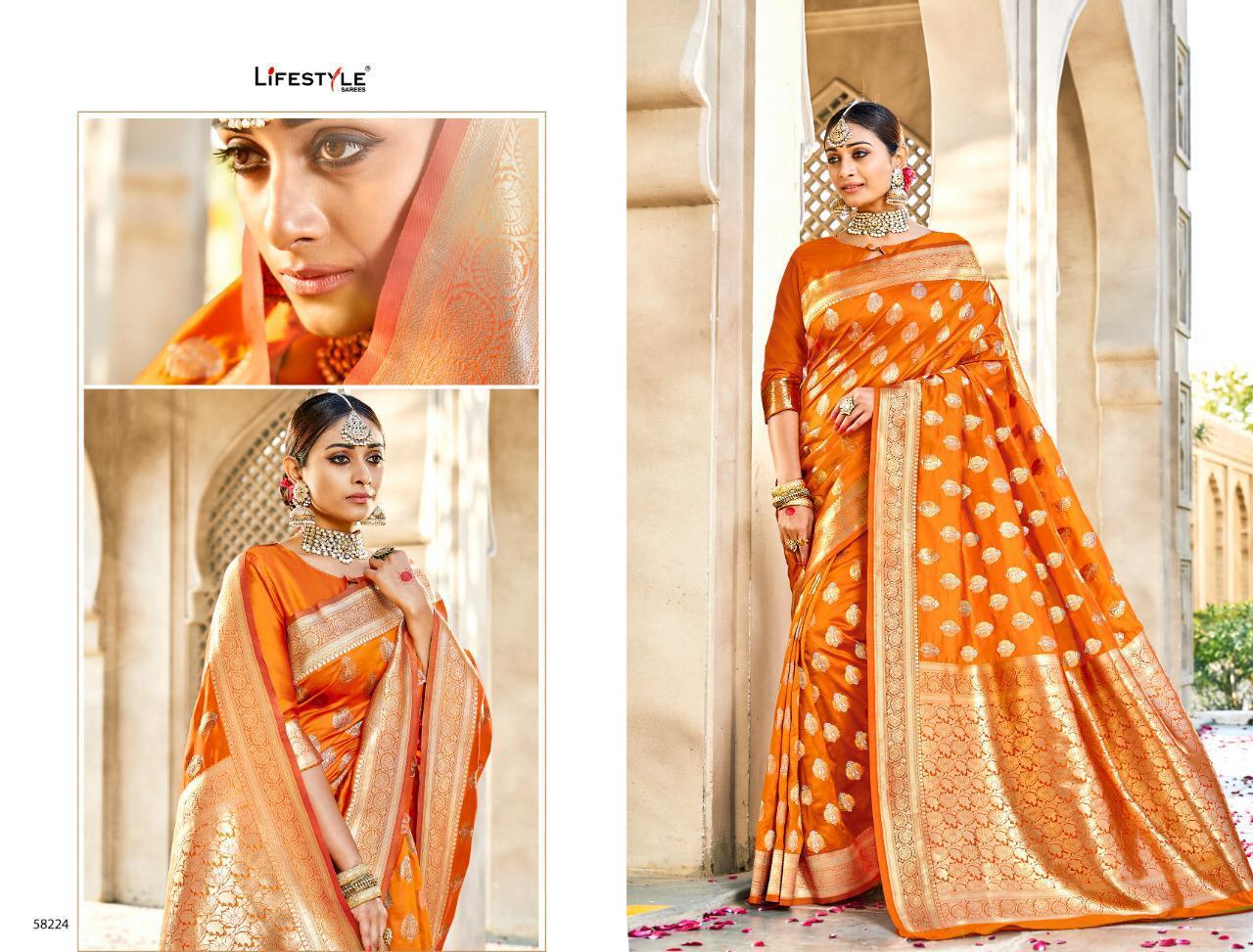 Buy Online Kainat By Lifstyle 58221 Series Fancy Party Wear Silk Saree Collection Wholesaler Dealer Surat 6 Pcs of Full Catalogue at Wholesale Price. Looking for Kainat By Lifstyle 58221 Series Fancy Party Wear Silk Saree Collection Wholesaler Dealer Surat Full Catalouge at Best Price? Buy Now Kainat By Lifstyle 58221 Series Fancy Party Wear Silk Saree Collection Wholesaler Dealer Surat at Wholesale Rate of Rs 10740 with Total 6 Pcs from authroized dealer and supplier of LIFESTYLE Brand. Cost of Each piece is just only Rs 1790 which is very low and affordable price to resale the product in your retail store ,This is Surat based Wholesale Supplier & Dealer of LIFESTYLE Brand. Click on Brand name to Know more about LIFESTYLE Brand's products.Call or Whatsapp on 9898838984 for booking or enquiry