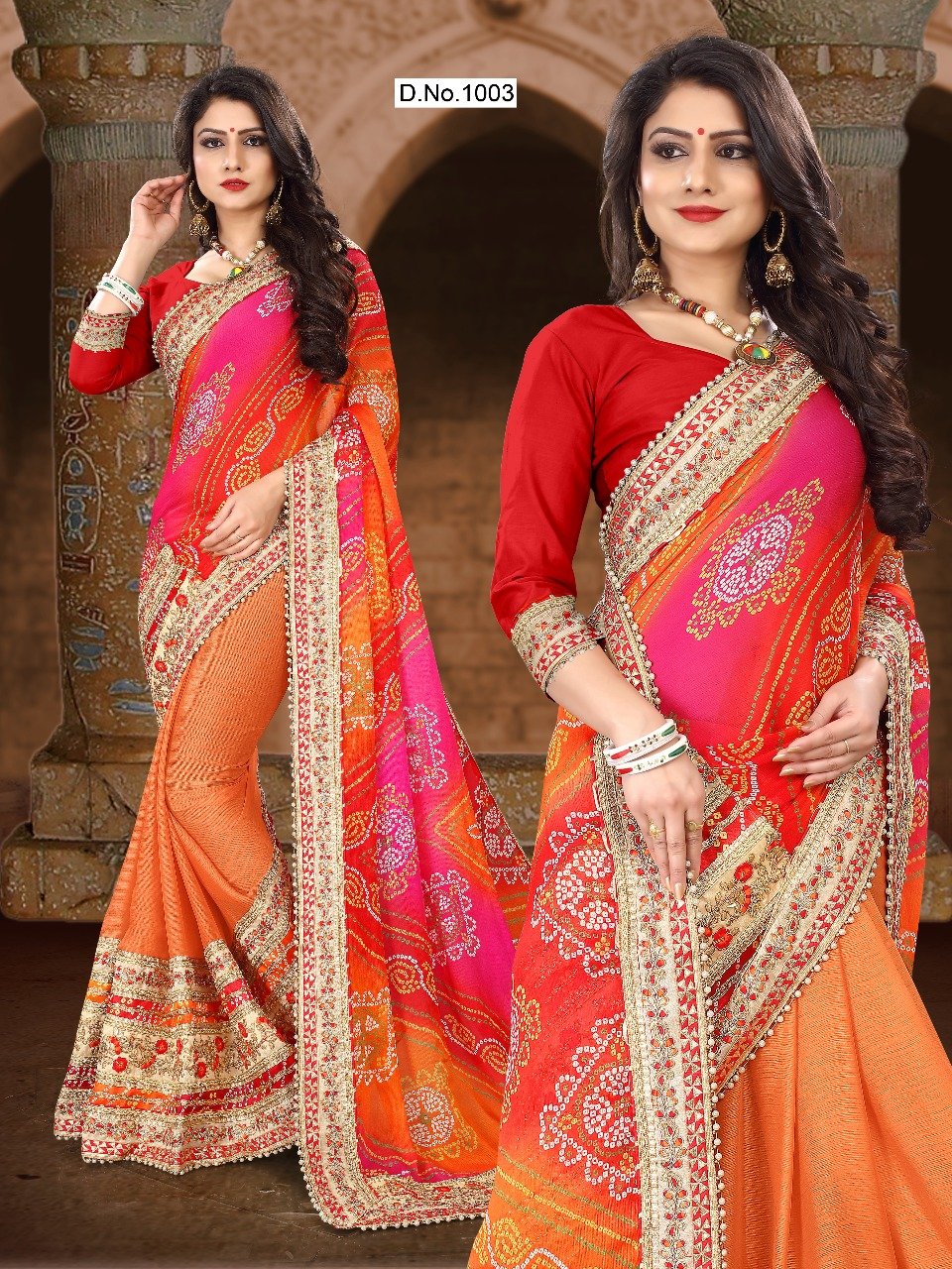 New heavy fabrics Bandhani catalogue Name. -. KAJAL Pcs. -. 5 pcs Rate. -. 1195/- Fabrics. -. Moss chiffon Gst 5% |