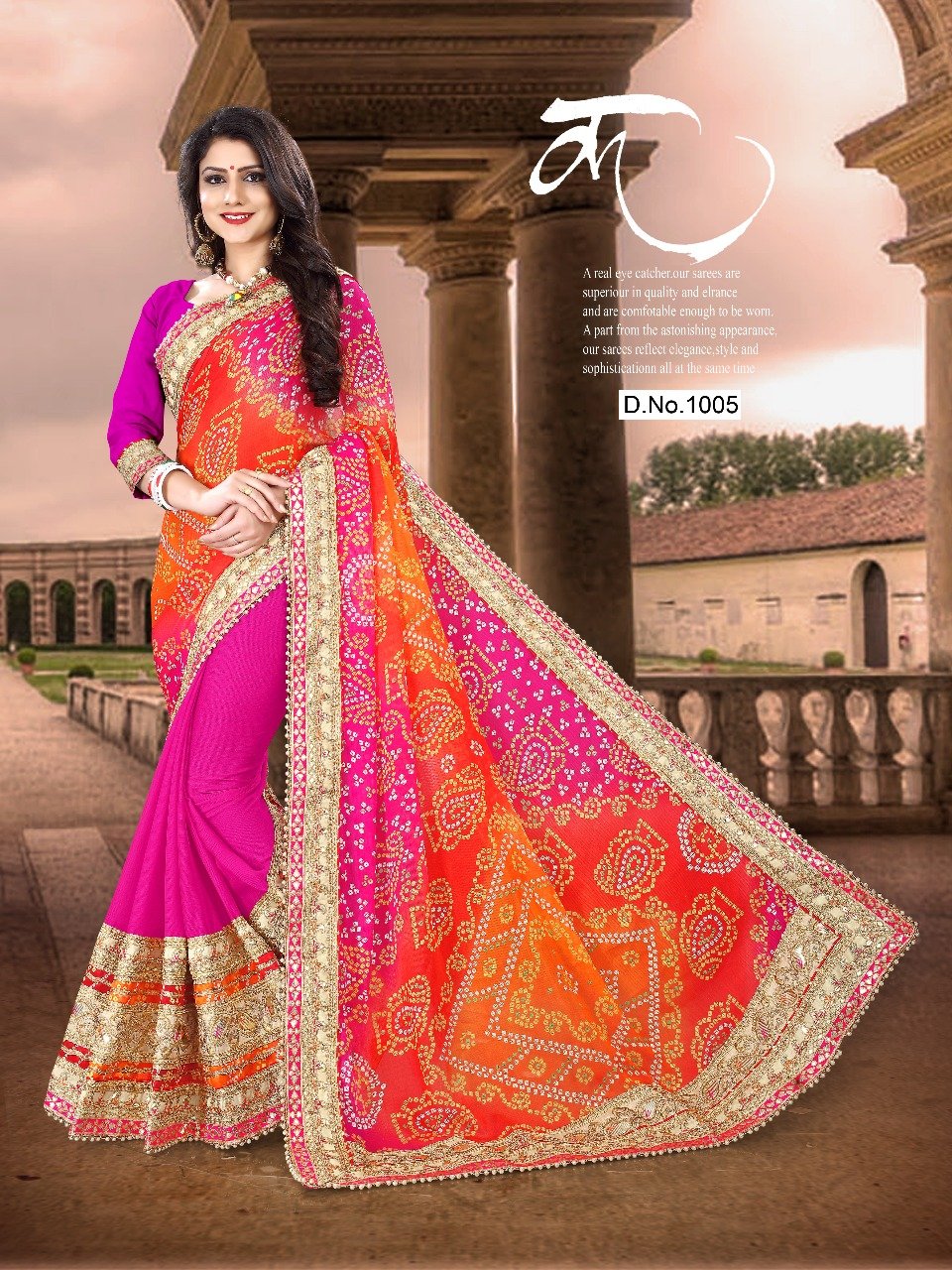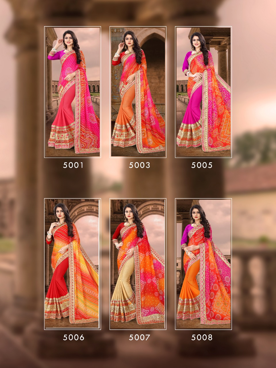 Buy Online Kajal By Jalnidhi 5001 Series Fancy Moss Chiffon Bandhni Printed Saree Collection Wholesale Dealer Surat 5 Pcs of Full Catalogue at Wholesale Price. Looking for Kajal By Jalnidhi 5001 Series Fancy Moss Chiffon Bandhni Printed Saree Collection Wholesale Dealer Surat Full Catalouge at Best Price? Buy Now Kajal By Jalnidhi 5001 Series Fancy Moss Chiffon Bandhni Printed Saree Collection Wholesale Dealer Surat at Wholesale Rate of Rs 5975 with Total 5 Pcs from authroized dealer and supplier of Jalnidhi sarees Brand. Cost of Each piece is just only Rs 1195 which is very low and affordable price to resale the product in your retail store ,This is Surat based Wholesale Supplier & Dealer of Jalnidhi sarees Brand. Click on Brand name to Know more about Jalnidhi sarees Brand's products.Call or Whatsapp on 9898838984 for booking or enquiry