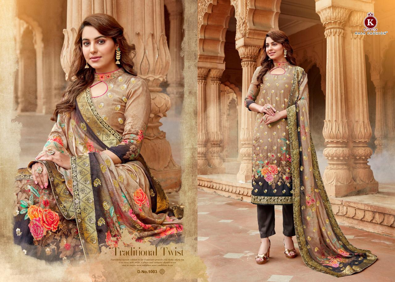 Kala Gold By Kala Fashion Banarasi Jecord Digital Printed Suits Wholesale Supplier Gujarat