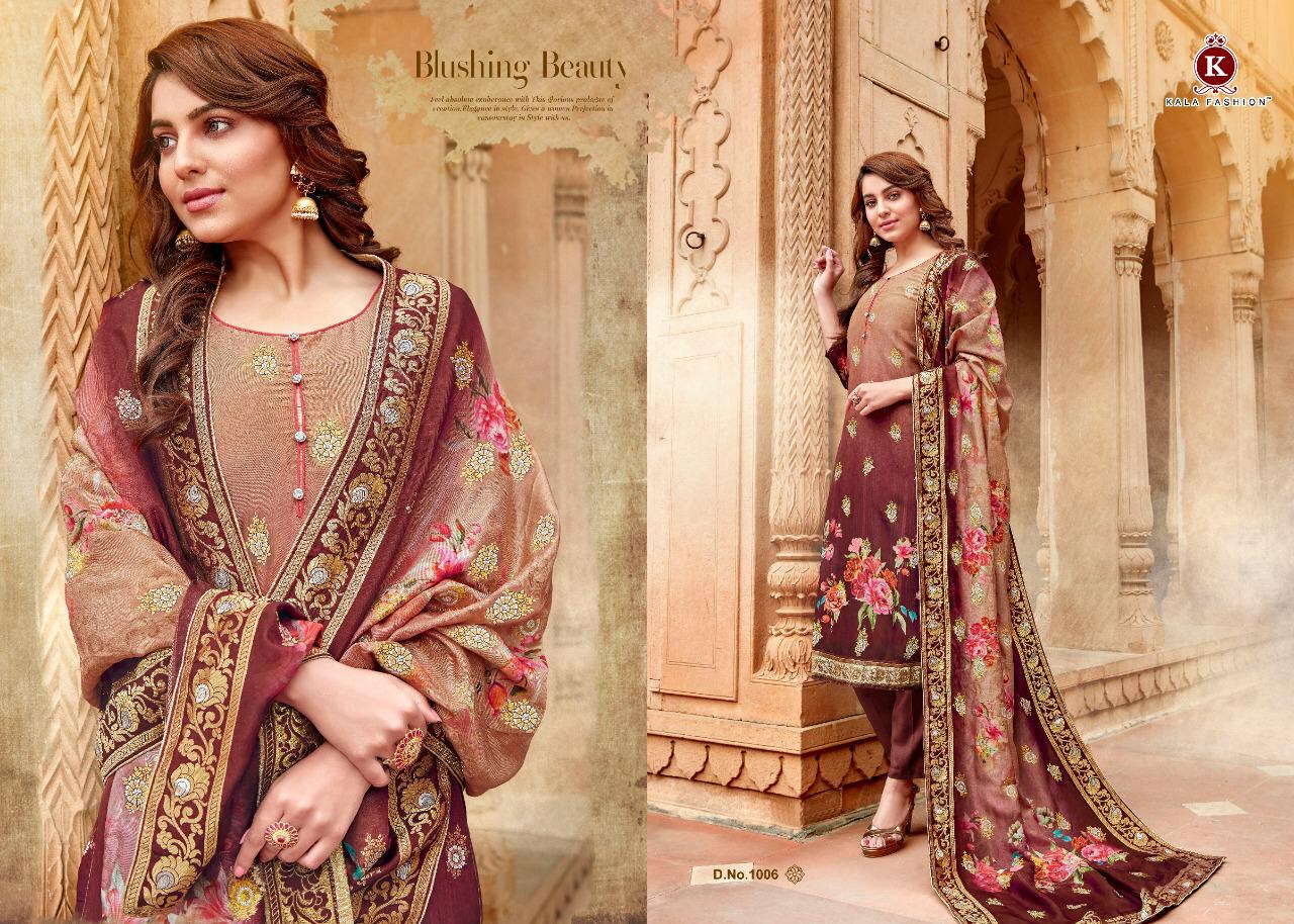 Buy Online Kala Gold By Kala Fashion Banarasi Jecord Digital Printed Suits Wholesale Supplier Gujarat 6 Pcs of Full Catalogue at Wholesale Price. Looking for Kala Gold By Kala Fashion Banarasi Jecord Digital Printed Suits Wholesale Supplier Gujarat Full Catalouge at Best Price? Buy Now Kala Gold By Kala Fashion Banarasi Jecord Digital Printed Suits Wholesale Supplier Gujarat at Wholesale Rate of Rs 13626 with Total 6 Pcs from authroized dealer and supplier of Brand. Cost of Each piece is just only Rs 2271 which is very low and affordable price to resale the product in your retail store ,This is Surat based Wholesale Supplier & Dealer of Brand. Click on Brand name to Know more about Brand's products.Call or Whatsapp on 9898838984 for booking or enquiry