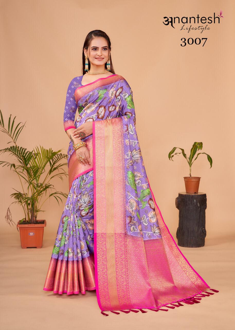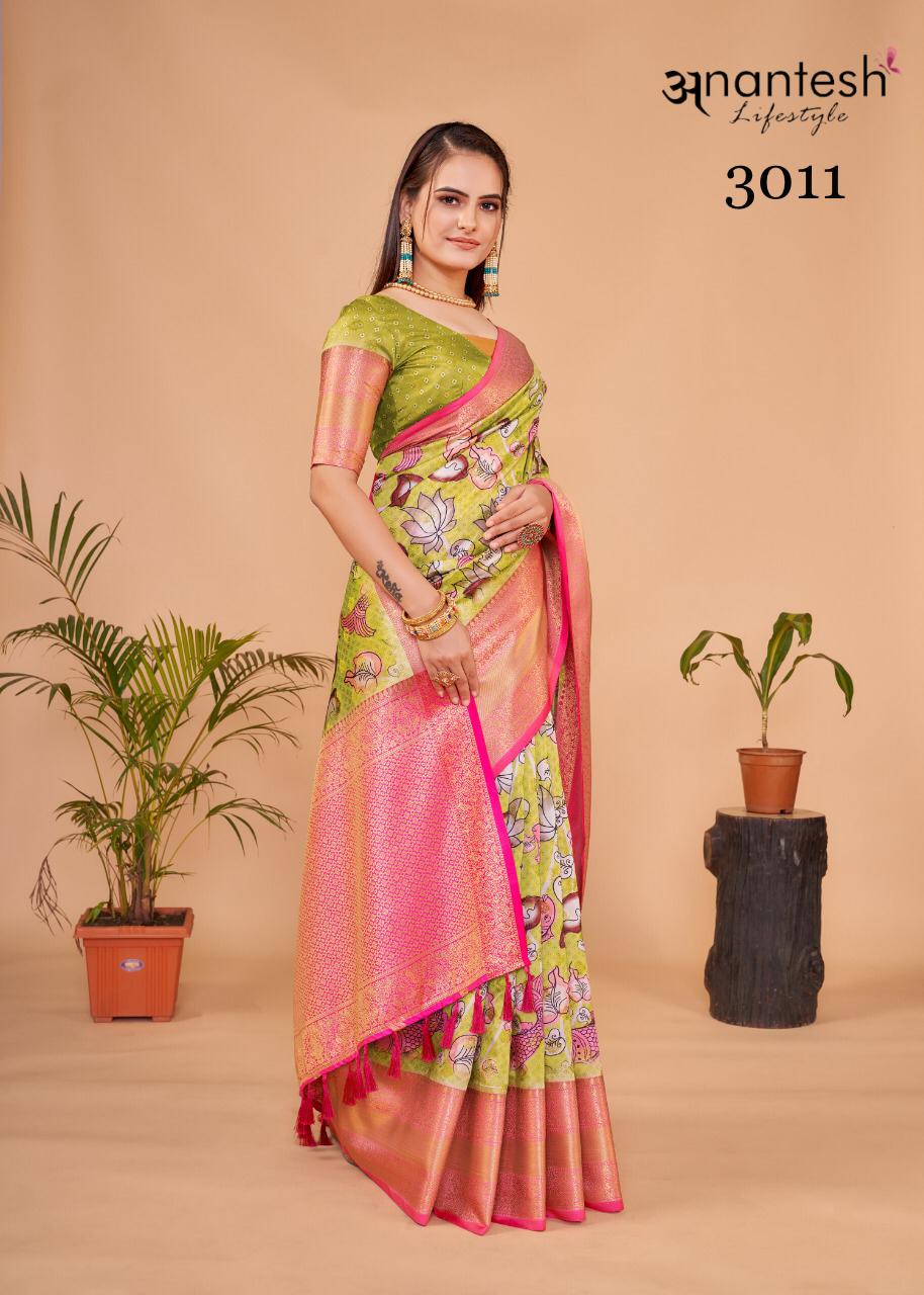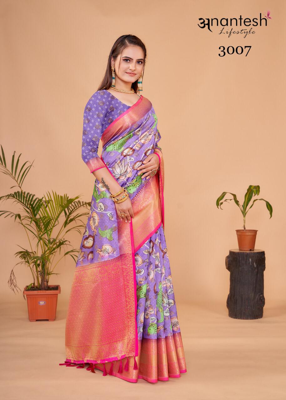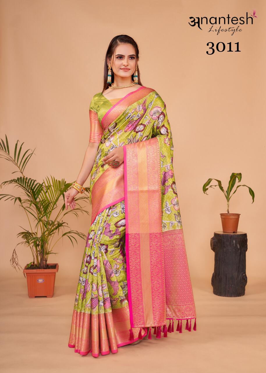 Kalamkaari Pattu Silk Vol 2 Series 3007 To 3011 By Anantesh Lifestyle Designer Saree Single Avilable Manufacturer Surat