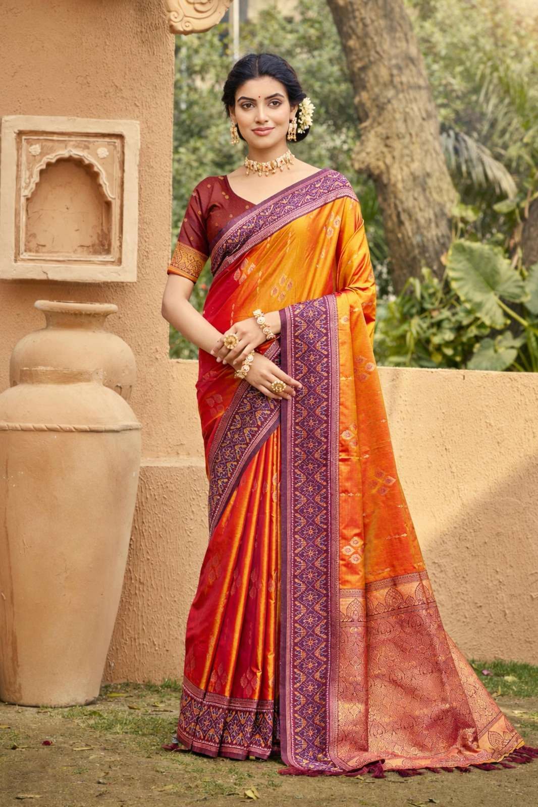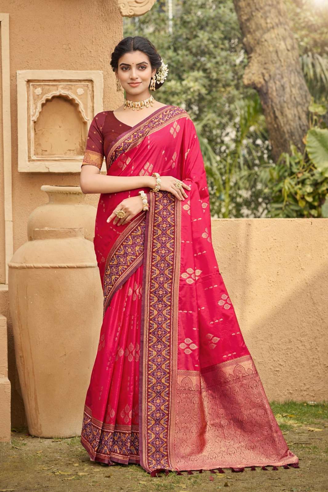 Brand - Bunawat Catalogue Name : KALAMKARI Saree Fabric : SOFT SILK Blouse Fabric : SOFT SILK Price : 1475 GST 5% Extra. Single available. Ready to ship. |