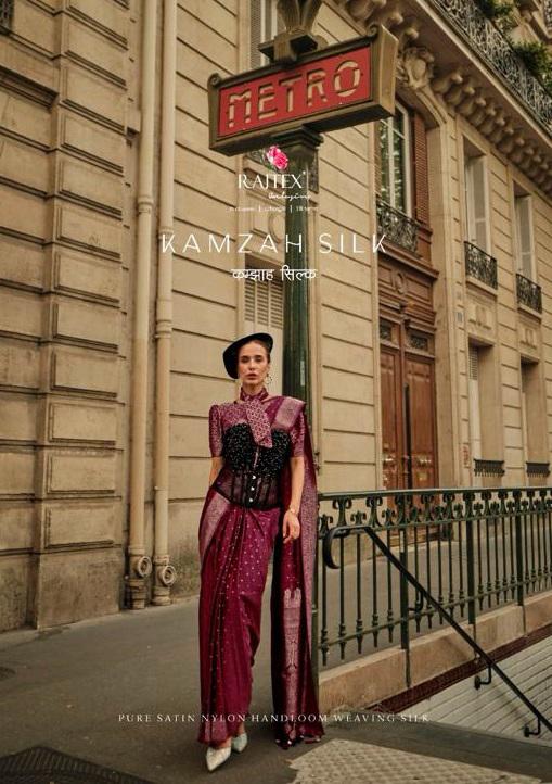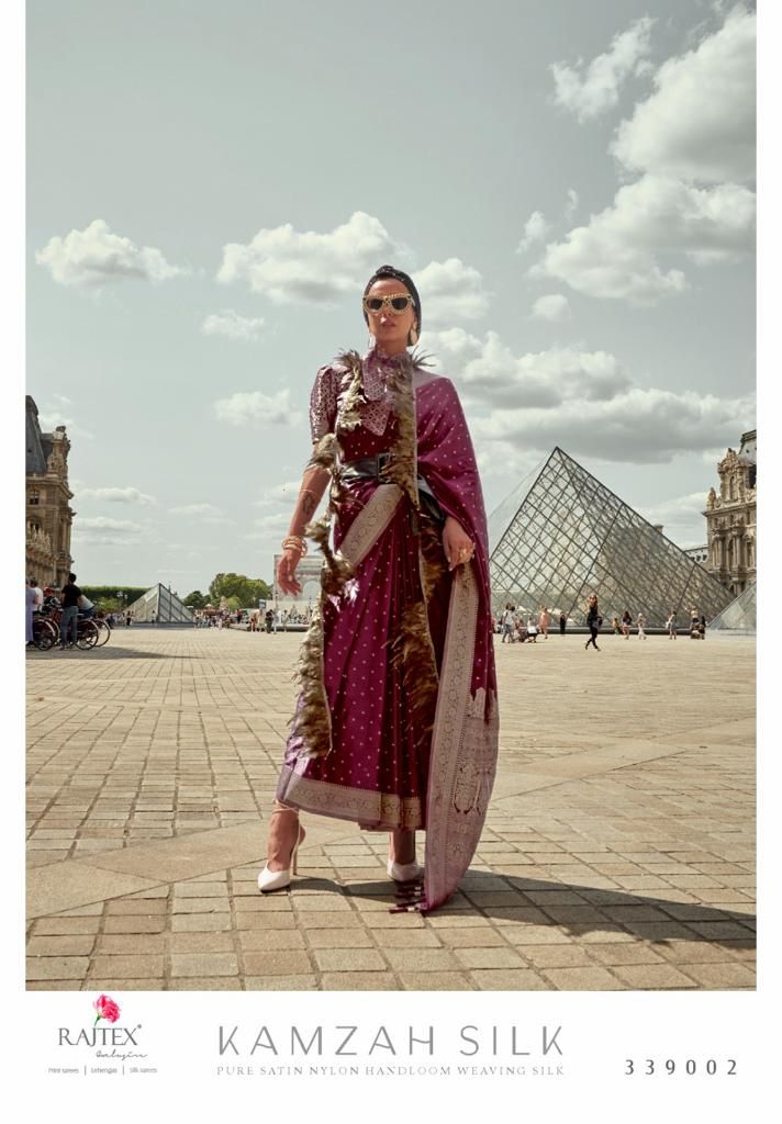 Kamzah Silk Series 339001 To 339008 By Rajtex Pure Satin Silk Sarees Collection Manufacturer Surat
