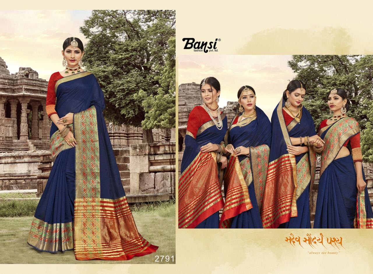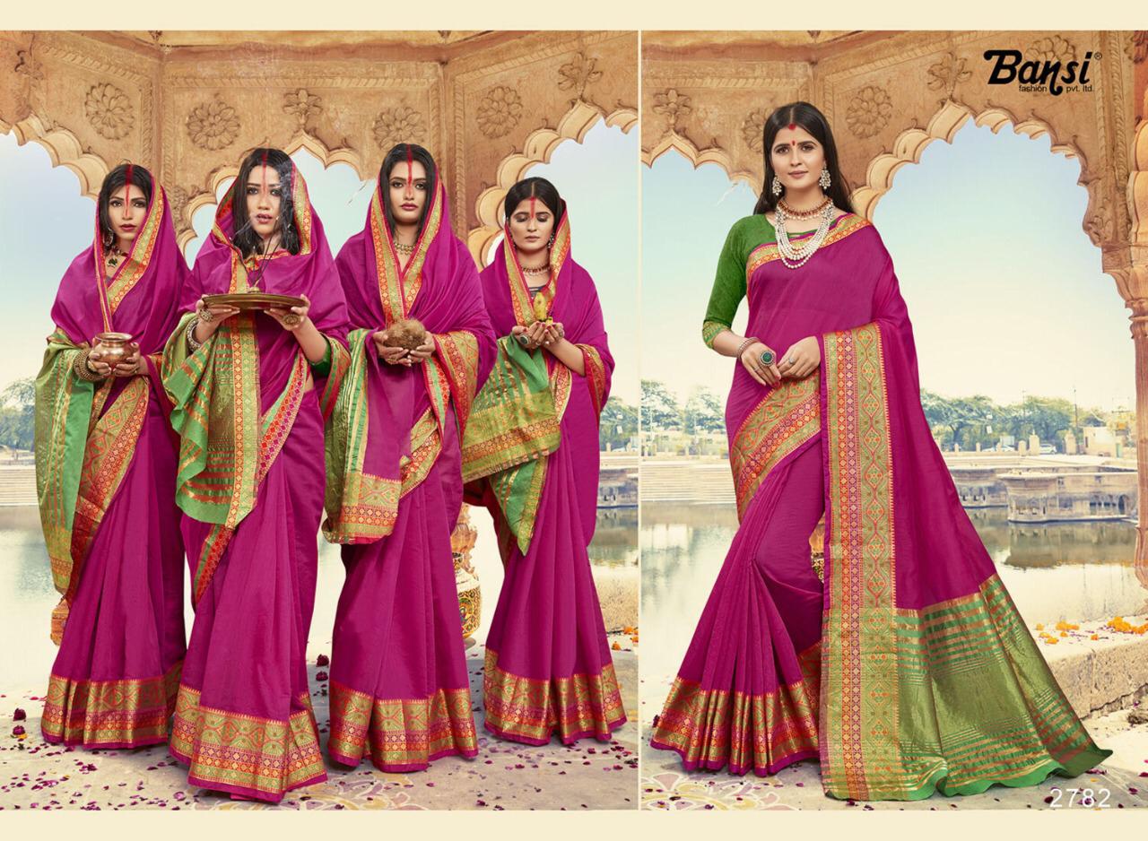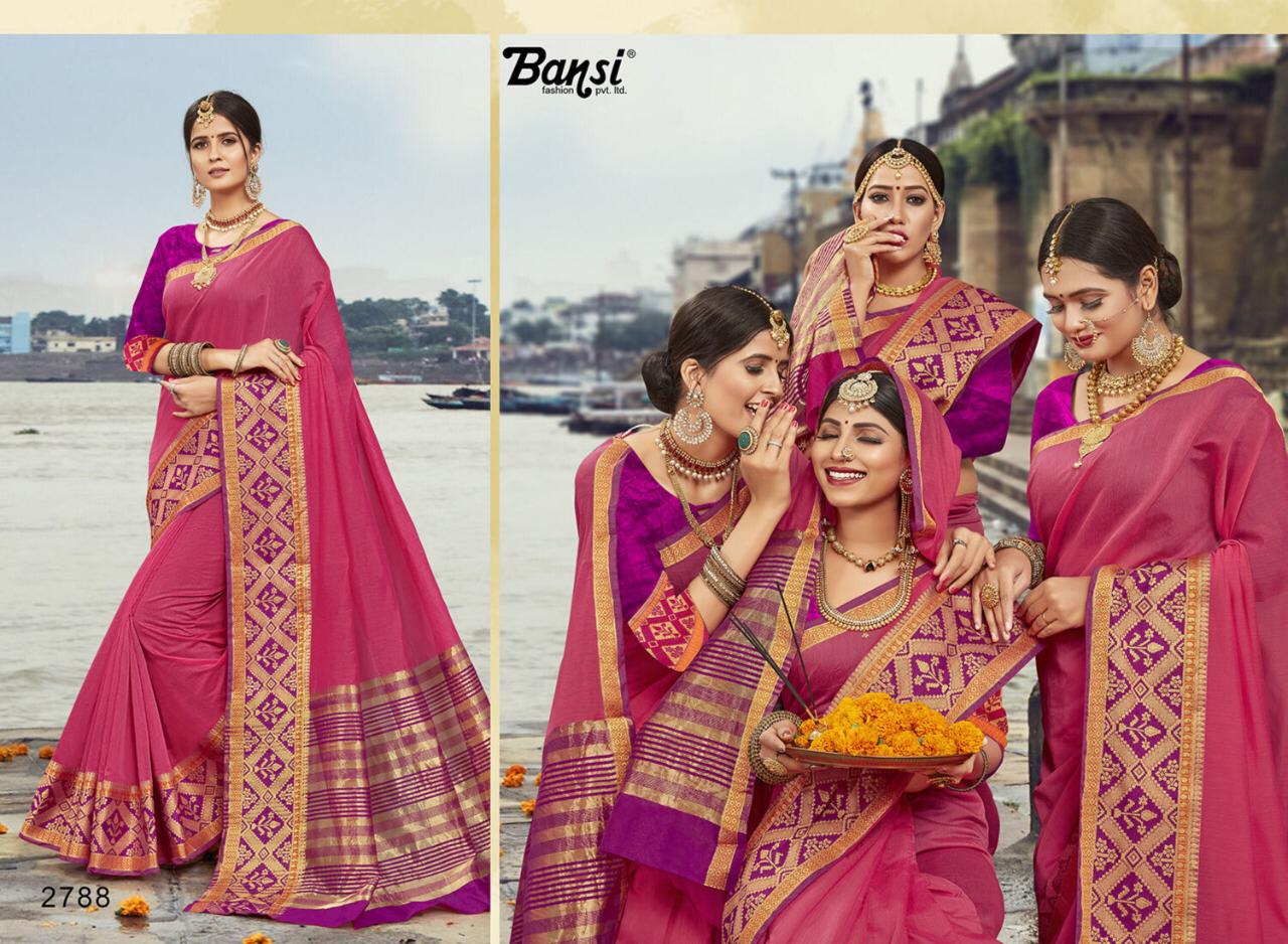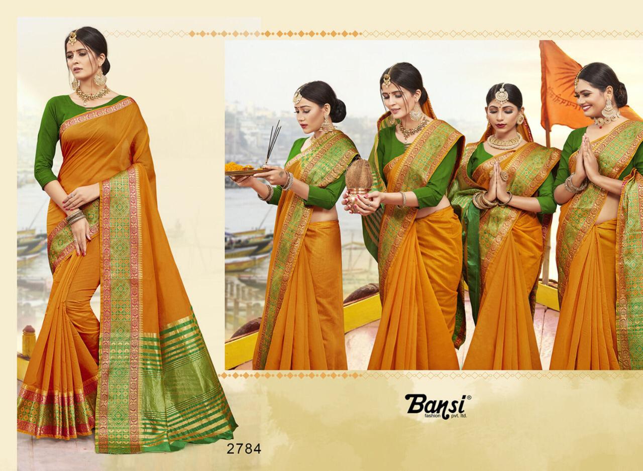 Kanjivaram Silk by Bansi Fabric - Cotton Top Dyed Jeckard Border Rate -470 per pcs . * No any less * * set & Loose & Singel * Single 570/- * set & Loose & Singel * GST 5 Percent Extra. Delivery- Running |