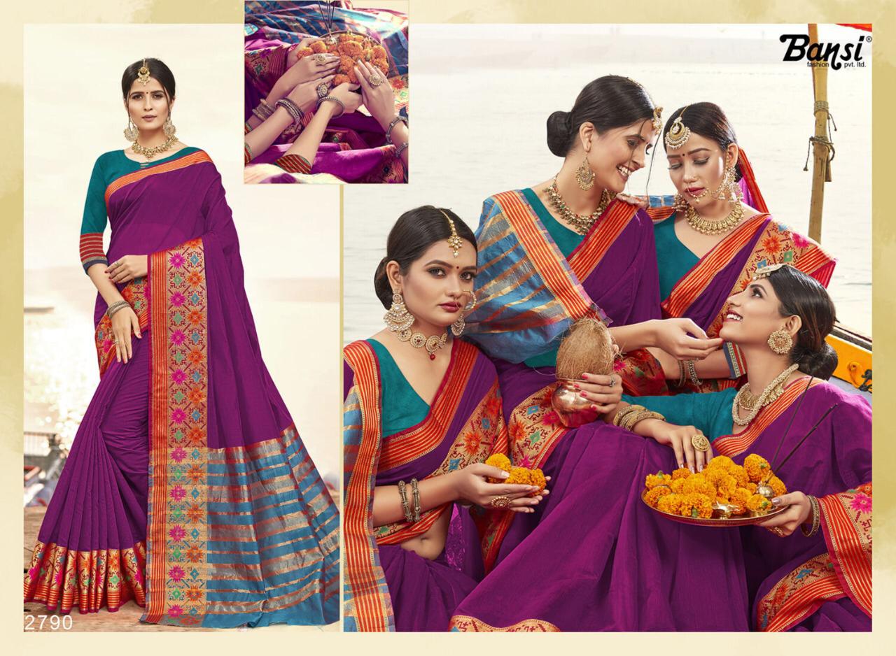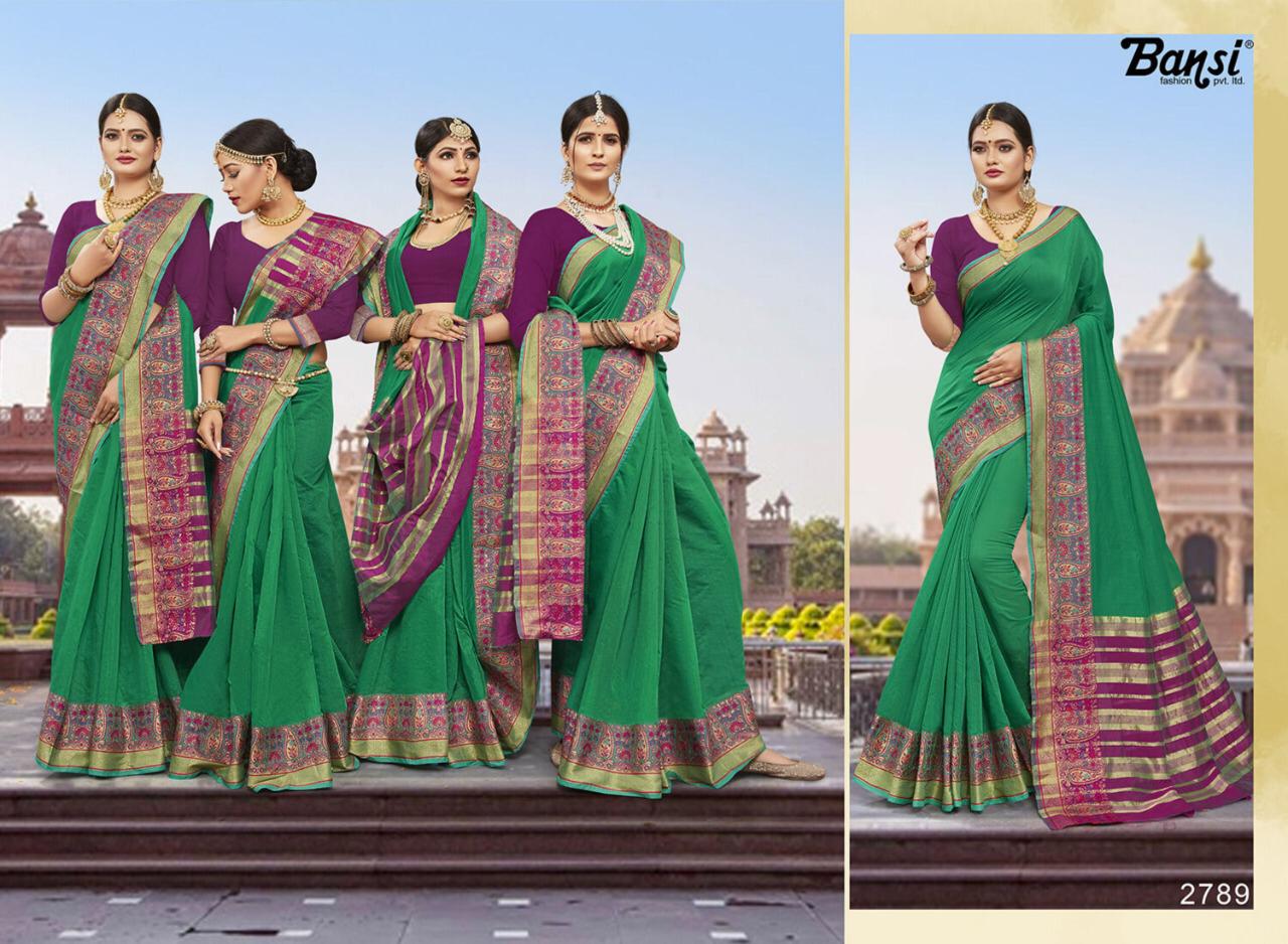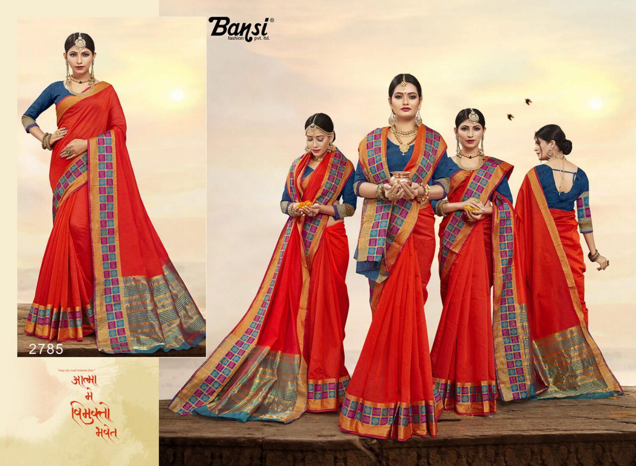 Kanjivaram Silk by Bansi Fabric - Cotton Top Dyed Jeckard Border Rate -470 per pcs . * No any less * * set & Loose & Singel * Single 570/- * set & Loose & Singel * GST 5 Percent Extra. Delivery- Running |