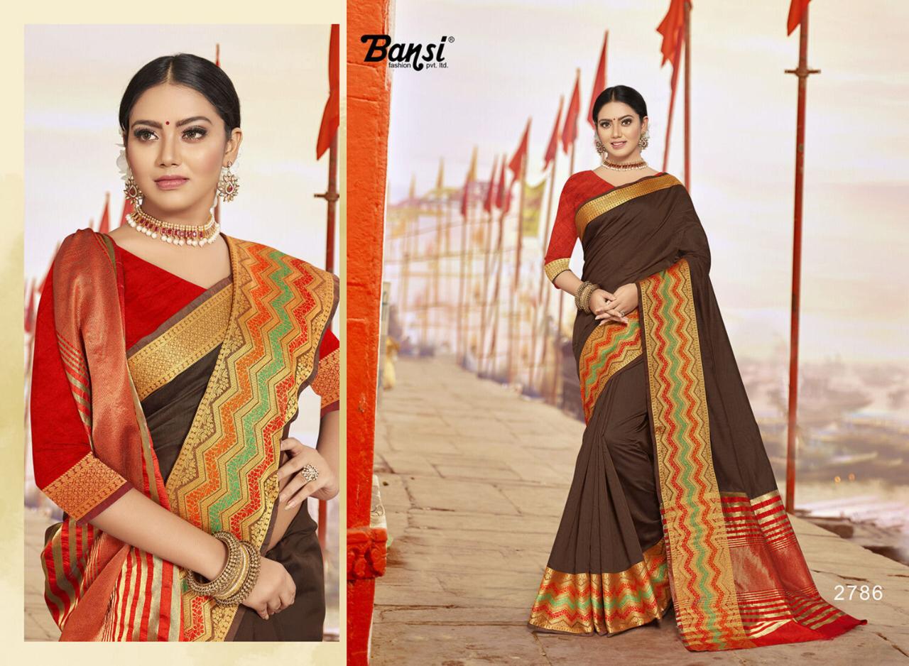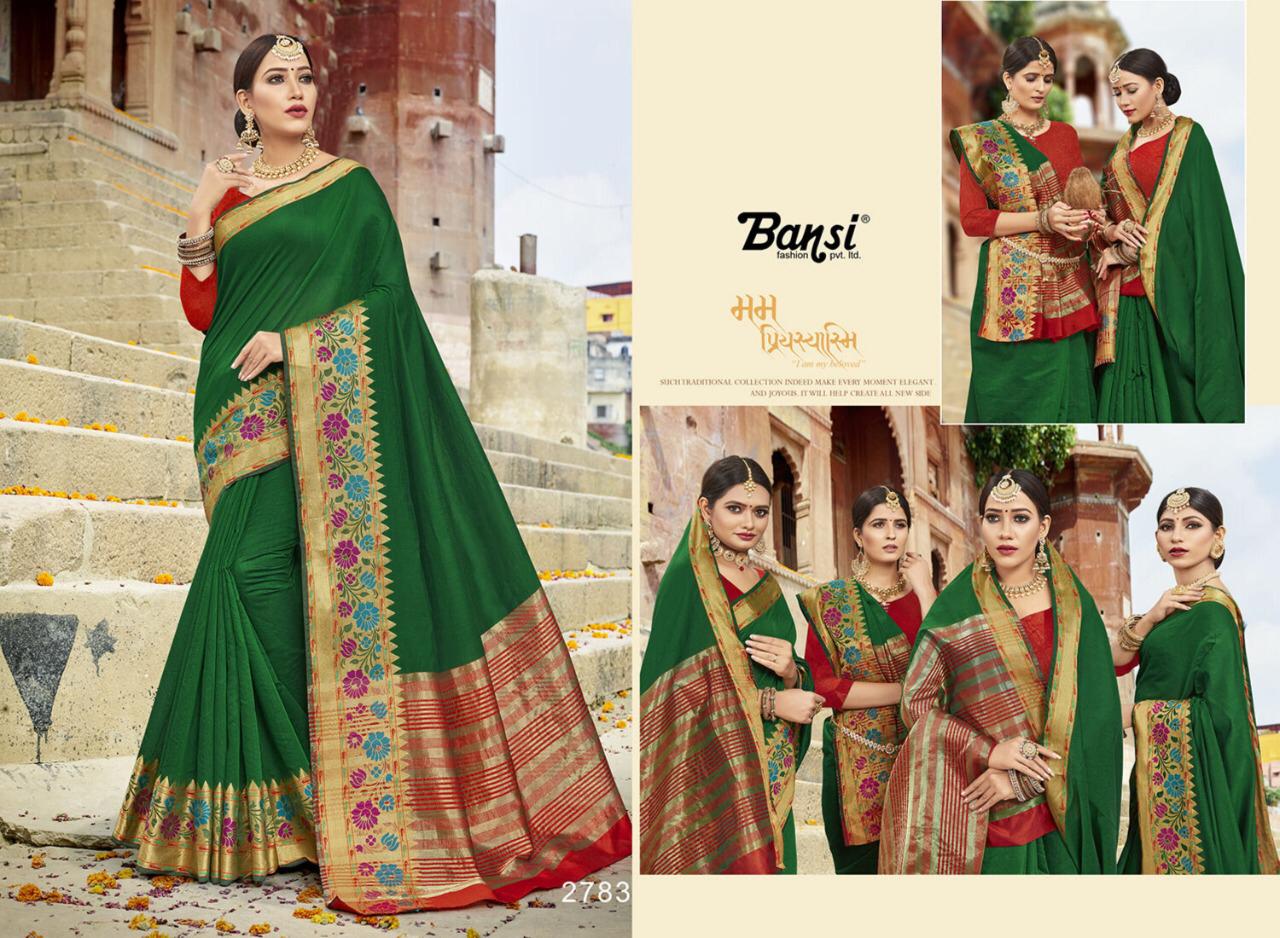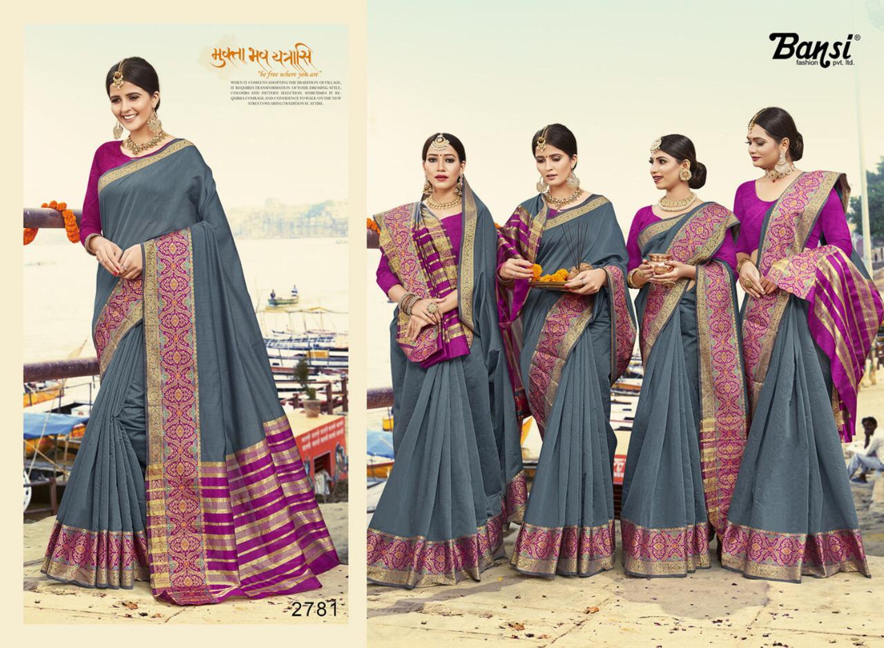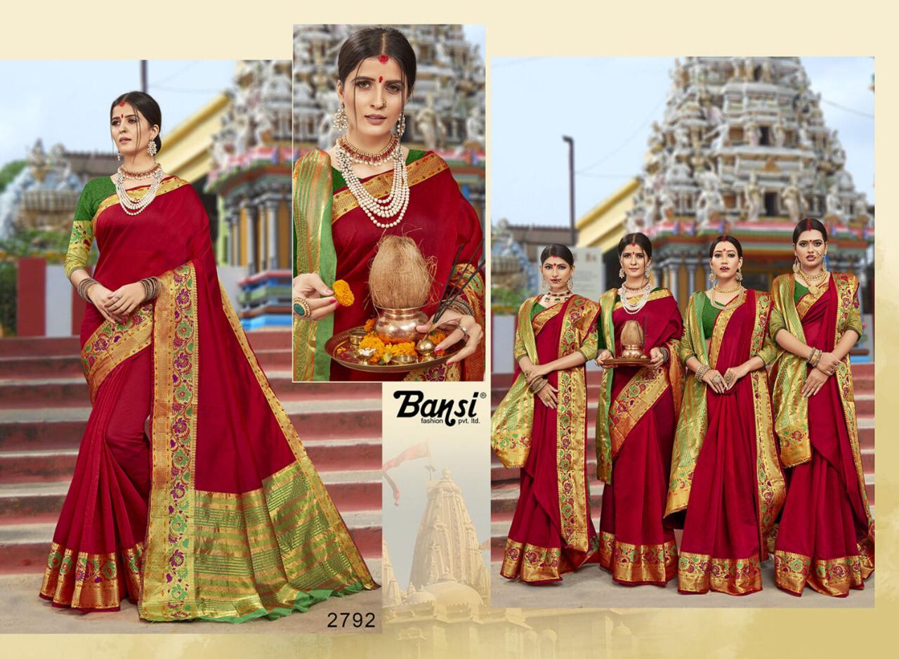 Kanjivaram Silk by Bansi Fabric - Cotton Top Dyed Jeckard Border Rate -470 per pcs . * No any less * * set & Loose & Singel * Single 570/- * set & Loose & Singel * GST 5 Percent Extra. Delivery- Running |