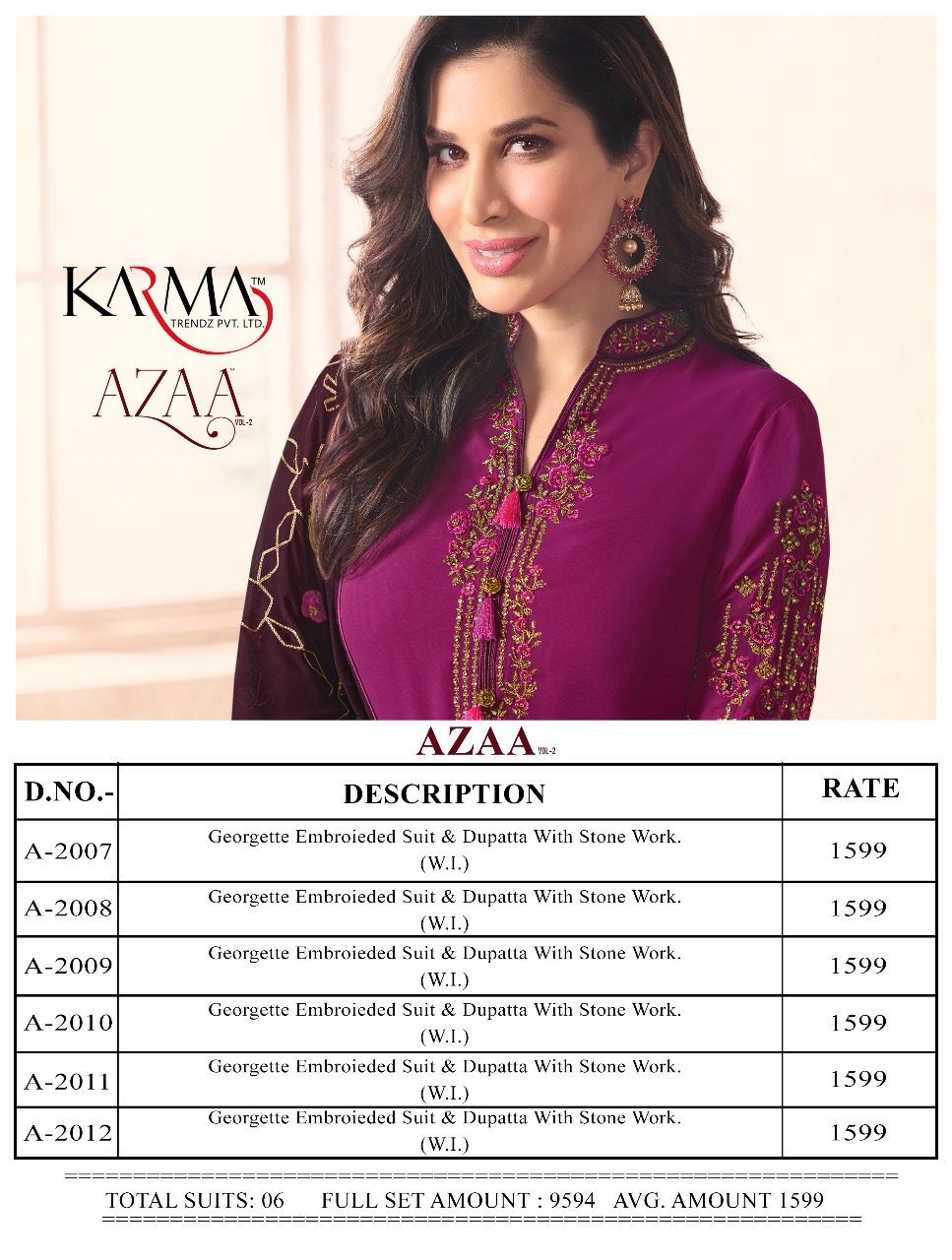 Karma Trendz Azaa Vol 2 Designer Suit Price - 1599+gst Limited stock book your order fast order and inquiry +919898838984 |