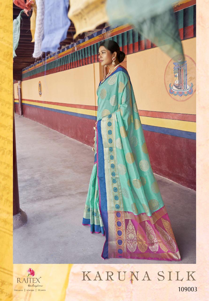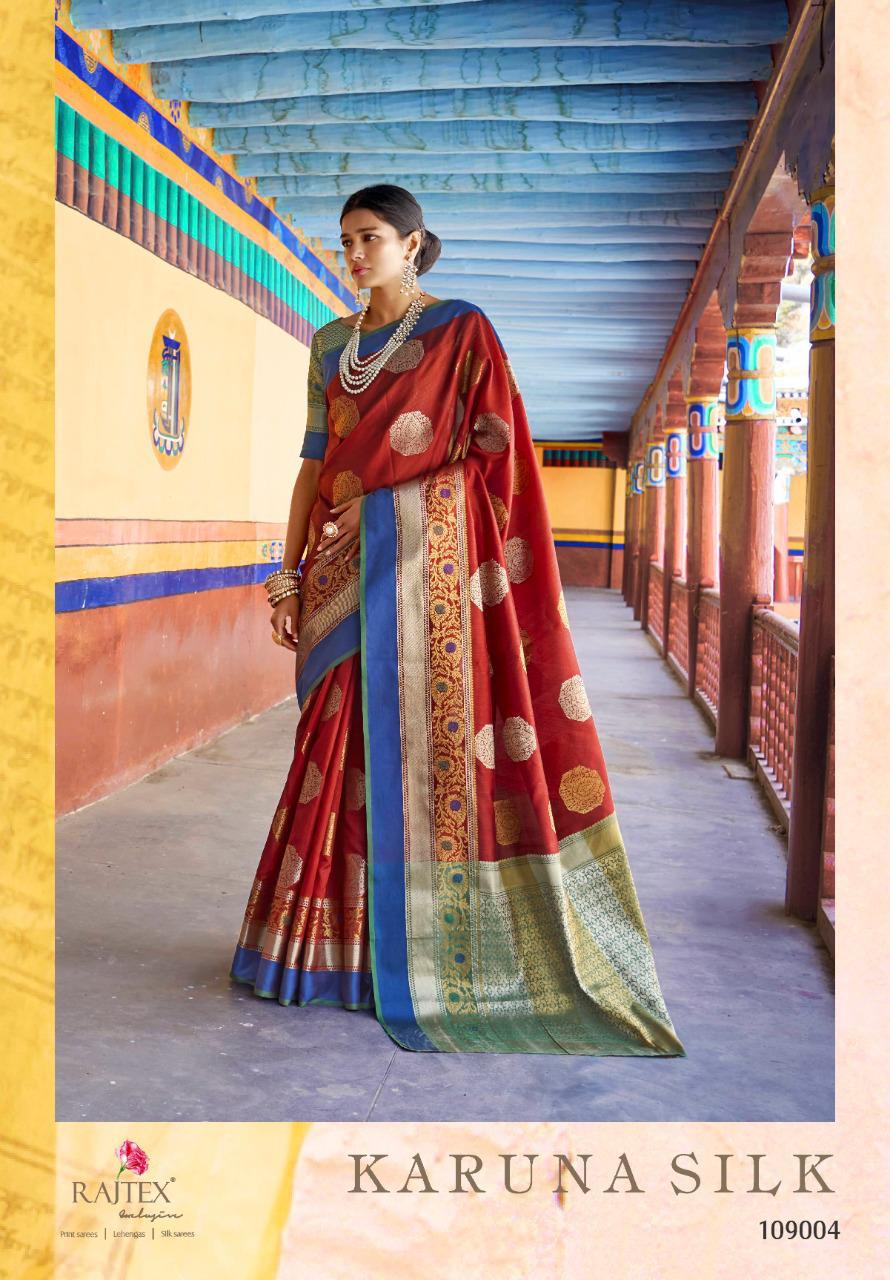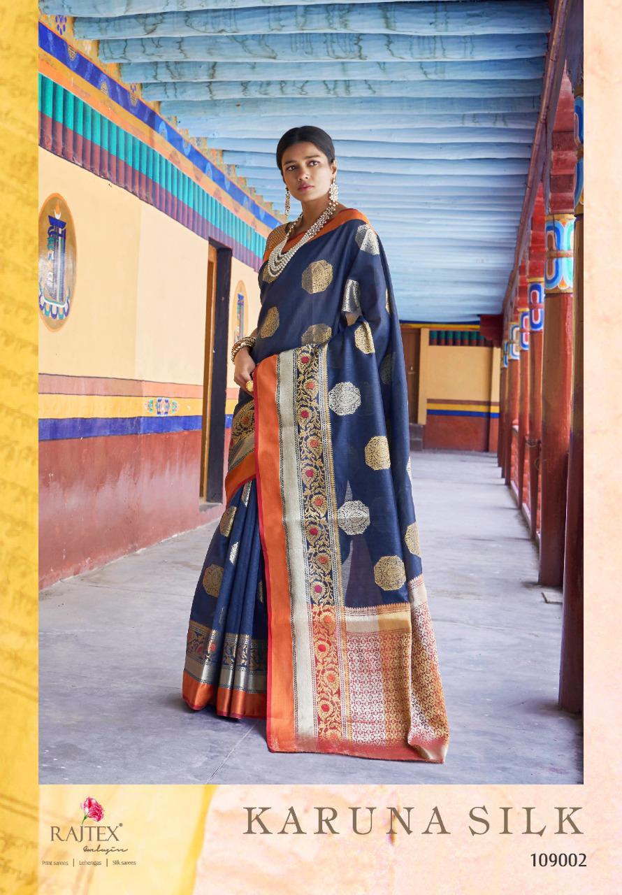 Buy Online Karuna Silk By Raj Tex Series 109001 To 109010 Designer Party Wear Suits Wholesale Supplier Gujarat 10 Pcs of Full Catalogue at Wholesale Price. Looking for Karuna Silk By Raj Tex Series 109001 To 109010 Designer Party Wear Suits Wholesale Supplier Gujarat Full Catalouge at Best Price? Buy Now Karuna Silk By Raj Tex Series 109001 To 109010 Designer Party Wear Suits Wholesale Supplier Gujarat at Wholesale Rate of Rs 10950 with Total 10 Pcs from authroized dealer and supplier of RAJTEX Brand. Cost of Each piece is just only Rs 1095 which is very low and affordable price to resale the product in your retail store ,This is Surat based Wholesale Supplier & Dealer of RAJTEX Brand. Click on Brand name to Know more about RAJTEX Brand's products.Call or Whatsapp on 9898838984 for booking or enquiry