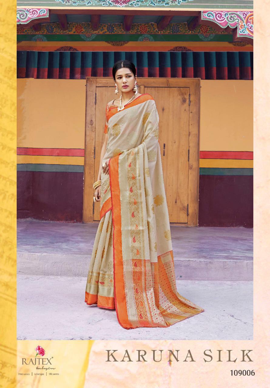 *KARUNA SILK* by Raj Tex *KRYSTAL SONA CHANDI SATIN PATTA BORDER* *Rate - 1095?* GST 5 Percent Extra. Series -109001 to 109010 Set & Loose Delivery from today Single Extra 100 * |
