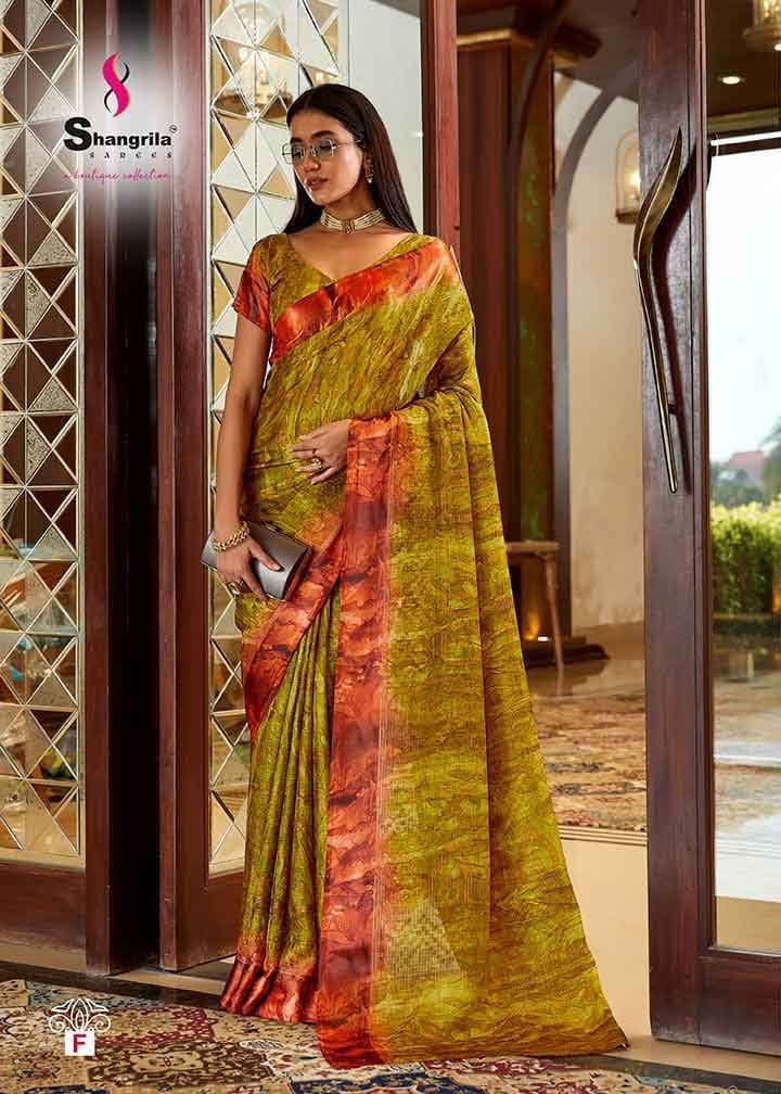 Buy Online Kashish Brasso Vol 7 By Shangrila Sarees Wholesaler Supplier From Surat 6 Pcs of Full Catalogue at Wholesale Price. Looking for Kashish Brasso Vol 7 By Shangrila Sarees Wholesaler Supplier From Surat Full Catalouge at Best Price? Buy Now Kashish Brasso Vol 7 By Shangrila Sarees Wholesaler Supplier From Surat at Wholesale Rate of Rs 4350 with Total 6 Pcs from authroized dealer and supplier of SHANGRILA Brand. Cost of Each piece is just only Rs 725 which is very low and affordable price to resale the product in your retail store ,This is Surat based Wholesale Supplier & Dealer of SHANGRILA Brand. Click on Brand name to Know more about SHANGRILA Brand's products.Call or Whatsapp on 9898838984 for booking or enquiry