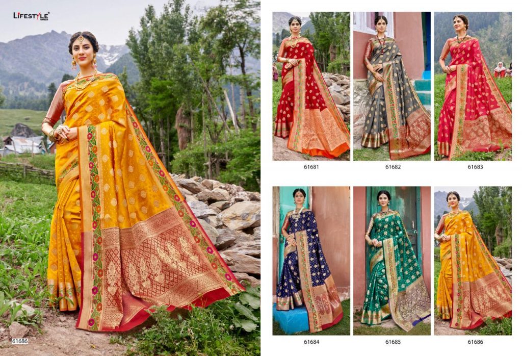 Buy Online Kashmiri Silk Vol 3 By Lifestyle Silk Designer Occasions Wear Sarees Wholesale Supplier Nd Trader Surat 6 Pcs of Full Catalogue at Wholesale Price. Looking for Kashmiri Silk Vol 3 By Lifestyle Silk Designer Occasions Wear Sarees Wholesale Supplier Nd Trader Surat Full Catalouge at Best Price? Buy Now Kashmiri Silk Vol 3 By Lifestyle Silk Designer Occasions Wear Sarees Wholesale Supplier Nd Trader Surat at Wholesale Rate of Rs 6690 with Total 6 Pcs from authroized dealer and supplier of LIFESTYLE Brand. Cost of Each piece is just only Rs 1115 which is very low and affordable price to resale the product in your retail store ,This is Surat based Wholesale Supplier & Dealer of LIFESTYLE Brand. Click on Brand name to Know more about LIFESTYLE Brand's products.Call or Whatsapp on 9898838984 for booking or enquiry