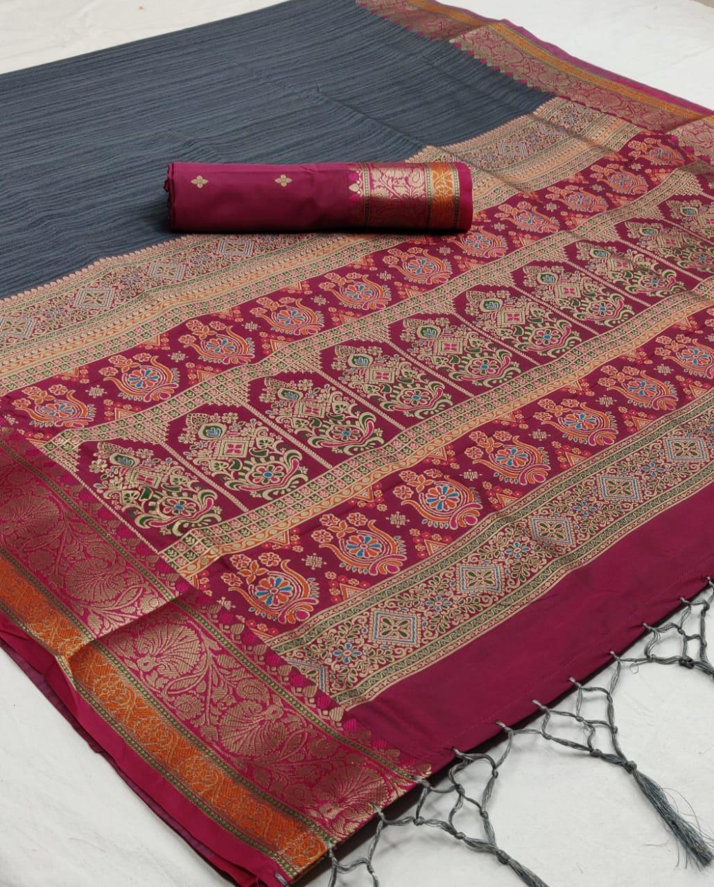 Brand - Raj Tex . Type - saree. Series - 130001 to 130006. *KATRIYA SILK* *Tessar silk Rich Pallu with Tassels* *Rate - 1260?* per Pcs . Set & loose & singel . Single extra 100 GST 5 Percent Extra. I *Dispatch starts from 20/08/2020* |