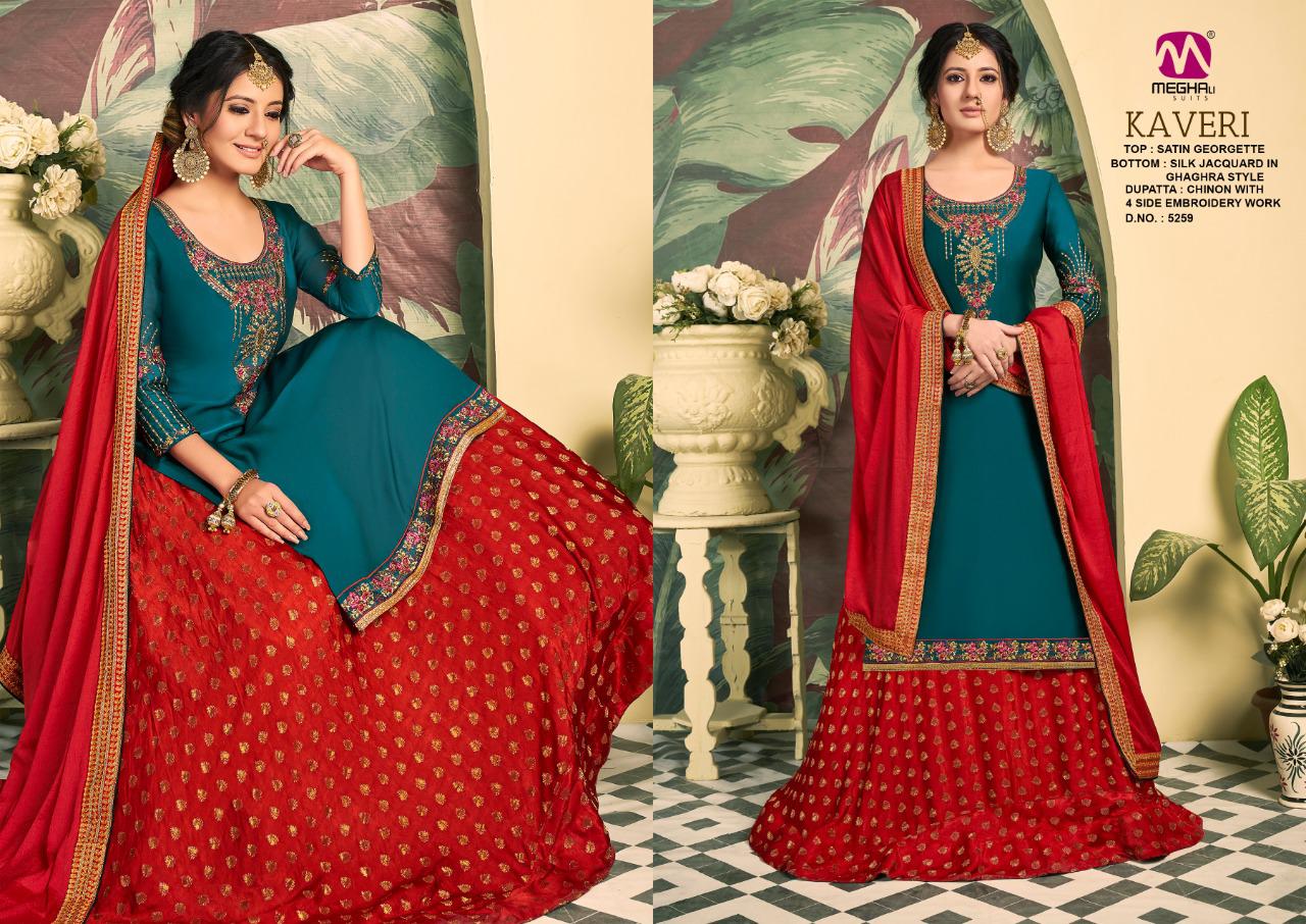Buy Online Kaveri By Megha Designer Party Wear Suits Wholesale Supplier Gujarat 4 Pcs of Full Catalogue at Wholesale Price. Looking for Kaveri By Megha Designer Party Wear Suits Wholesale Supplier Gujarat Full Catalouge at Best Price? Buy Now Kaveri By Megha Designer Party Wear Suits Wholesale Supplier Gujarat at Wholesale Rate of Rs 5400 with Total 4 Pcs from authroized dealer and supplier of Brand. Cost of Each piece is just only Rs 1350 which is very low and affordable price to resale the product in your retail store ,This is Surat based Wholesale Supplier & Dealer of Brand. Click on Brand name to Know more about Brand's products.Call or Whatsapp on 9898838984 for booking or enquiry