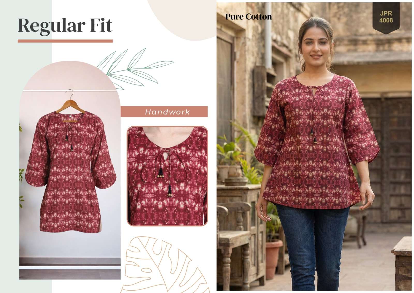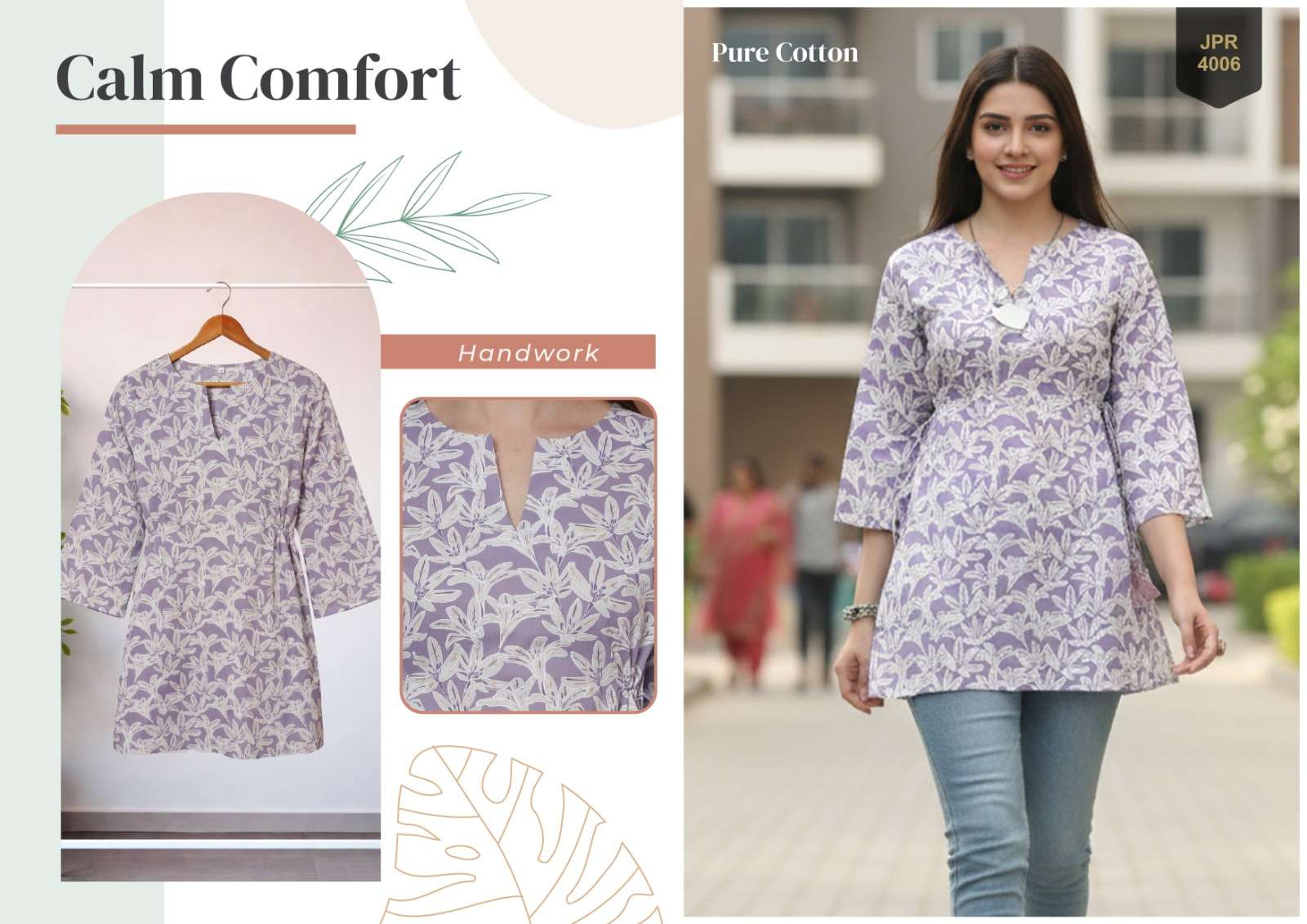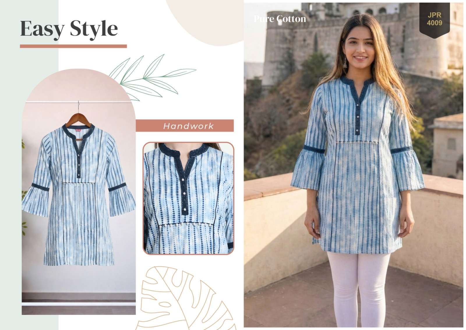 *Pure Cambric Cotton Jaipur Printed Tunics with Handwork*