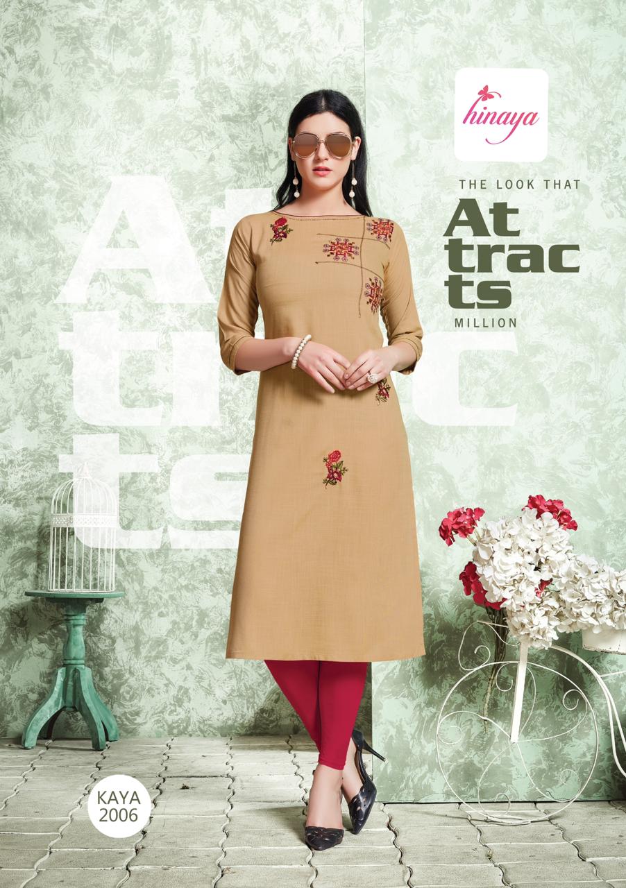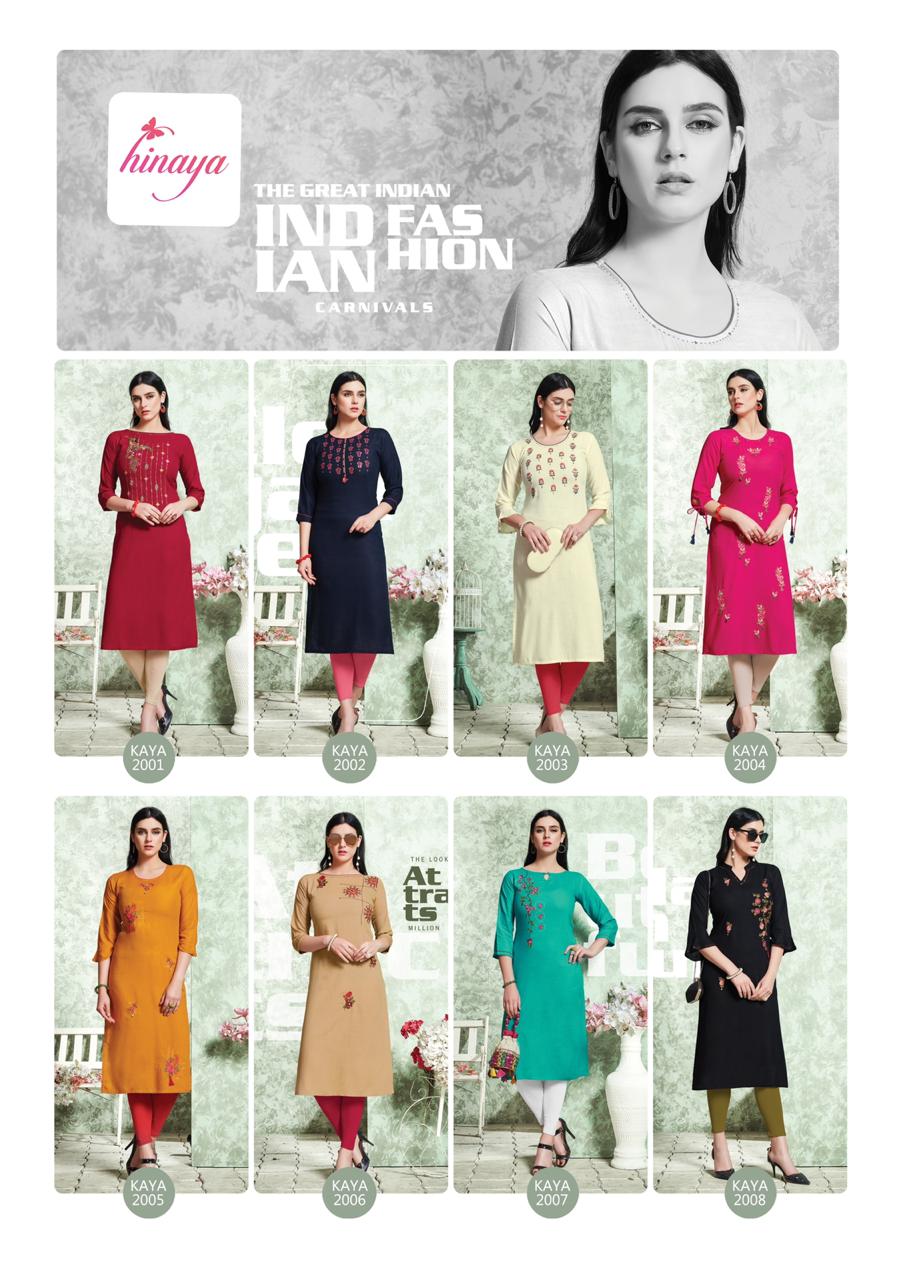 Buy Online Kaya Vol 1 By Hinaya Reyon Kurtis Wholesale Supplier Surat 8 Pcs of Full Catalogue at Wholesale Price. Looking for Kaya Vol 1 By Hinaya Reyon Kurtis Wholesale Supplier Surat Full Catalouge at Best Price? Buy Now Kaya Vol 1 By Hinaya Reyon Kurtis Wholesale Supplier Surat at Wholesale Rate of Rs 3080 with Total 8 Pcs from authroized dealer and supplier of BRAND'S Brand. Cost of Each piece is just only Rs 385 which is very low and affordable price to resale the product in your retail store ,This is Surat based Wholesale Supplier & Dealer of BRAND'S Brand. Click on Brand name to Know more about BRAND'S Brand's products.Call or Whatsapp on 9898838984 for booking or enquiry