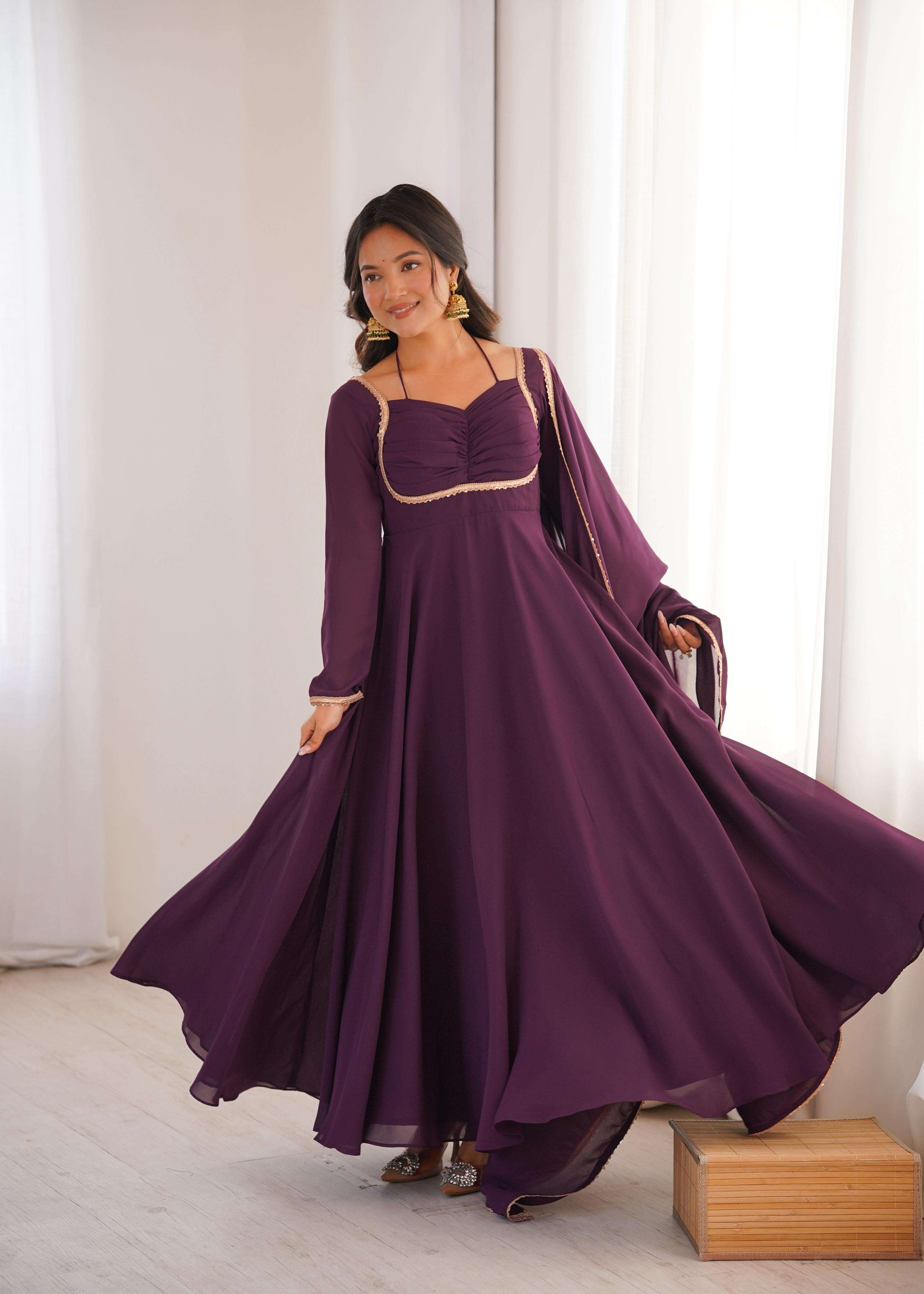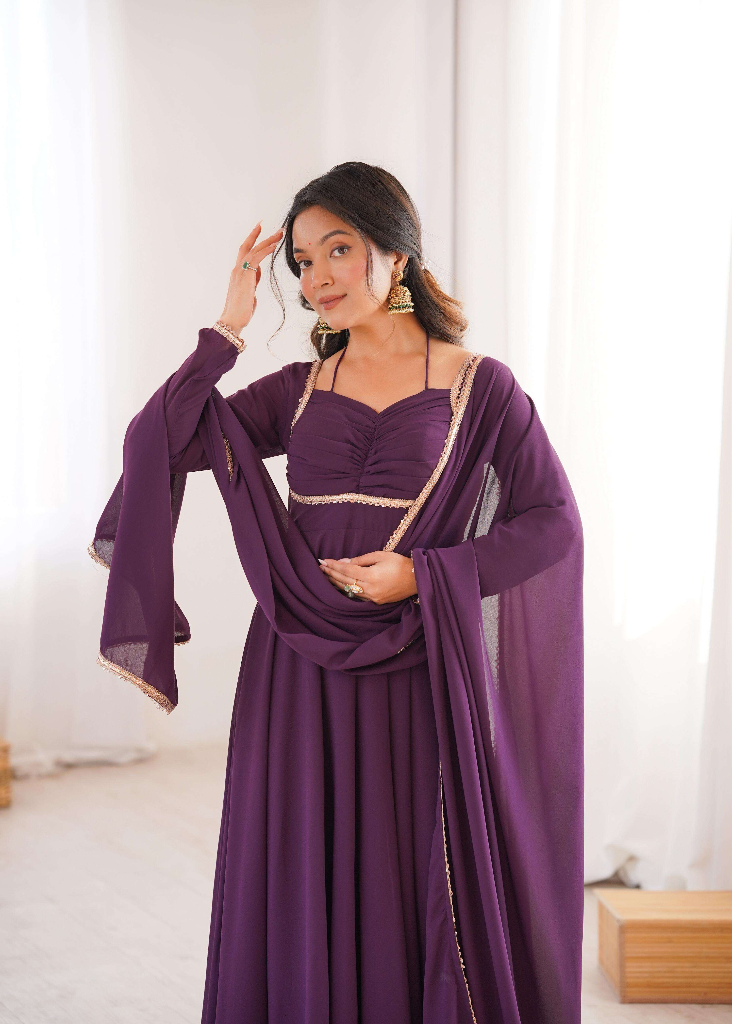 *This colourfull & fresh look outfit is perfect for upcoming festivities and weddings which provides you more comfort and style* *PRESENTING NEW GEORGETTE ANARKALI GOWN DUPPTA FULL SET READY TO WEAR*