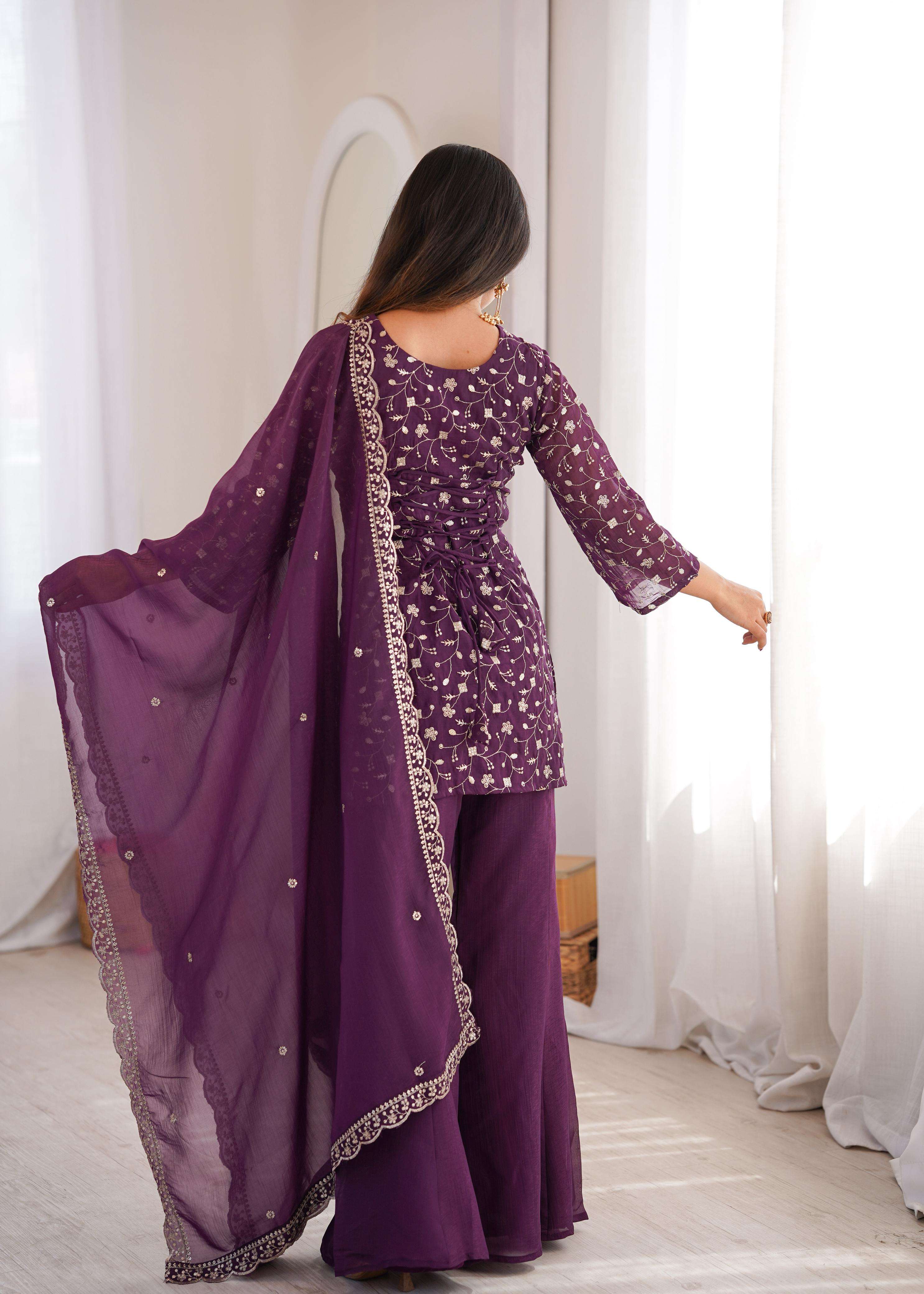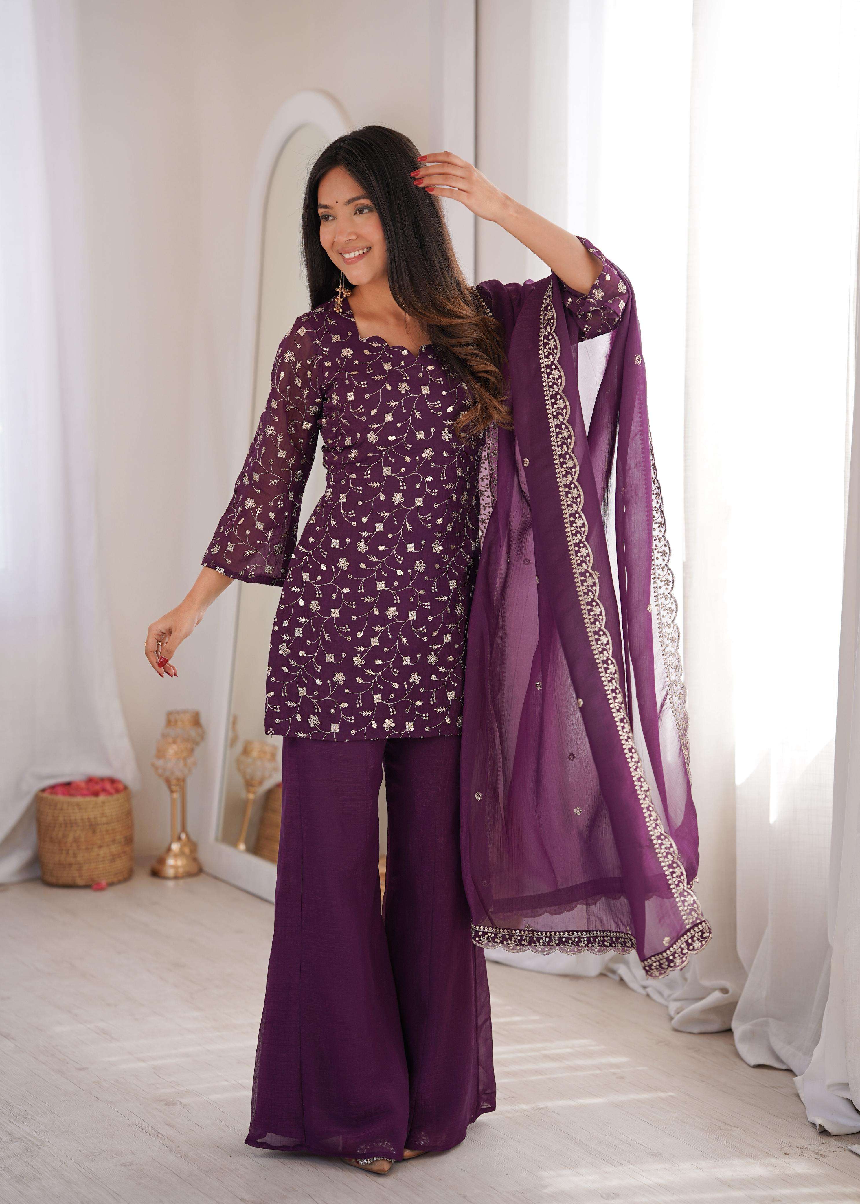 *PRESENTING NEW CRUNCHY SILK FABRIC WITH EMBROIDERY SEQUENCE AND JARI WORK,TOP WITH DUPPTA SET,BELL BOTTOM PENT READY TO WEAR*