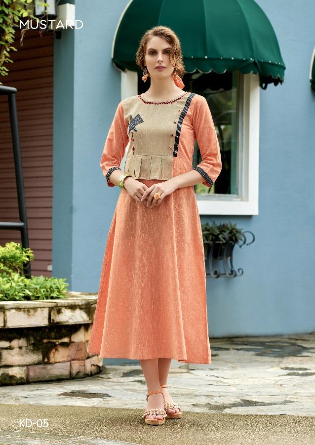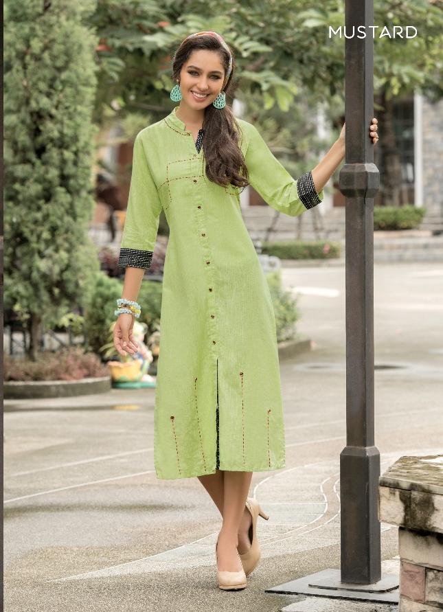 Khadi Handwork By Mustard Linen Reyon Kurtis Wholesale Supplier And Manufacturer Surat