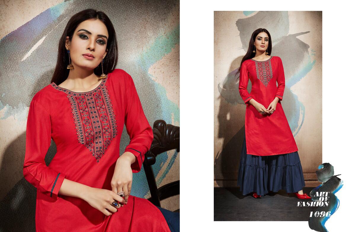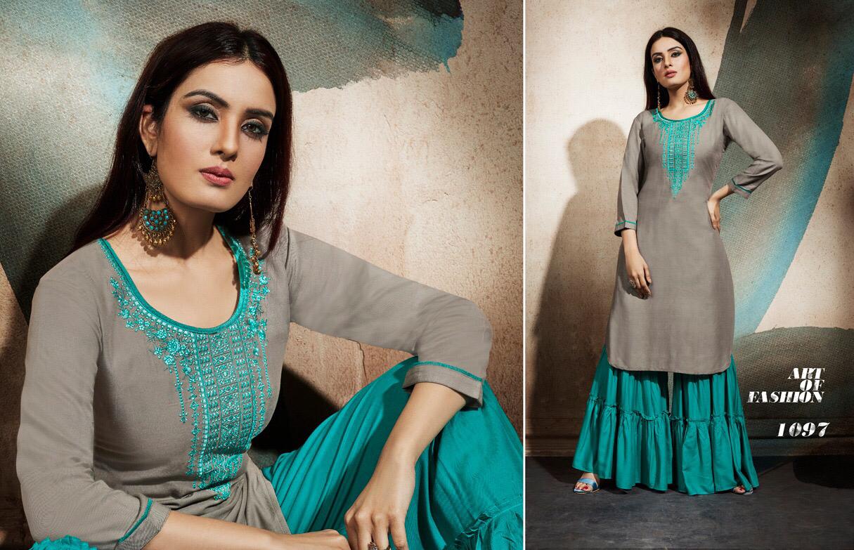 Buy Online Khanak By Kajree 1091 Series Fancy Designer Reyon Embroidered Kurti With Sarara Collection Wholesaler Surat 12 Pcs of Full Catalogue at Wholesale Price. Looking for Khanak By Kajree 1091 Series Fancy Designer Reyon Embroidered Kurti With Sarara Collection Wholesaler Surat Full Catalouge at Best Price? Buy Now Khanak By Kajree 1091 Series Fancy Designer Reyon Embroidered Kurti With Sarara Collection Wholesaler Surat at Wholesale Rate of Rs 7788 with Total 12 Pcs from authroized dealer and supplier of KESSI Brand. Cost of Each piece is just only Rs 649 which is very low and affordable price to resale the product in your retail store ,This is Surat based Wholesale Supplier & Dealer of KESSI Brand. Click on Brand name to Know more about KESSI Brand's products.Call or Whatsapp on 9898838984 for booking or enquiry