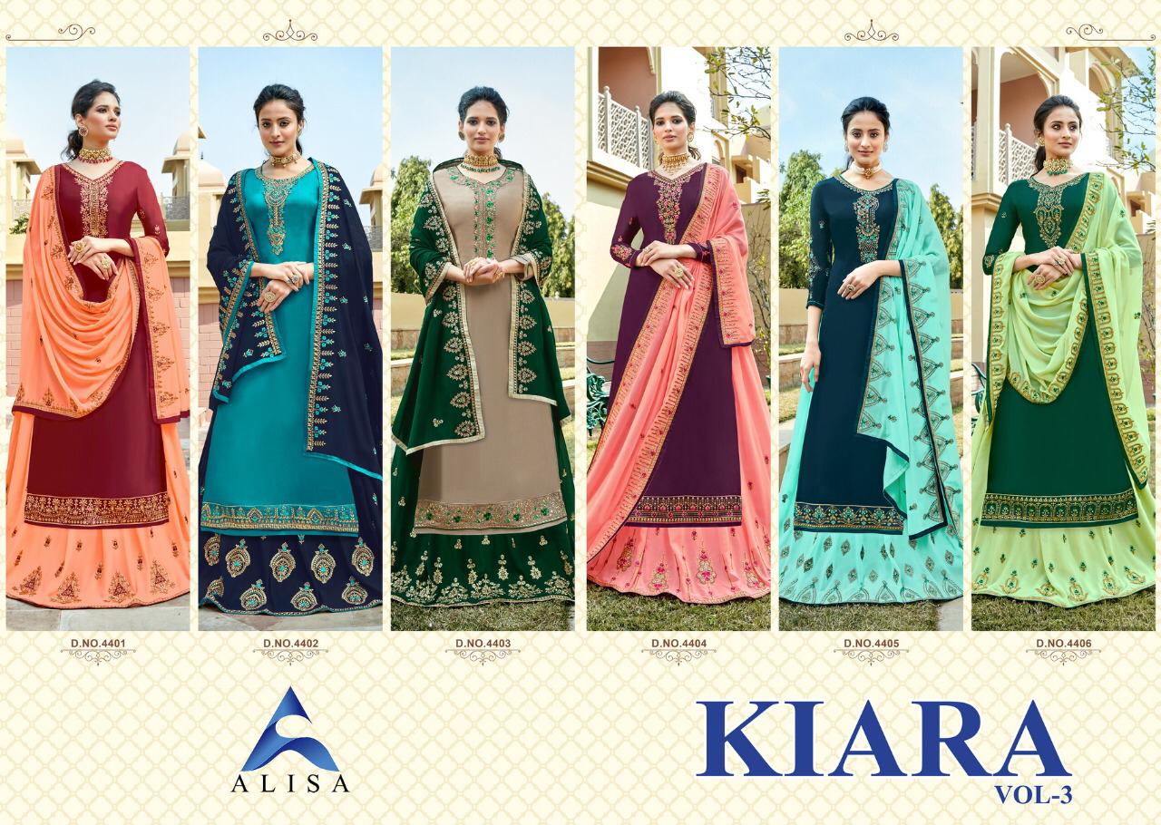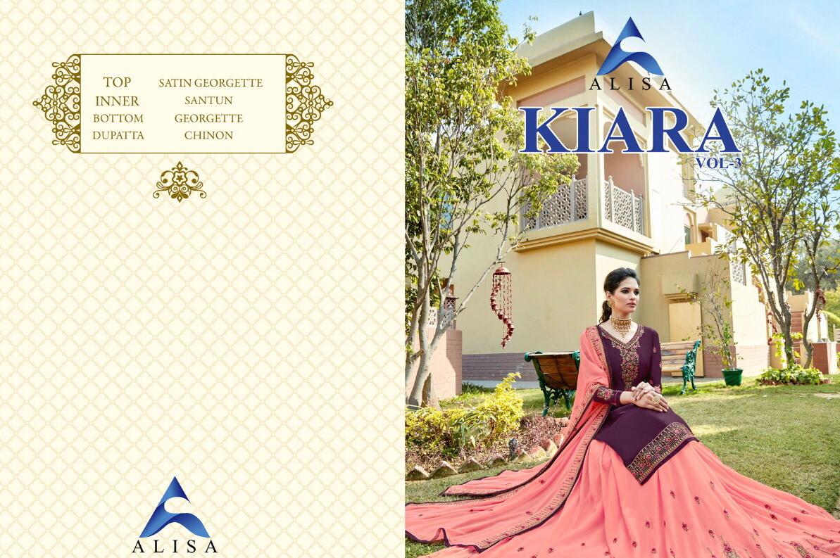 Buy Online Kiara Vol 3 By Alisa Designer Suits Wholesale Supplier India 6 Pcs of Full Catalogue at Wholesale Price. Looking for Kiara Vol 3 By Alisa Designer Suits Wholesale Supplier India Full Catalouge at Best Price? Buy Now Kiara Vol 3 By Alisa Designer Suits Wholesale Supplier India at Wholesale Rate of Rs 8370 with Total 6 Pcs from authroized dealer and supplier of Brand. Cost of Each piece is just only Rs 1395 which is very low and affordable price to resale the product in your retail store ,This is Surat based Wholesale Supplier & Dealer of Brand. Click on Brand name to Know more about Brand's products.Call or Whatsapp on 9898838984 for booking or enquiry