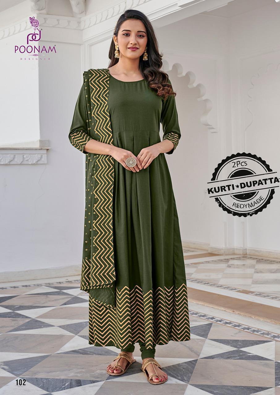 *Poonam Designer®?*??? (Smit creation) � *KIASA*� Gown kurti?Pure Rayon foil print. Dupatta - Pure Rayon Foil print. Size ?? S,M,L,XL,XXl,3xl,4xl,5xl. Dispach - 11/03/21 ? 575/- per pcs Set to set GST 5 Percent Extra. |