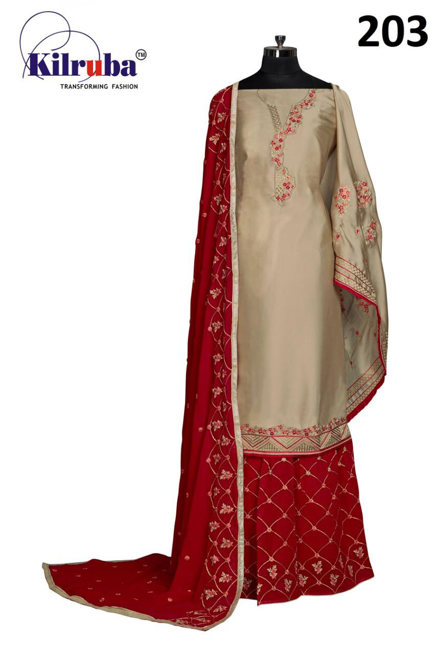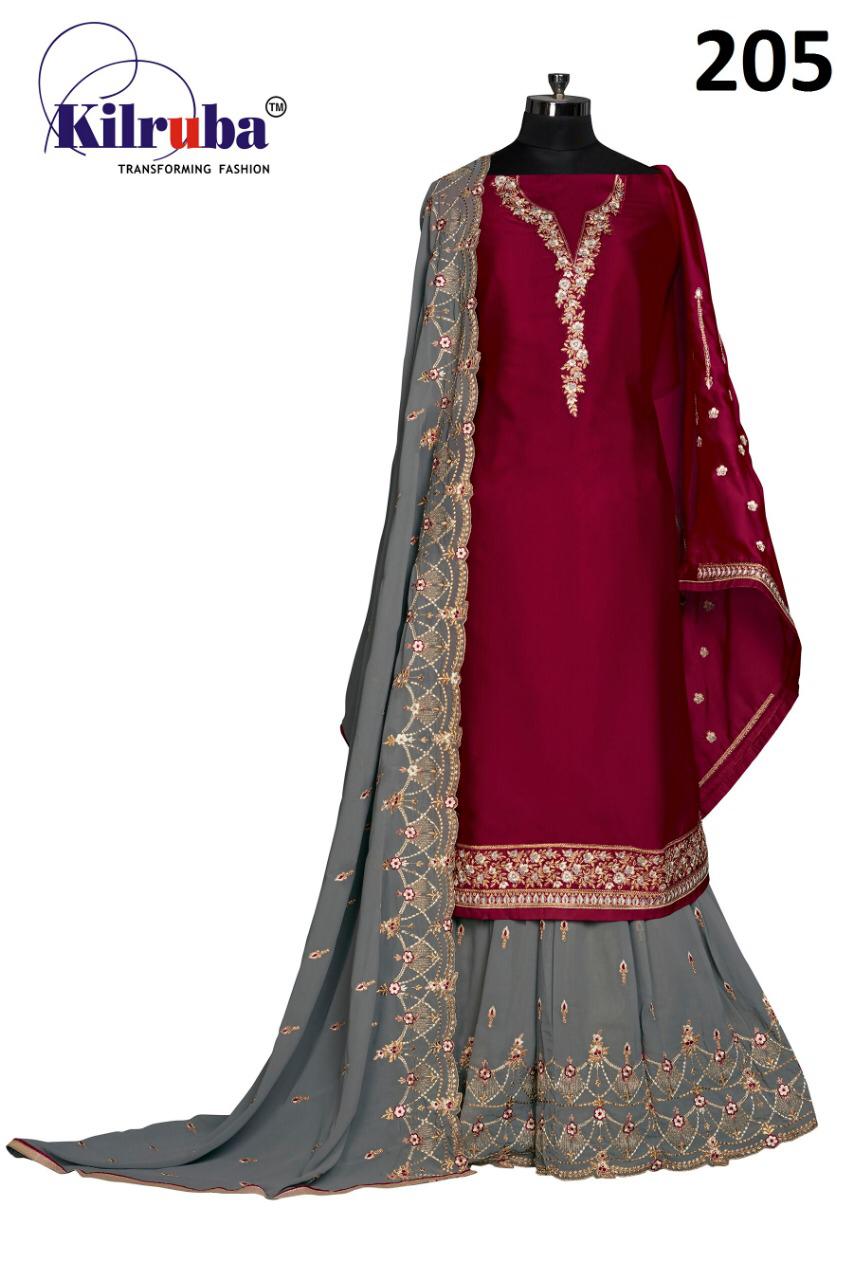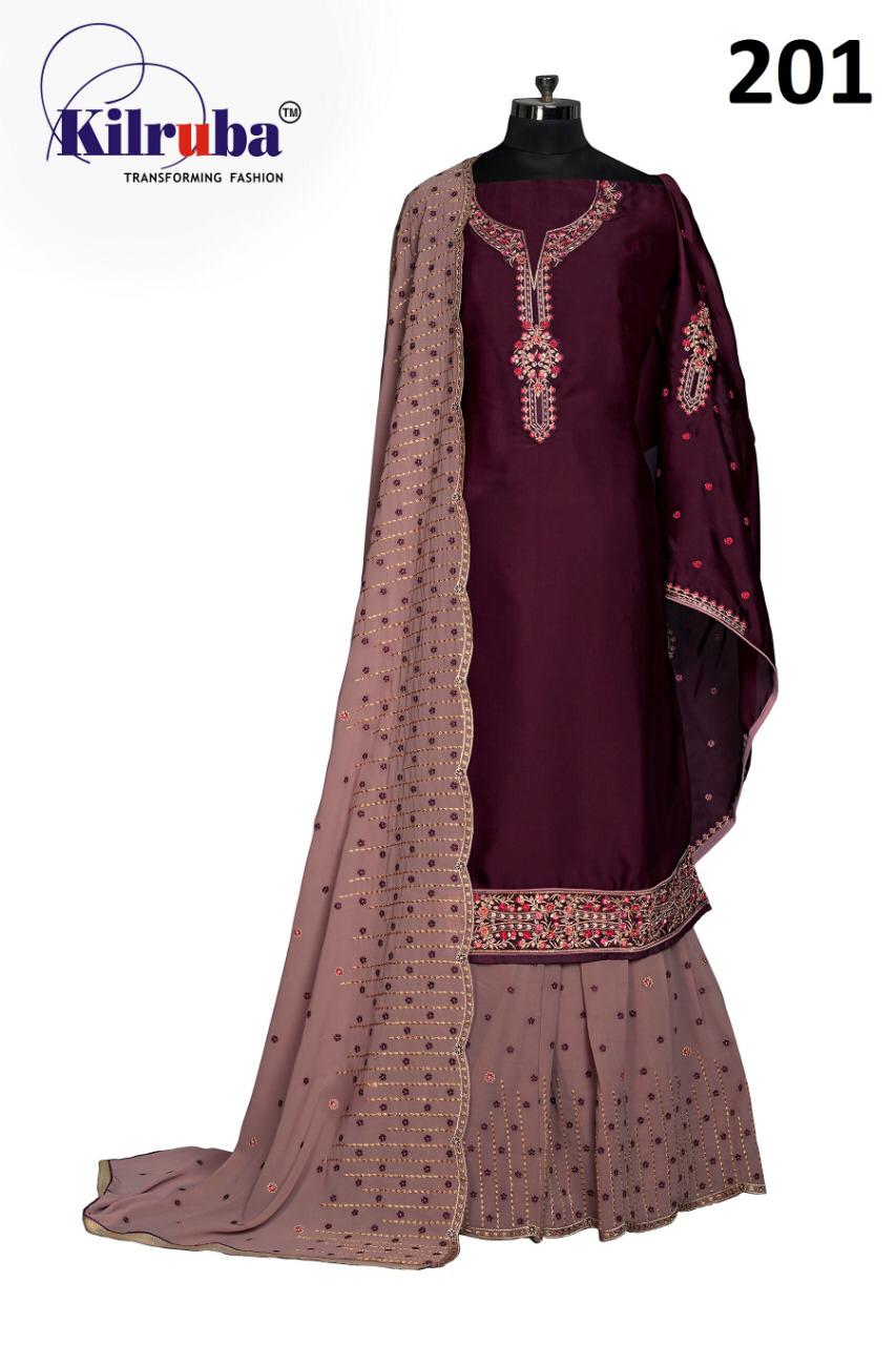 Kilruba 201 Series Fancy Satin Georgette Party Wear Sarara Suit Collection Wholesaler Surat
