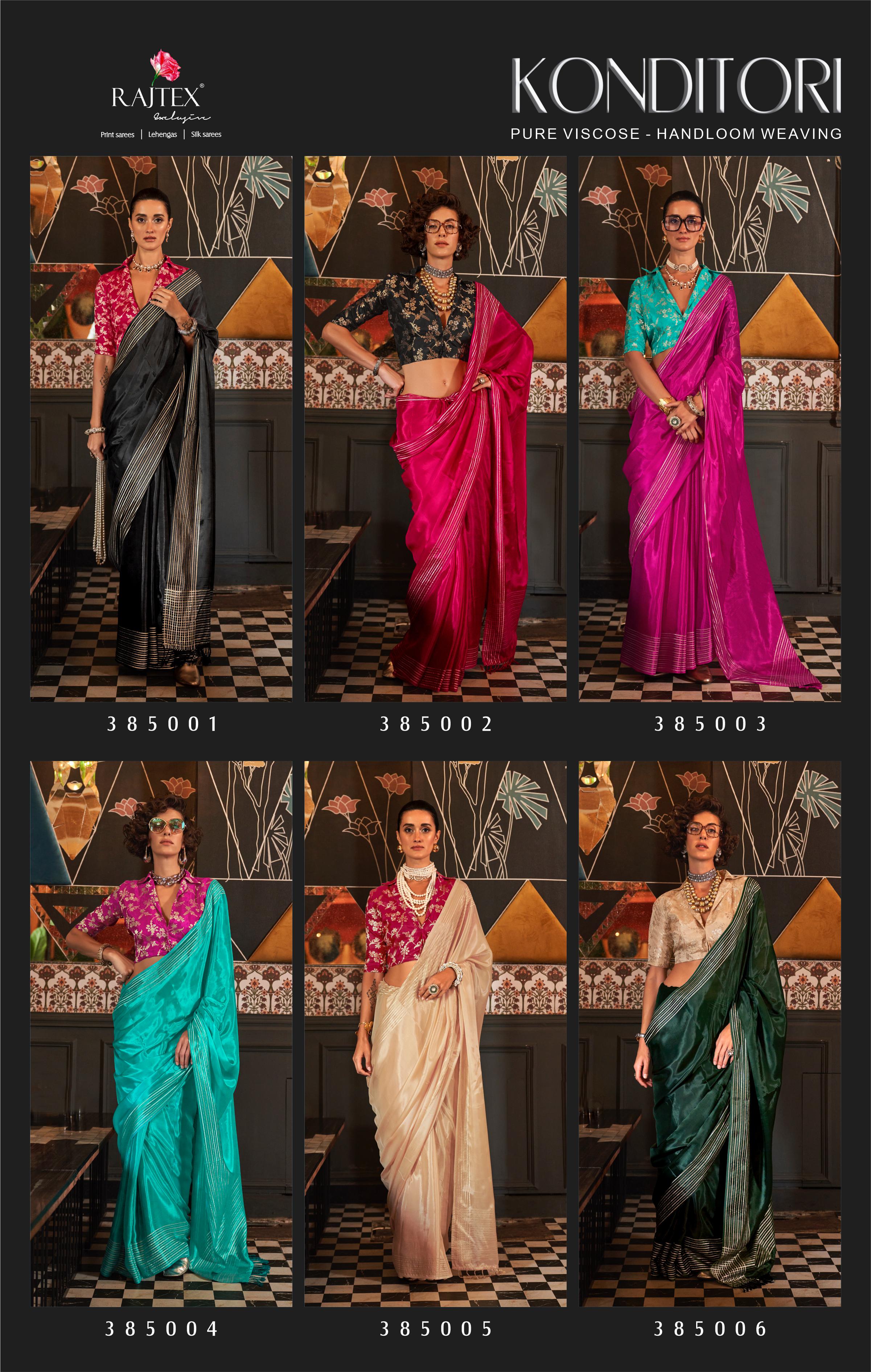 Konditori Series 385001 To 385006 By Rajtex Pure Viscose Sarees Collection Surat