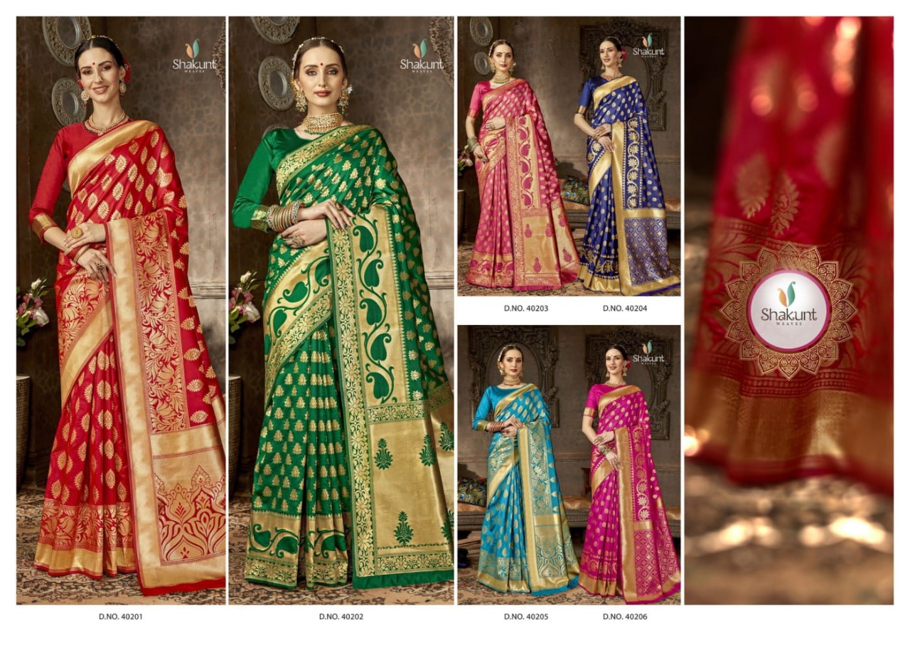 Buy Online Koshika By Shakunt Series 40201 To 40206 Silk Designer Occasion Wear Sarees Wholesale Supplier India 6 Pcs of Full Catalogue at Wholesale Price. Looking for Koshika By Shakunt Series 40201 To 40206 Silk Designer Occasion Wear Sarees Wholesale Supplier India Full Catalouge at Best Price? Buy Now Koshika By Shakunt Series 40201 To 40206 Silk Designer Occasion Wear Sarees Wholesale Supplier India at Wholesale Rate of Rs 4386 with Total 6 Pcs from authroized dealer and supplier of BRAND'S Brand. Cost of Each piece is just only Rs 731 which is very low and affordable price to resale the product in your retail store ,This is Surat based Wholesale Supplier & Dealer of BRAND'S Brand. Click on Brand name to Know more about BRAND'S Brand's products.Call or Whatsapp on 9898838984 for booking or enquiry