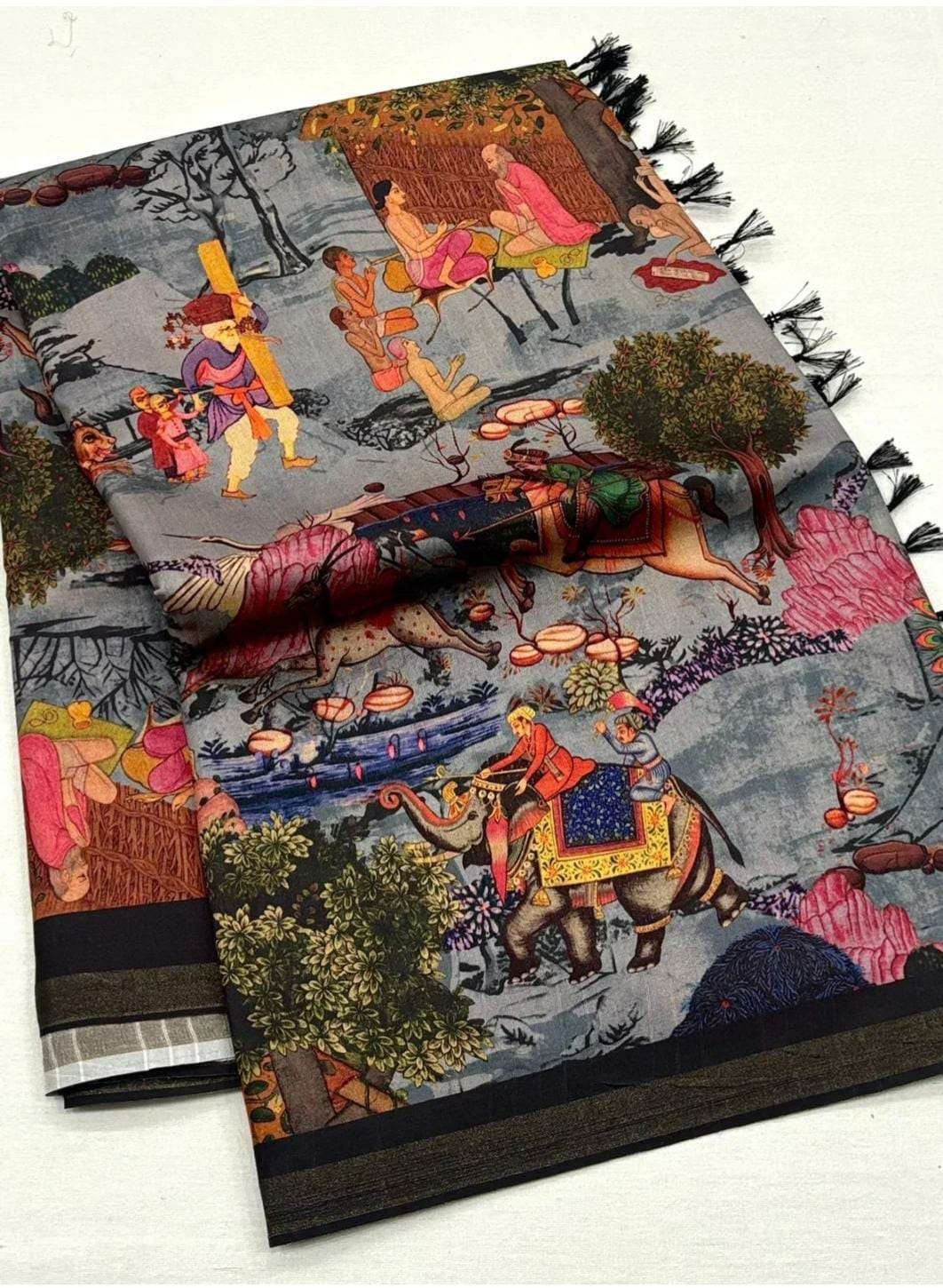 Kosovo Prints Kalamkari – Staple Silk Position Print Saree