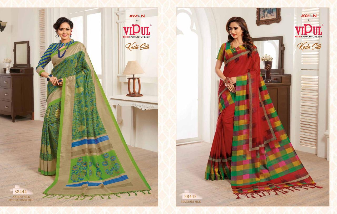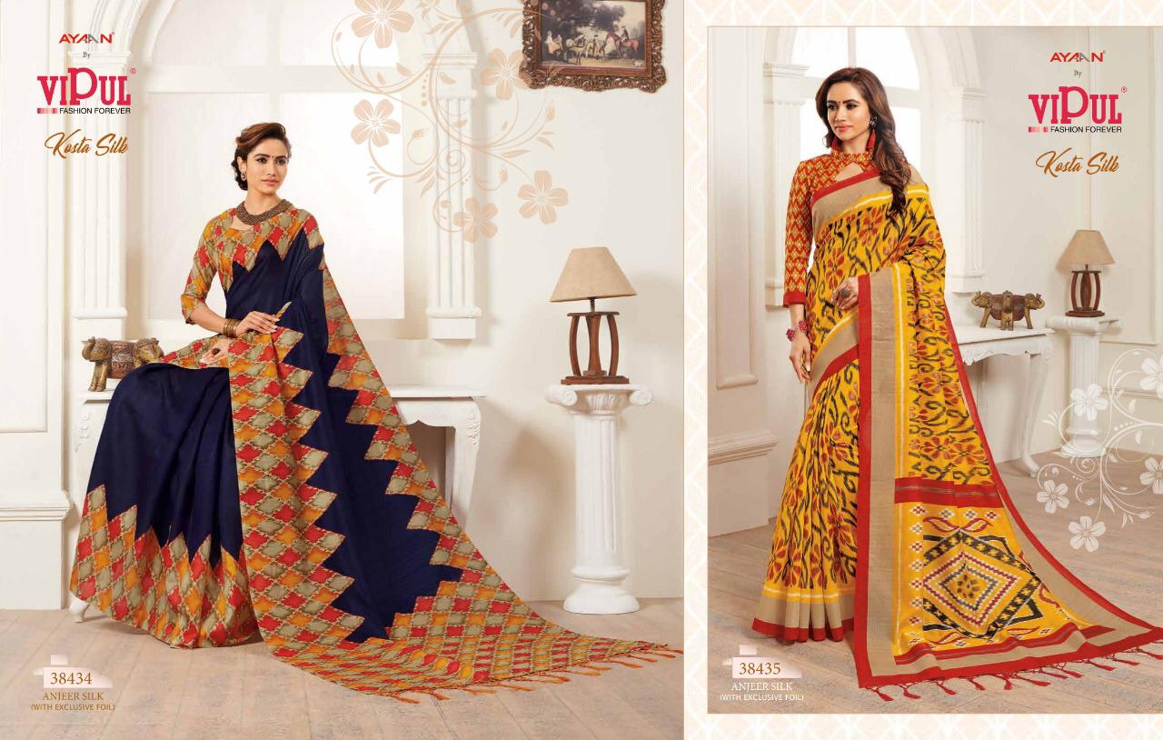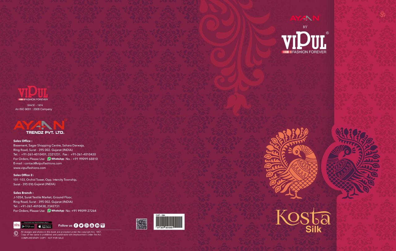 Buy Online Kosta Silk By Vipul Cat 384 Silk Designer Party Wear Sarees Wholesale Supplier Gujarat 27 Pcs of Full Catalogue at Wholesale Price. Looking for Kosta Silk By Vipul Cat 384 Silk Designer Party Wear Sarees Wholesale Supplier Gujarat Full Catalouge at Best Price? Buy Now Kosta Silk By Vipul Cat 384 Silk Designer Party Wear Sarees Wholesale Supplier Gujarat at Wholesale Rate of Rs 16389 with Total 27 Pcs from authroized dealer and supplier of VIPUL Brand. Cost of Each piece is just only Rs 607 which is very low and affordable price to resale the product in your retail store ,This is Surat based Wholesale Supplier & Dealer of VIPUL Brand. Click on Brand name to Know more about VIPUL Brand's products.Call or Whatsapp on 9898838984 for booking or enquiry