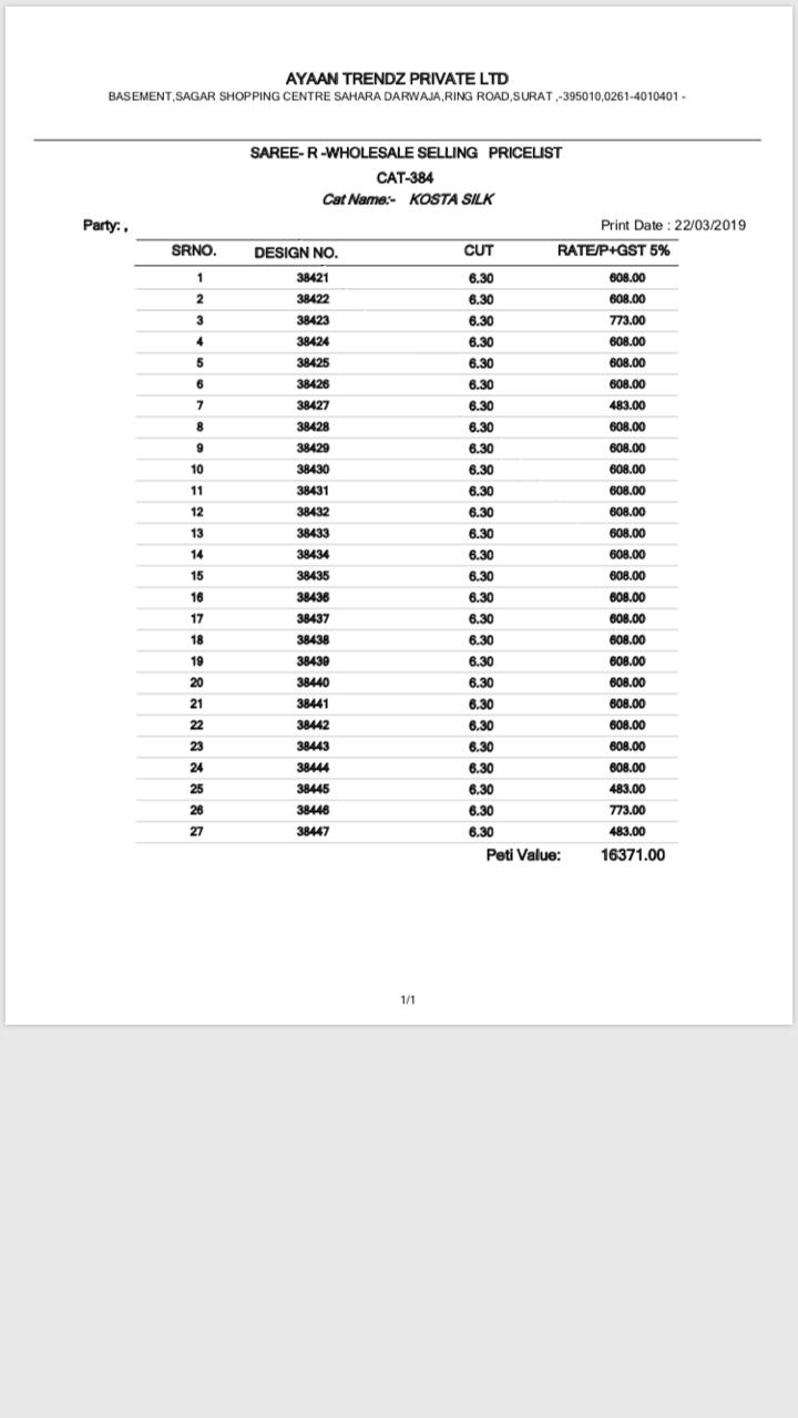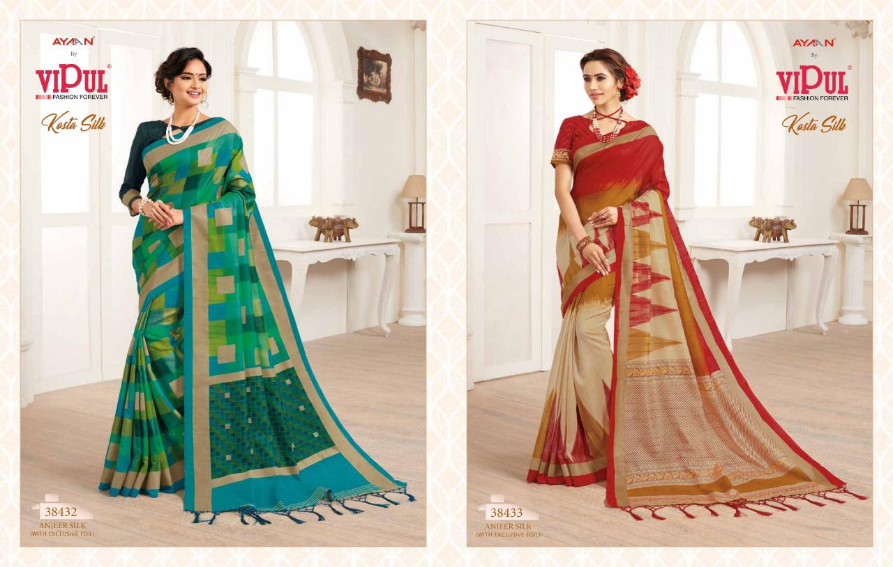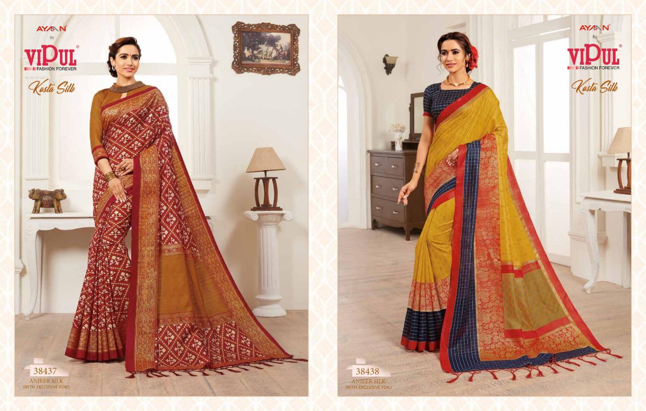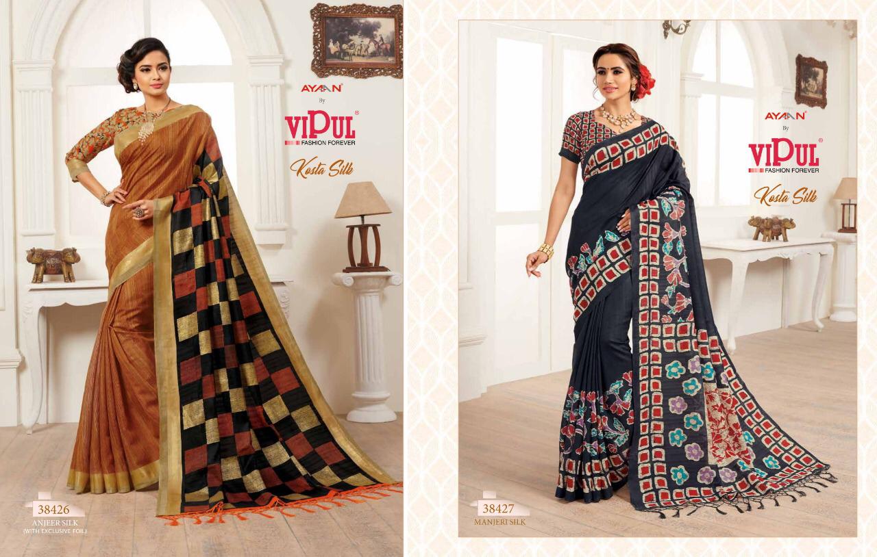 Buy Online Kosta Silk By Vipul Cat 384 Silk Designer Party Wear Sarees Wholesale Supplier Gujarat 27 Pcs of Full Catalogue at Wholesale Price. Looking for Kosta Silk By Vipul Cat 384 Silk Designer Party Wear Sarees Wholesale Supplier Gujarat Full Catalouge at Best Price? Buy Now Kosta Silk By Vipul Cat 384 Silk Designer Party Wear Sarees Wholesale Supplier Gujarat at Wholesale Rate of Rs 16389 with Total 27 Pcs from authroized dealer and supplier of VIPUL Brand. Cost of Each piece is just only Rs 607 which is very low and affordable price to resale the product in your retail store ,This is Surat based Wholesale Supplier & Dealer of VIPUL Brand. Click on Brand name to Know more about VIPUL Brand's products.Call or Whatsapp on 9898838984 for booking or enquiry