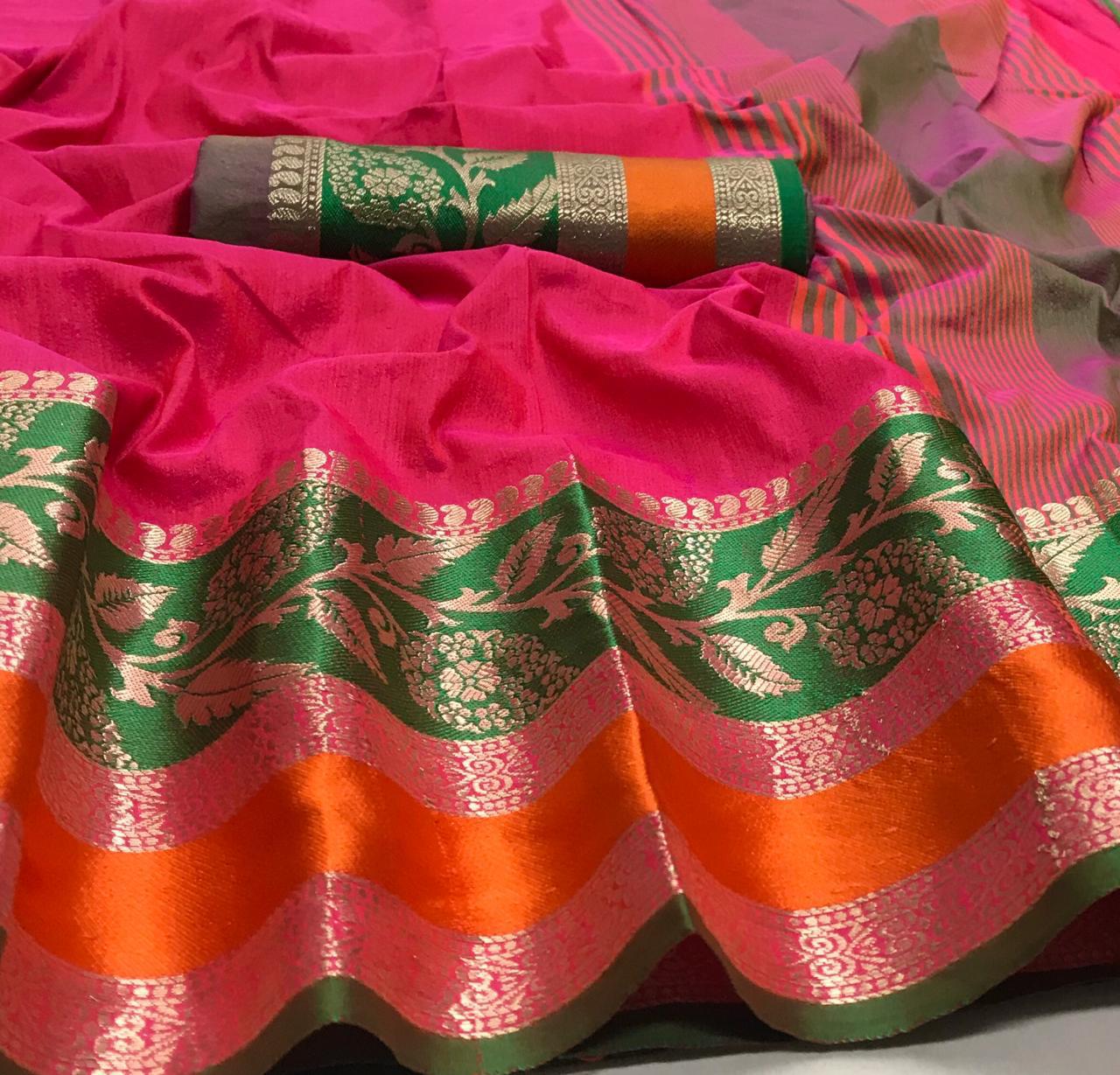 Brand - Raj Tex . Catlog name - KUNDAN SILK -2 Series -106001 to 106008 . Rate -735 per pcs . Single Extra 100 Fabric- Silk . Set & Loose. GST 5 Percent Extra . Delivery 3-4 days . |