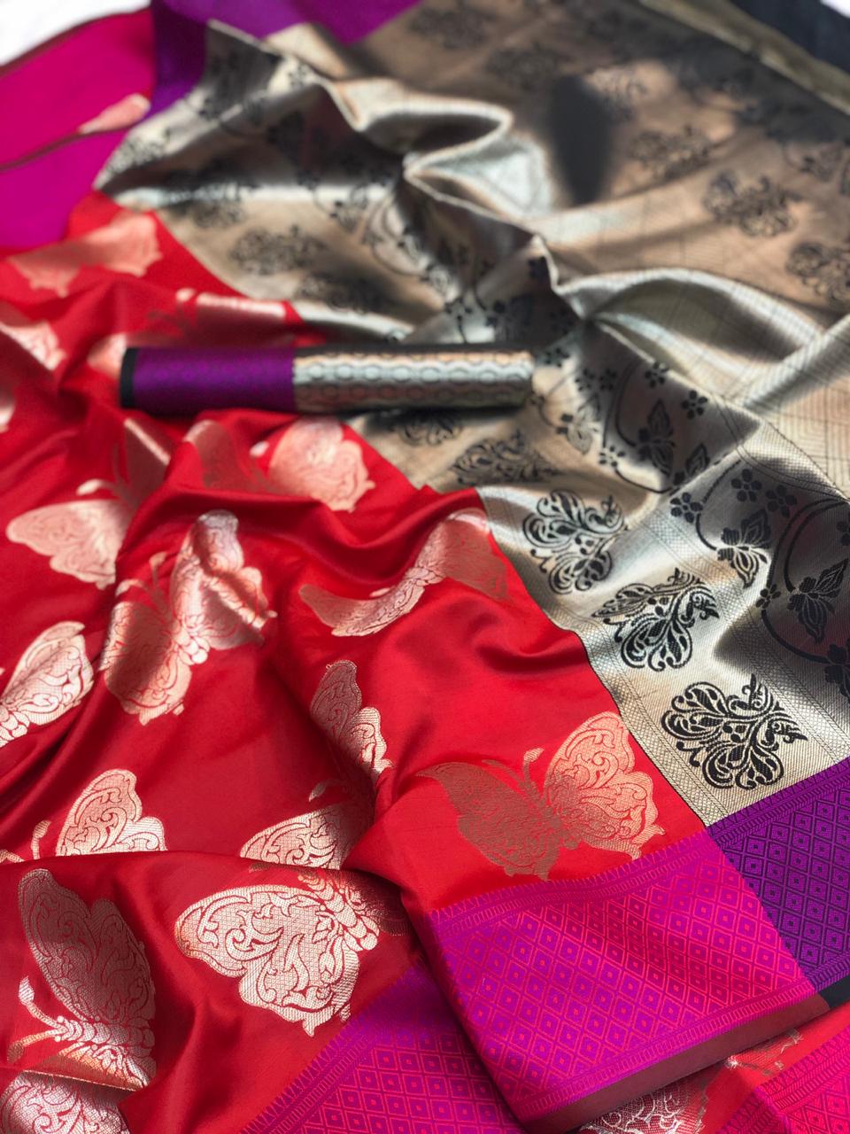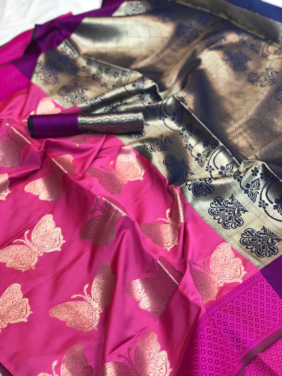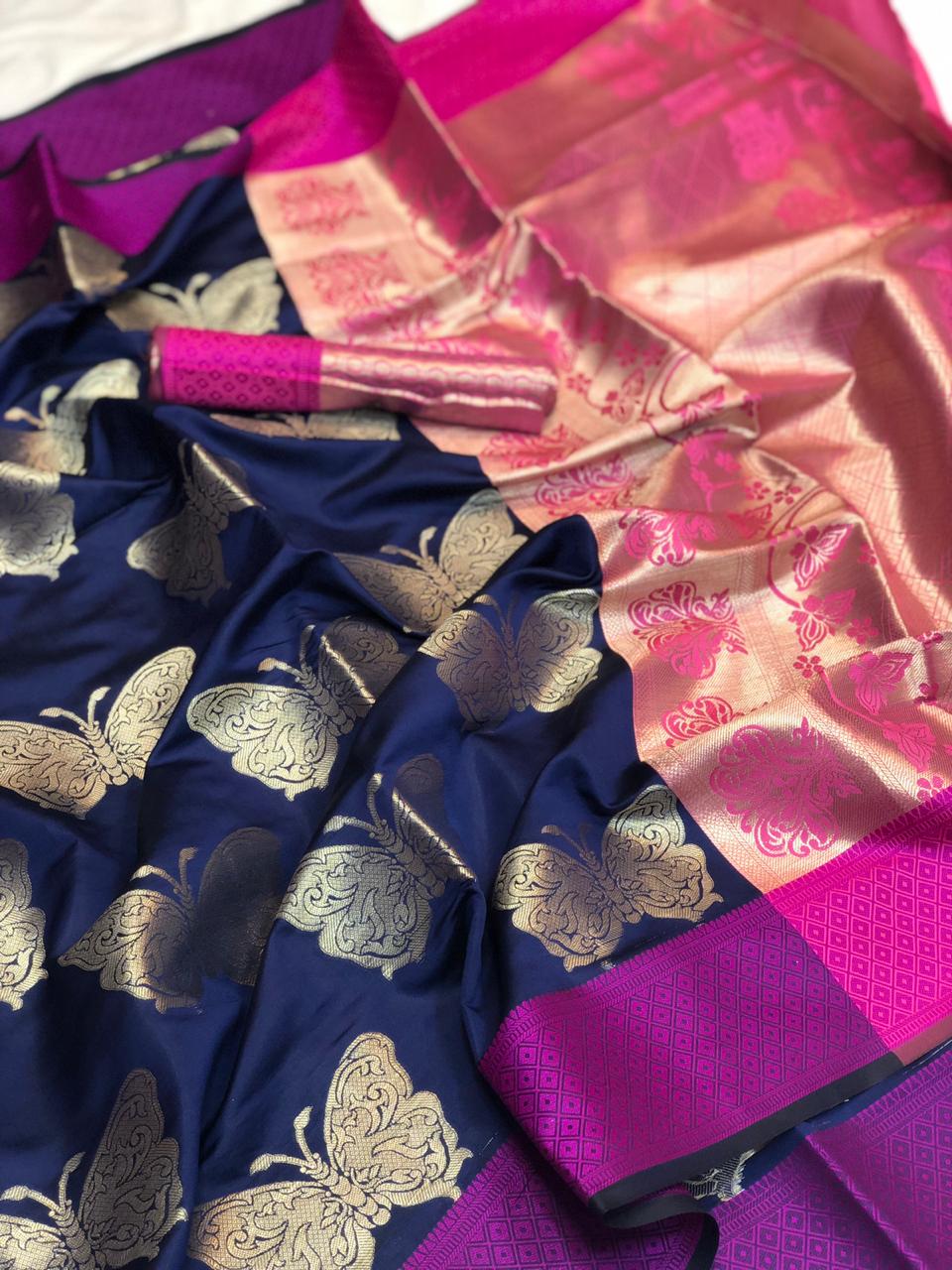 ??? Launching new collections *"kusum silk"* ???Saree Material : banarasi silk with rich *ANMOL* zari weaving . Fabric is soft and drapes to shape ???blouse: pallu colour blouse as same colour of pallu in pic ???Price :1250 Single price 1350 Gst ship extra Singles and multiples available Note: color may vary slightly due to photography, no exchange or return for color variation, unpacking video must for any sort of complaints |