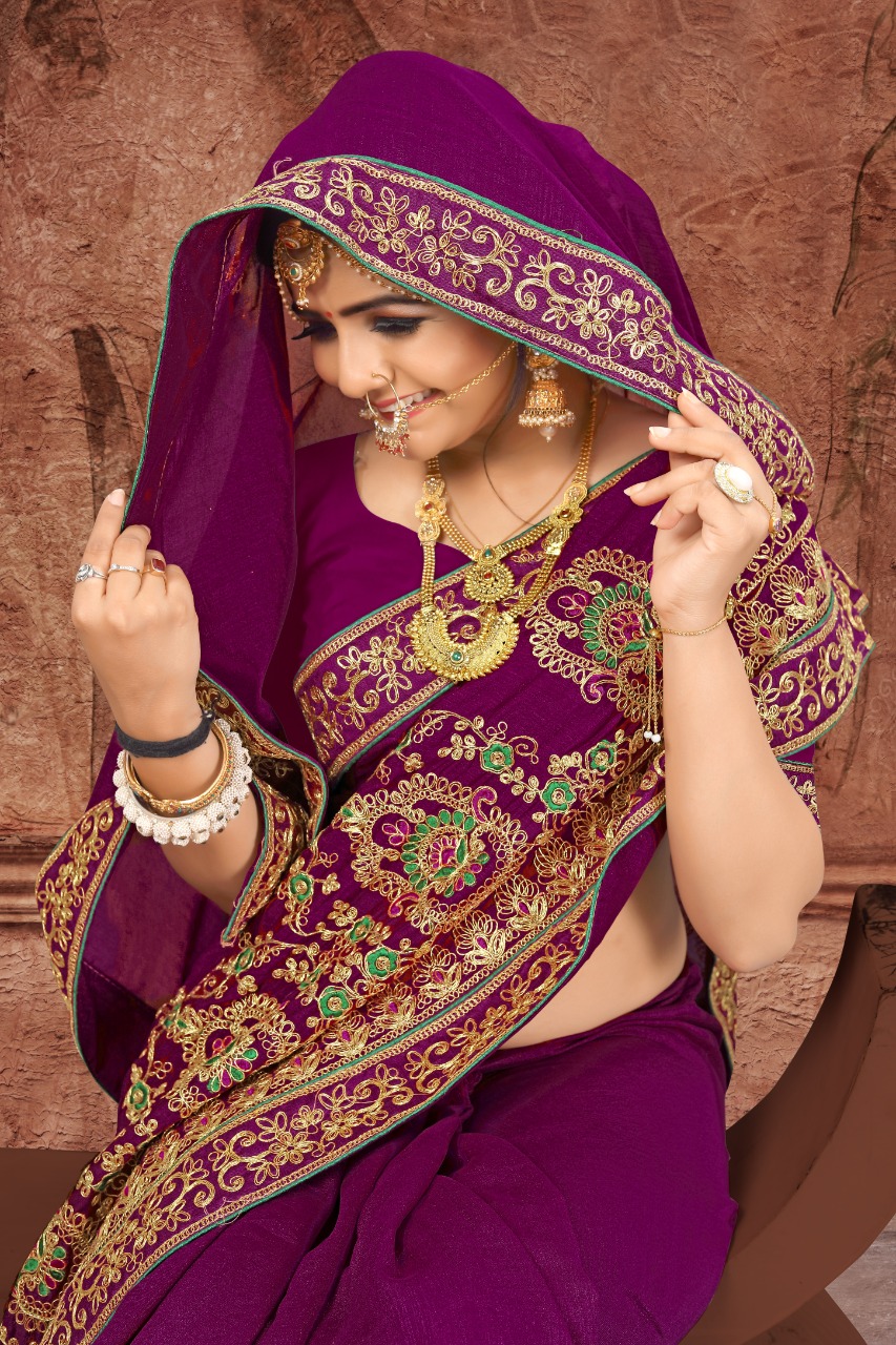 Lady Presents Vichitra silk saree with embroiderybwork Ready to ship Single also available Rate 1195 100+ singles GST SHIPPING extra |