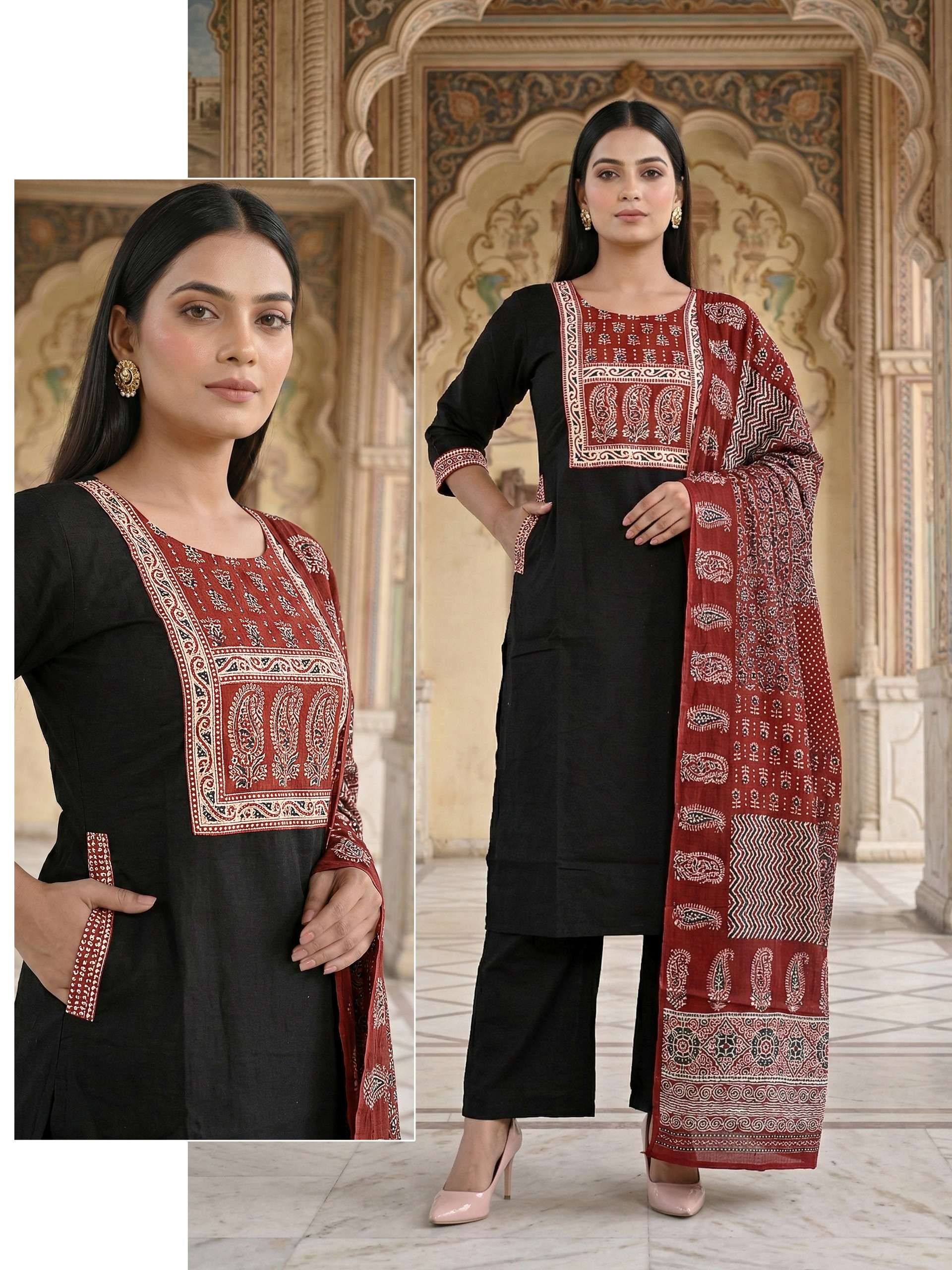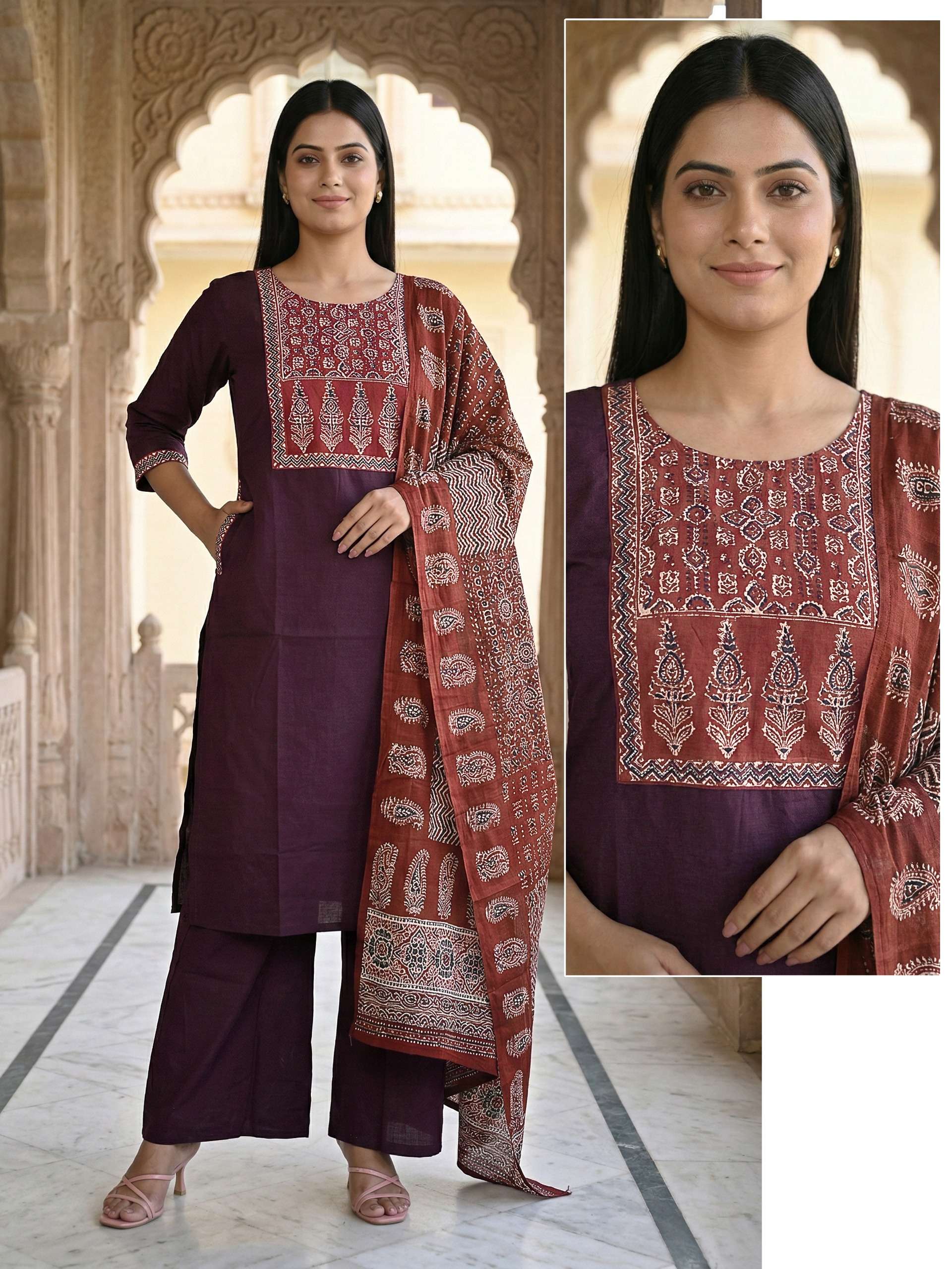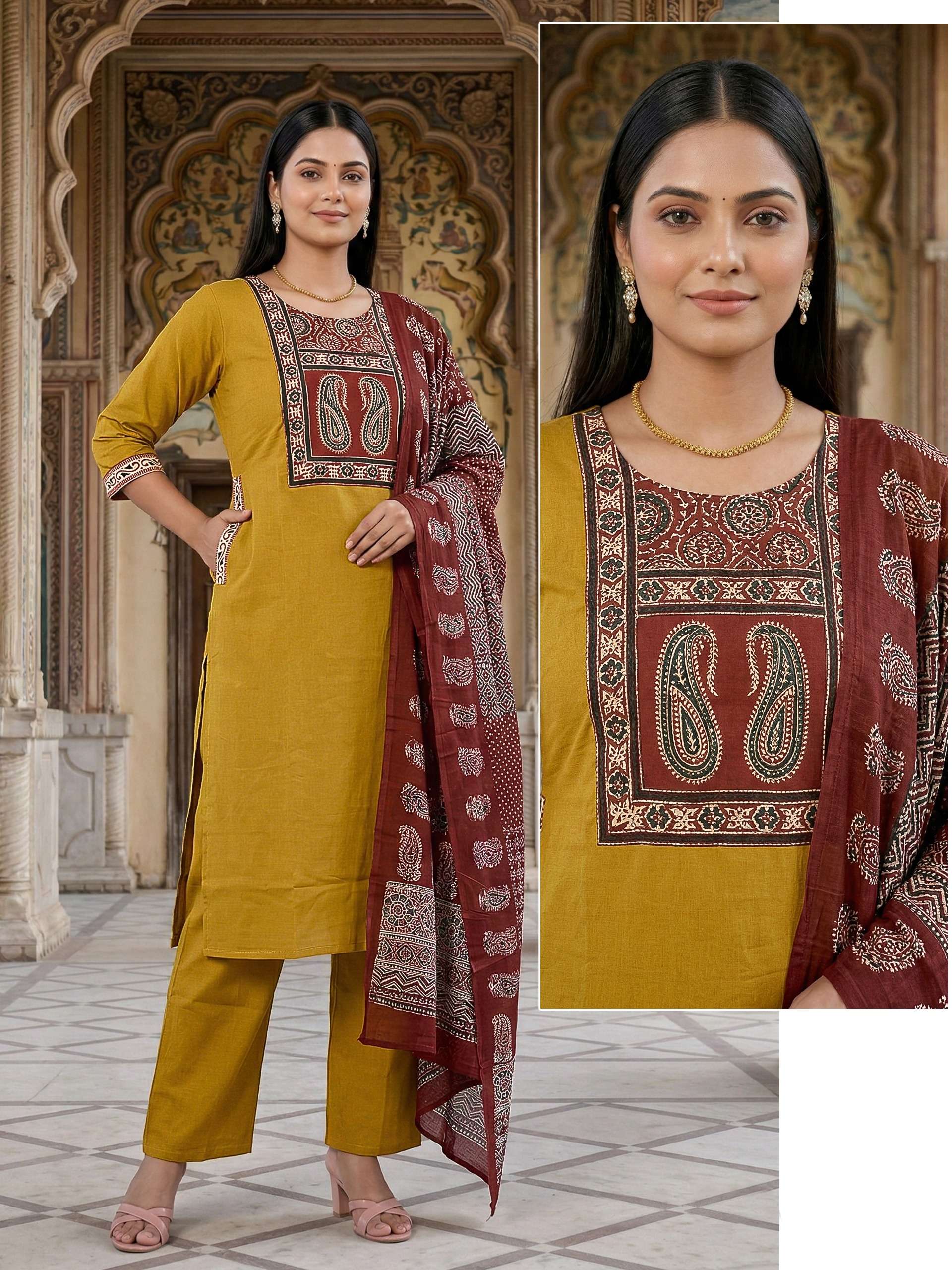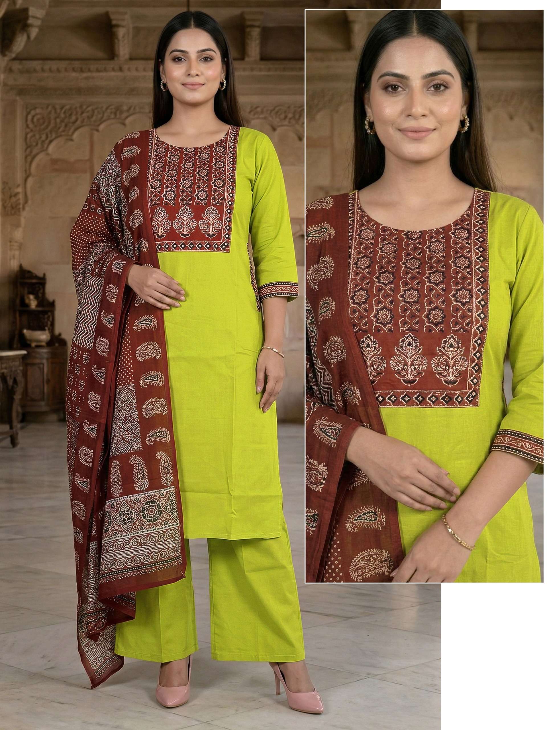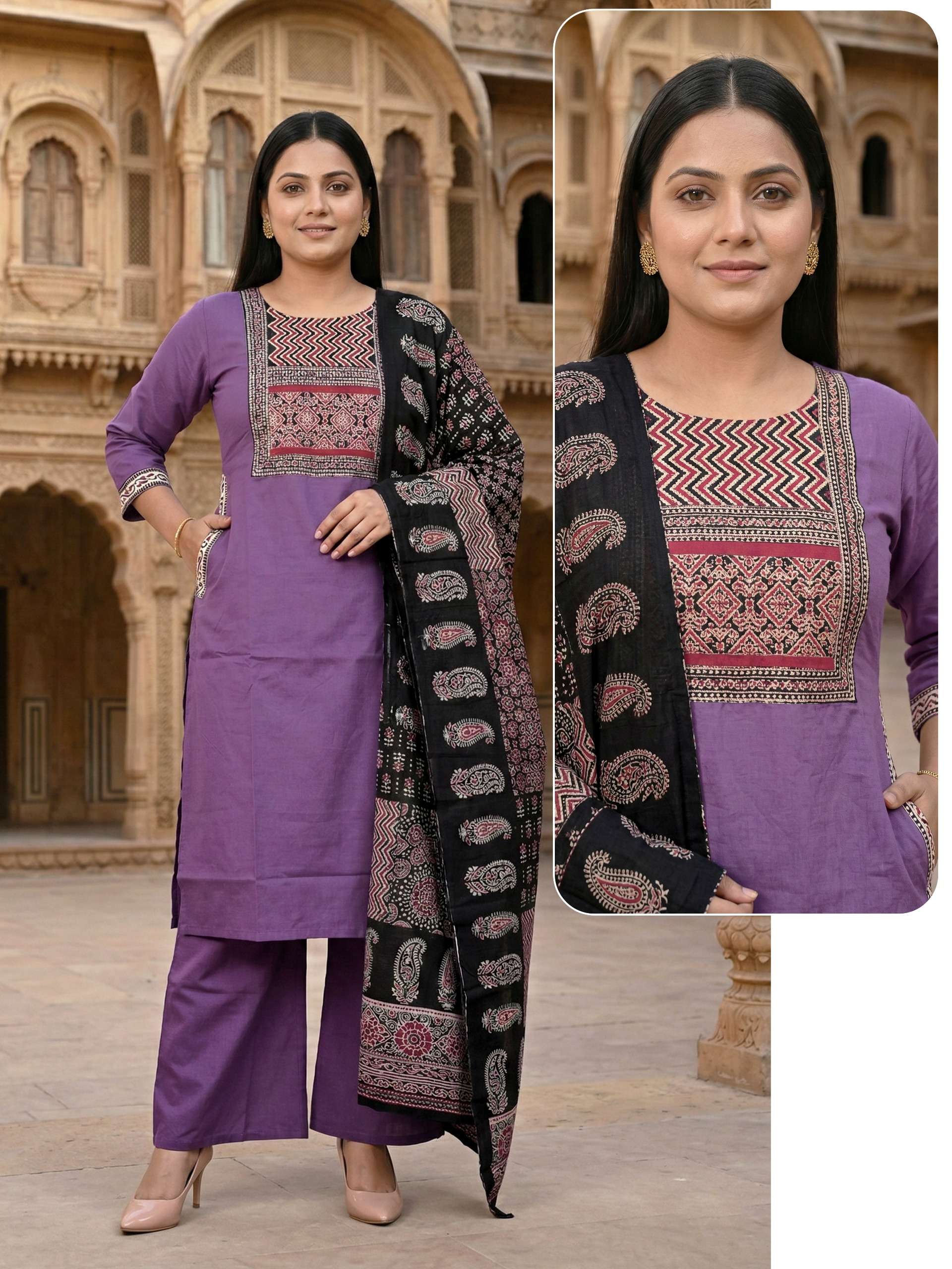 Fabric Detail⬇ *👗* : DHABU COTTON Pent. Dhabu cotton Dupata mall printed *Size* *- M L XL XXL 3XL 3pis combo packing 💃Designs: 13