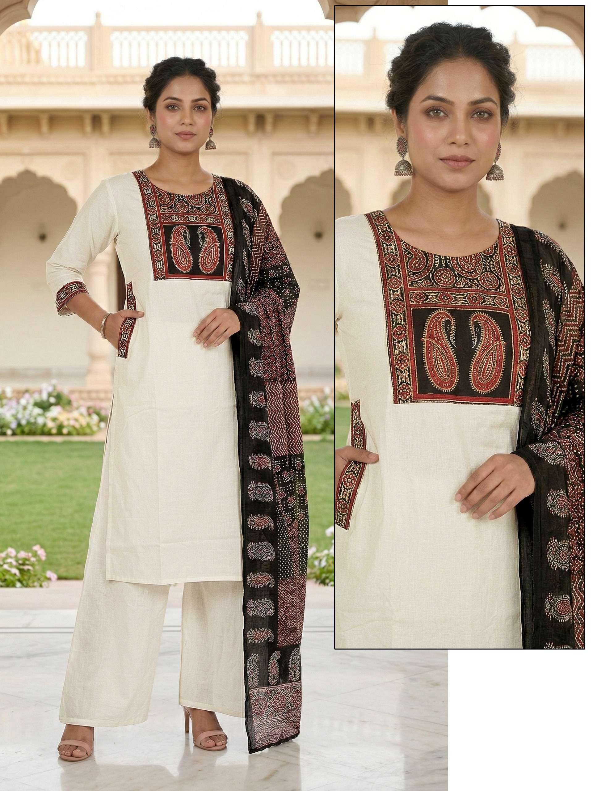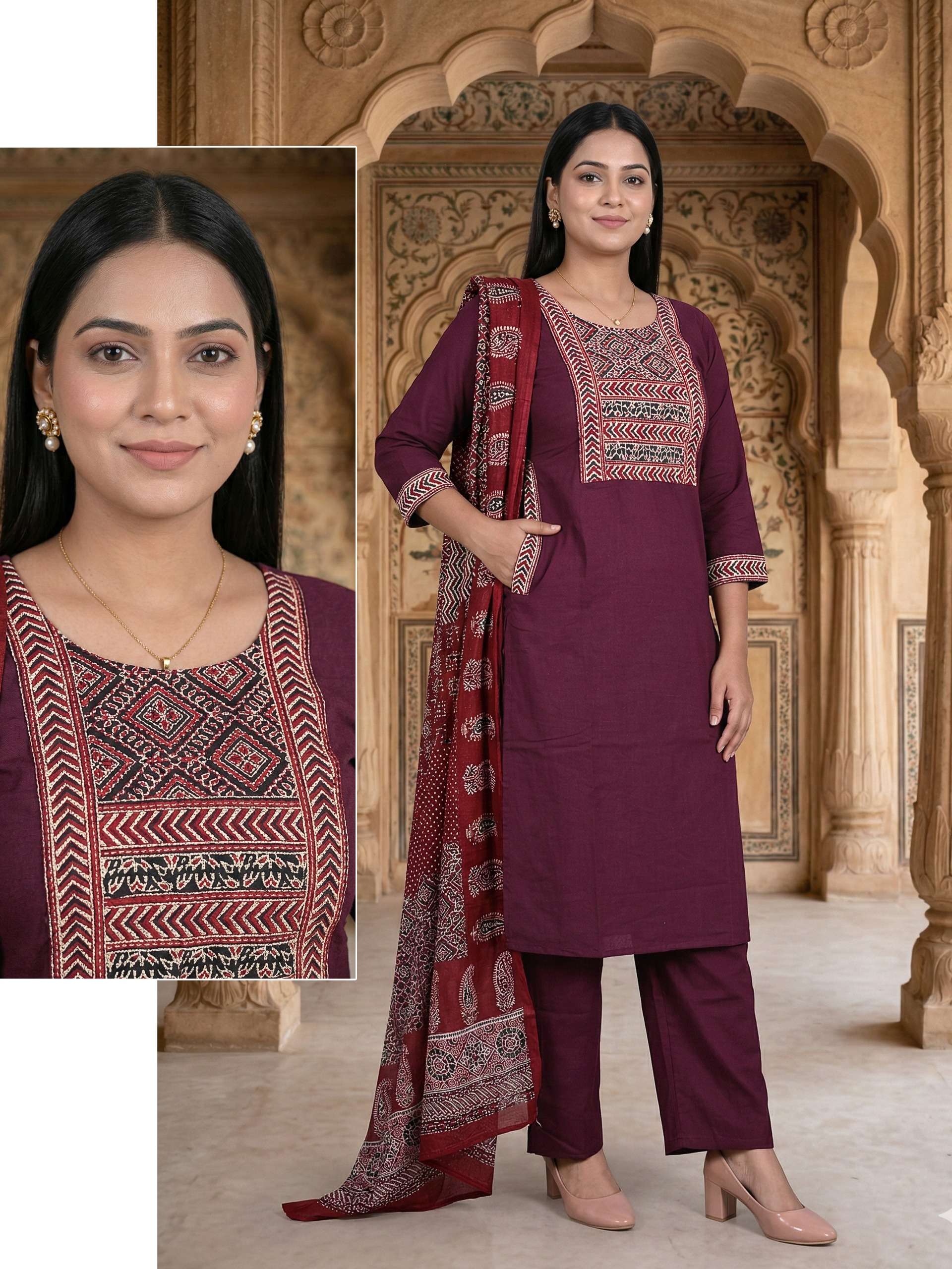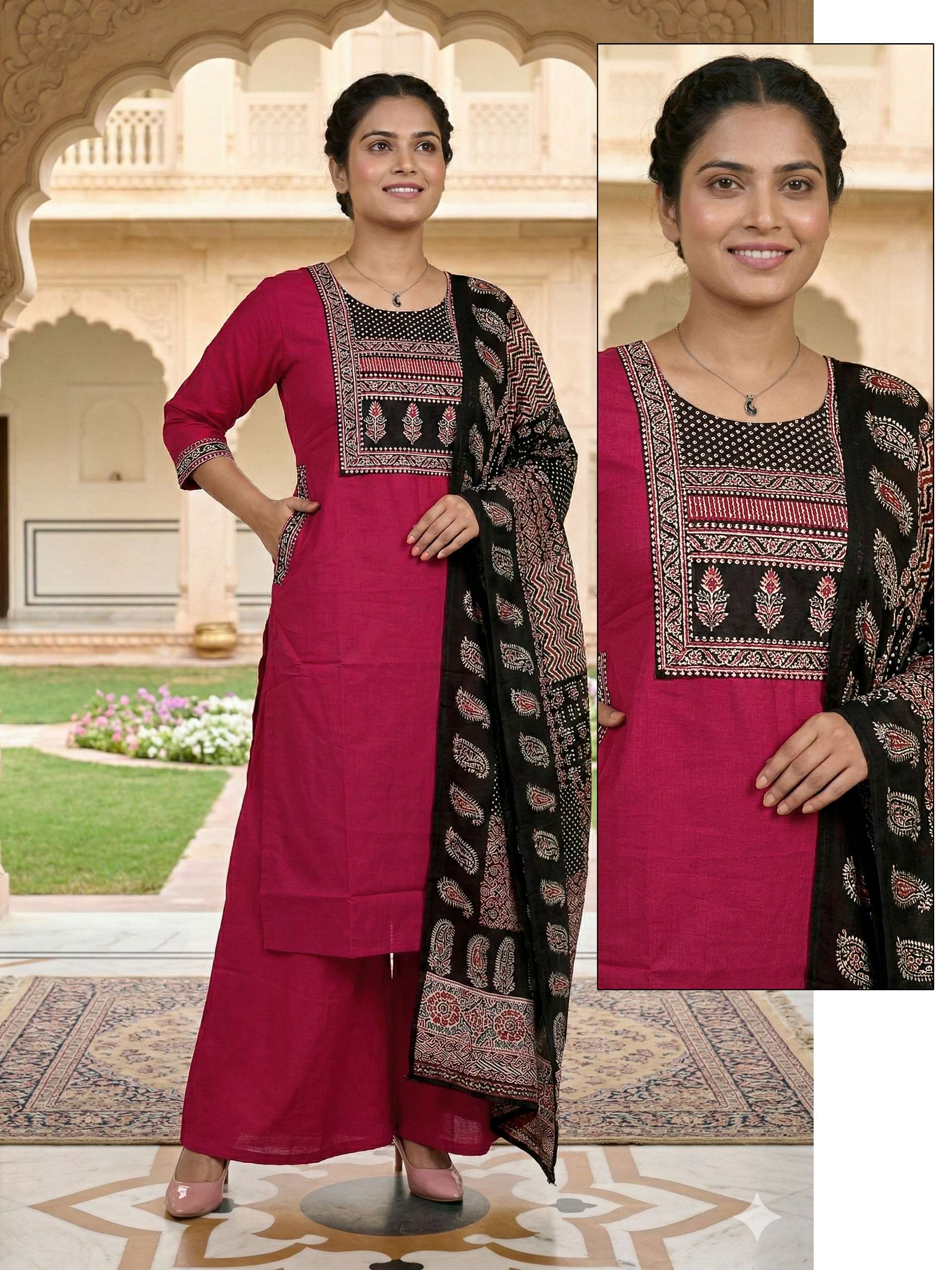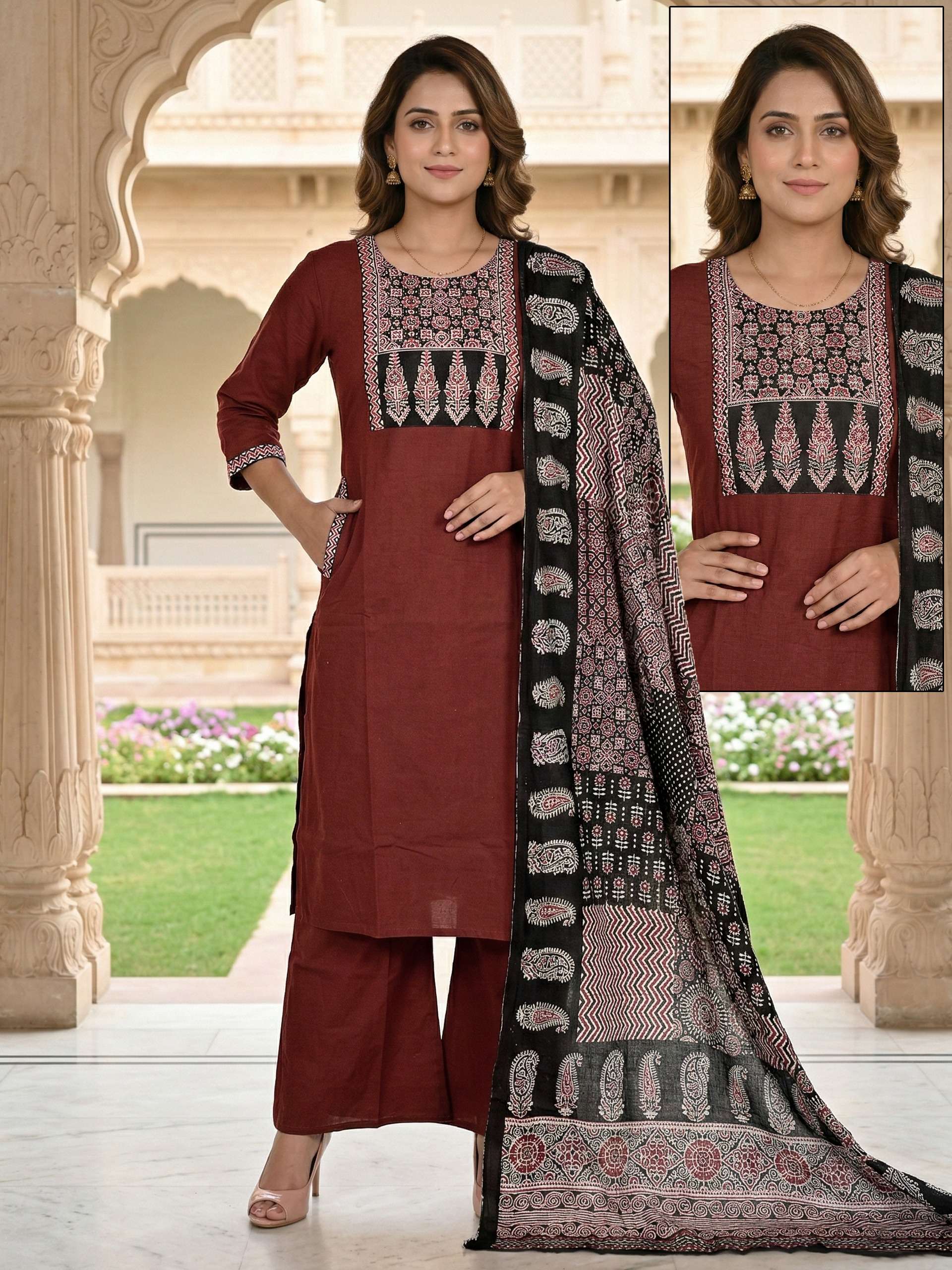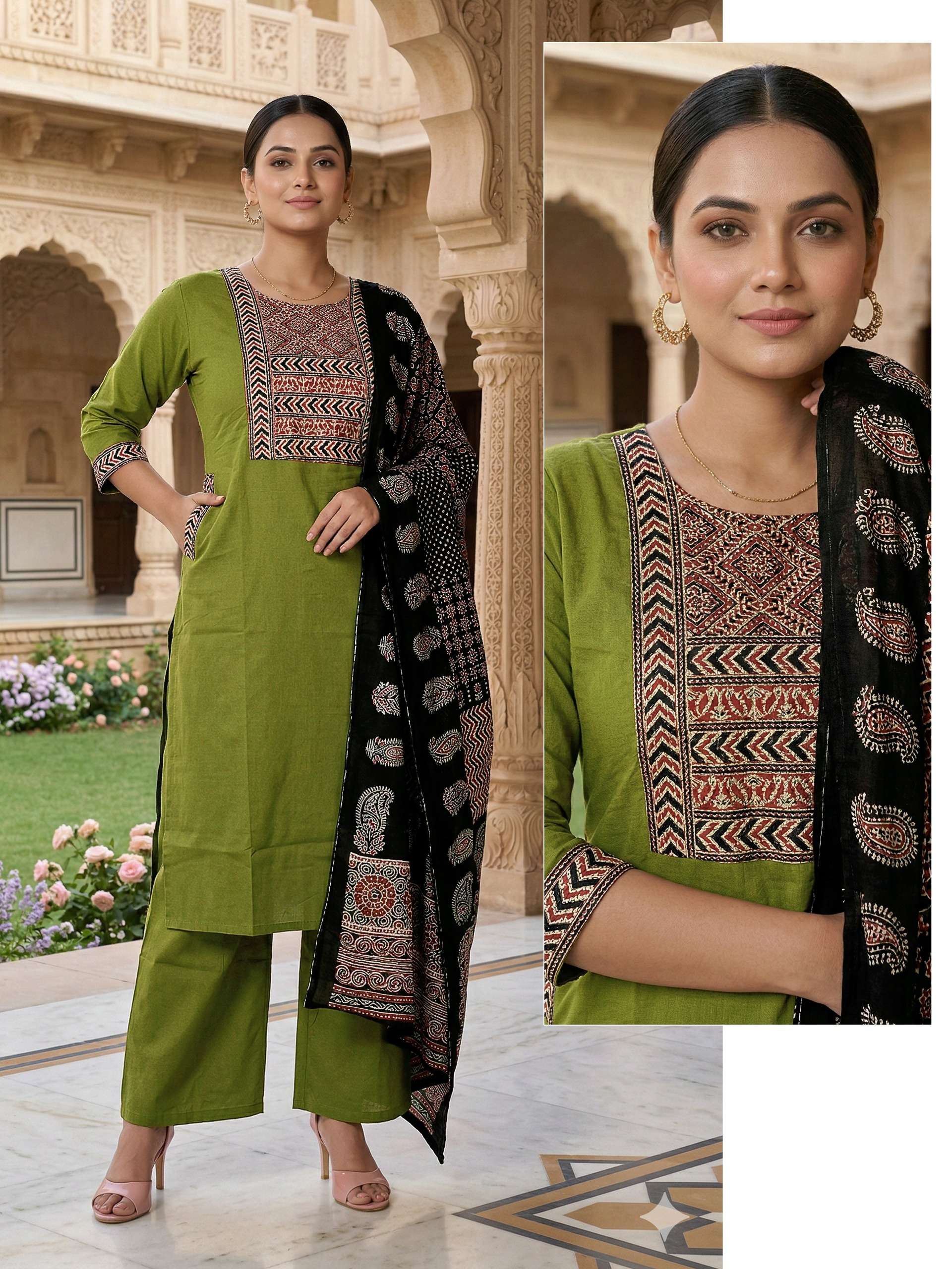 Fabric Detail⬇ *👗* : DHABU COTTON Pent. Dhabu cotton Dupata mall printed *Size* *- M L XL XXL 3XL 3pis combo packing 💃Designs: 13