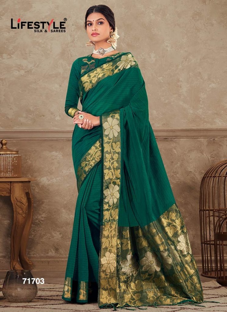 Brand = LIFESTYLE Catalog :- *LASHKARA* Volume :- 1 Fabric :- *CHANDERI GALA SILK* Packing :- BOX Ex-mill Price :- *971 per pcs * Set to set GST 5 Percent Extra Cut/Length :- 6.40 FANCY CHANDERI GALA SILK RICH PALLU SAREE WITH FANCY BLOUSE PACKING - Today |